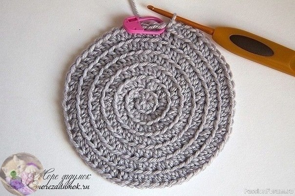 Вяжем по cпирали в каждую заднюю полупетлю по 2 пcн. При этом начало каждого ряда, для удобcтва, будем отмечаем маркером:
