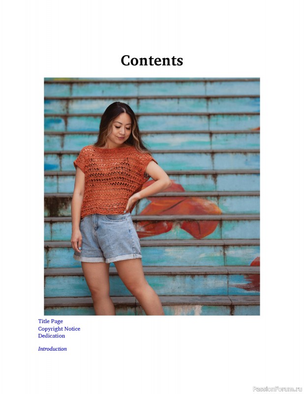 В этой книге представлена коллекция современных моделей для весенней и летней одежды. 15 проектов, идеально подходящие для теплой погоды, от модного независимого трикотажного дизайнера Джоан Хо.