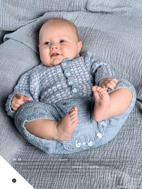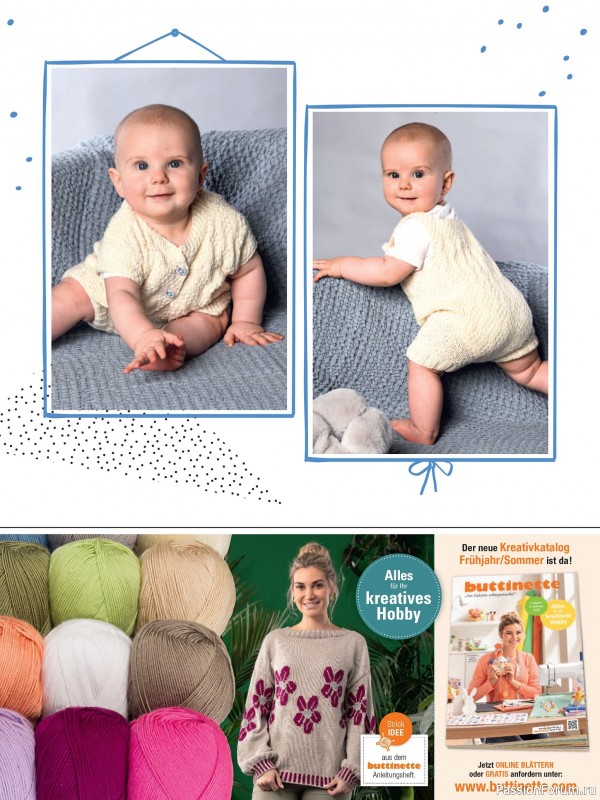 Популярный немецкий журнал по вязанию спицами и крючком. В выпуске этого журнала представлена новая коллекция детских изделий от рождения до 3 лет. Замечательные пинетки, тапочки, кофточки, джемпера, костюмы и боди. Все проекты сопровождаются инструкциями, качественными схемами и выкройками.