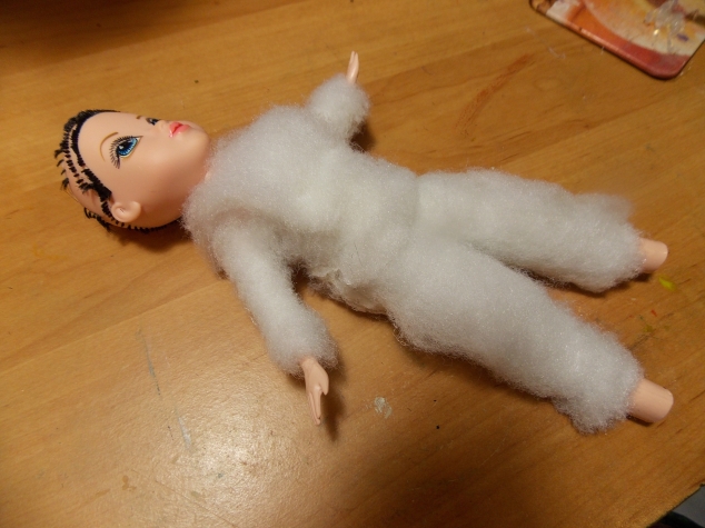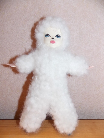 Скоро Новый год и так хочется сделать что-нибудь хорошее, светлое своими руками... Символ года - овечка или коза?! Но как и из чего? В руки попалась, погрызаная от большой любви нашей собачкой, кукла дочки и вот работа закипела! Это будет овечка, Овечка Росси (первое, что пришло в голову).