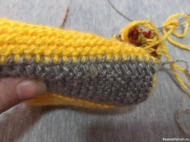 Всего у меня тельце тапочка 36 рядов или 18 рубчиков. На 37 размер при моей плотности вязания этого достаточно.