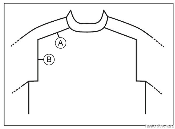 Прибавить 1 петлю перед 1м и 3м маркерам (т.е. до схемы А.1) и прибавить по 1 петле после 2го и 4го маркеров (т.е. после схемы А.1) – см пояснения к вязанию (=прибавлено 4 петли). Число петель плеча должно остаться неизменным.