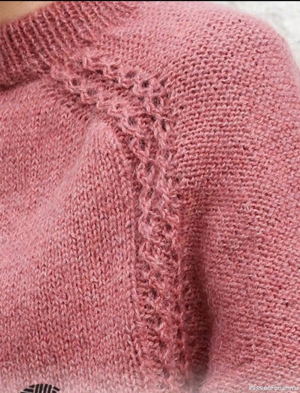 После последней прибавки будет провязано ок. 8-9-10-11-12-13 см от маркера на горловине. Дале выполнять прибавки для рукавов так, как описано ниже.