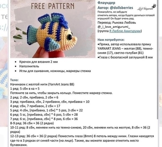 Рыбка Флаундер крючком. МК