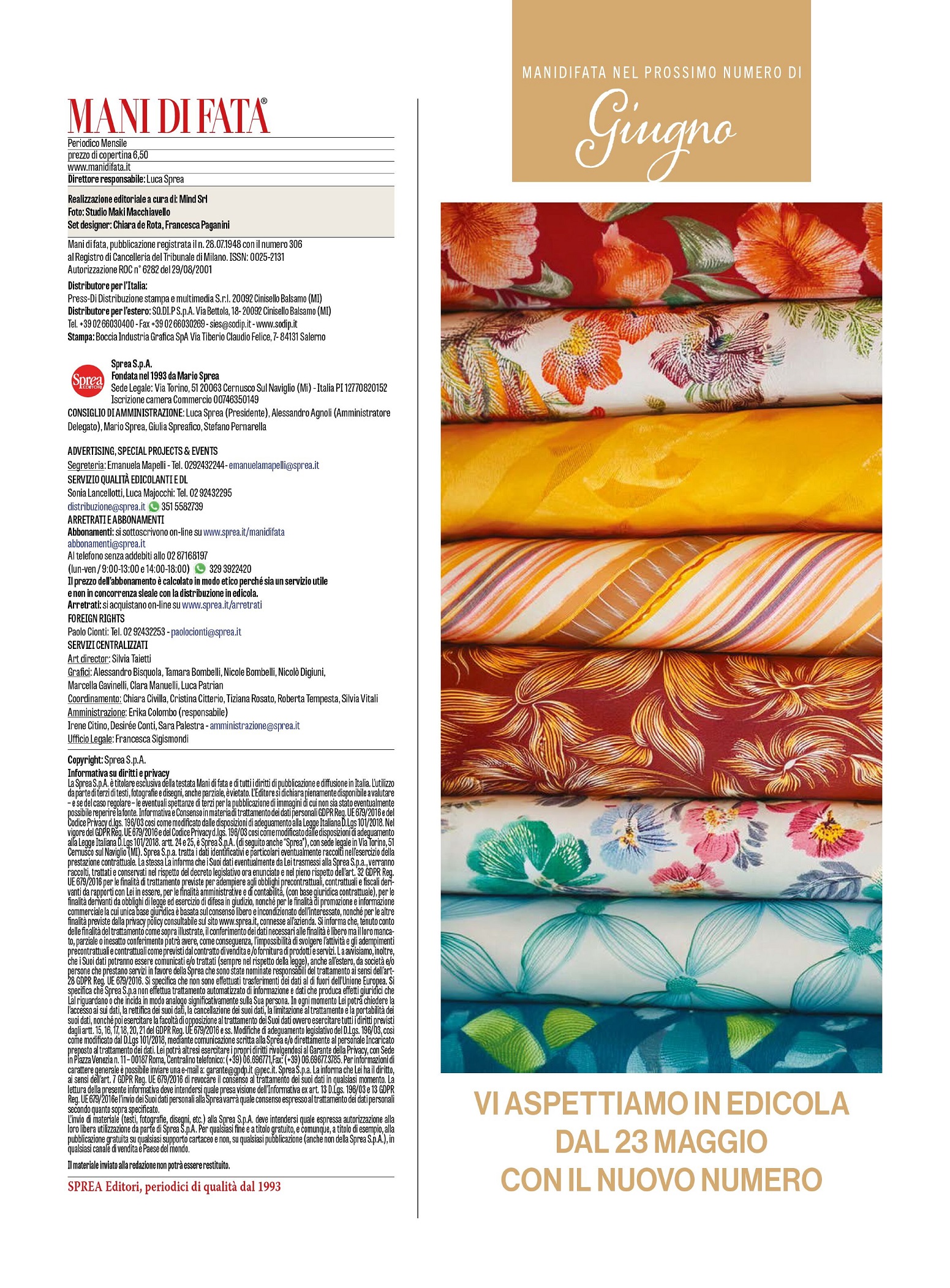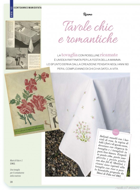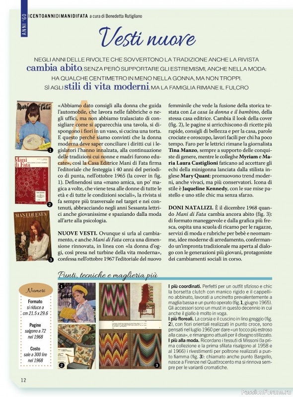 Красочный итальянский журнал по рукоделию. В этом номере множество проектов, выполненных в разных техниках - вязание на спицах и крючком, вышивка крестом и гладью, шитьё, которые придутся по вкусу самым избирательным любителям новинок в мире моды.