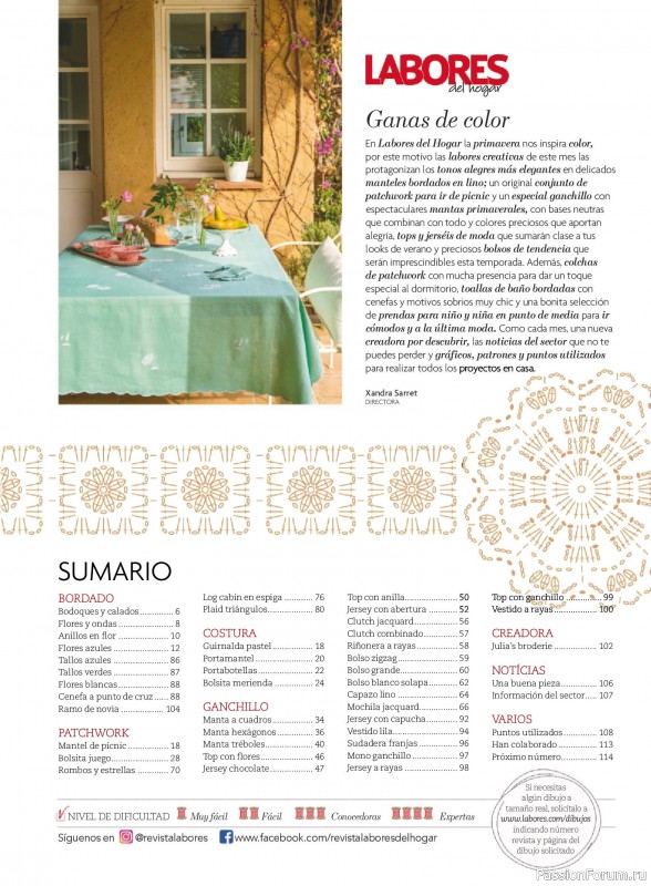 Красочный испанский журнал посвящен рукоделию. Разнообразные рукодельные проекты и идеи в различных стилях под одной обложкой: шитье, вязание крючком и спицами, машинная вышивка, изготовление игрушек.