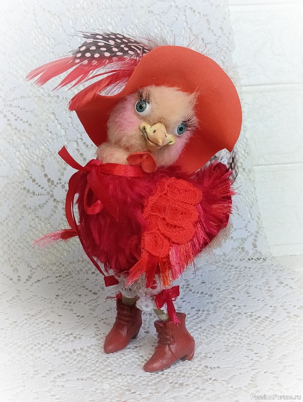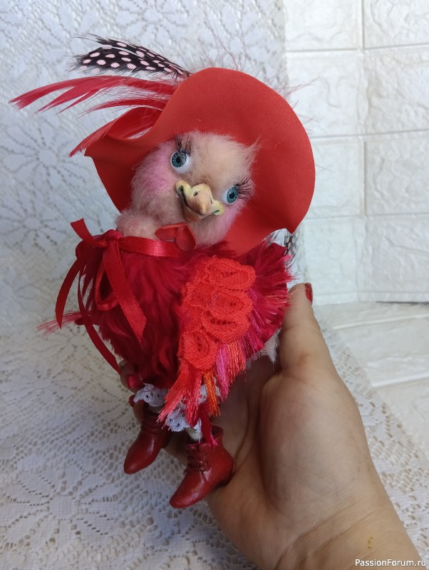 Да, клювик и сапожки из запекаемого пластика, в лепке больше отдаю ей предпочтение. Конечно, так шедеврально, как ты лепить еще не умею, но потихонечку осваиваю)) А начиналось все с проволочного каркаса, я потом придаю объёмы при помощи шерсти, сливера или синтепона. А затем обшиваю тканью и начинаю наряжать))