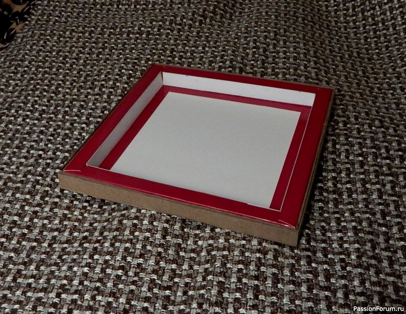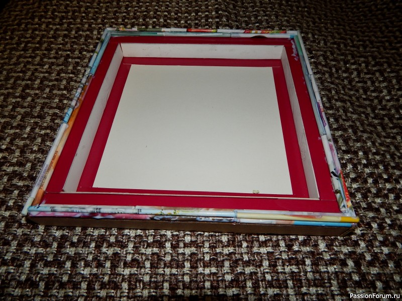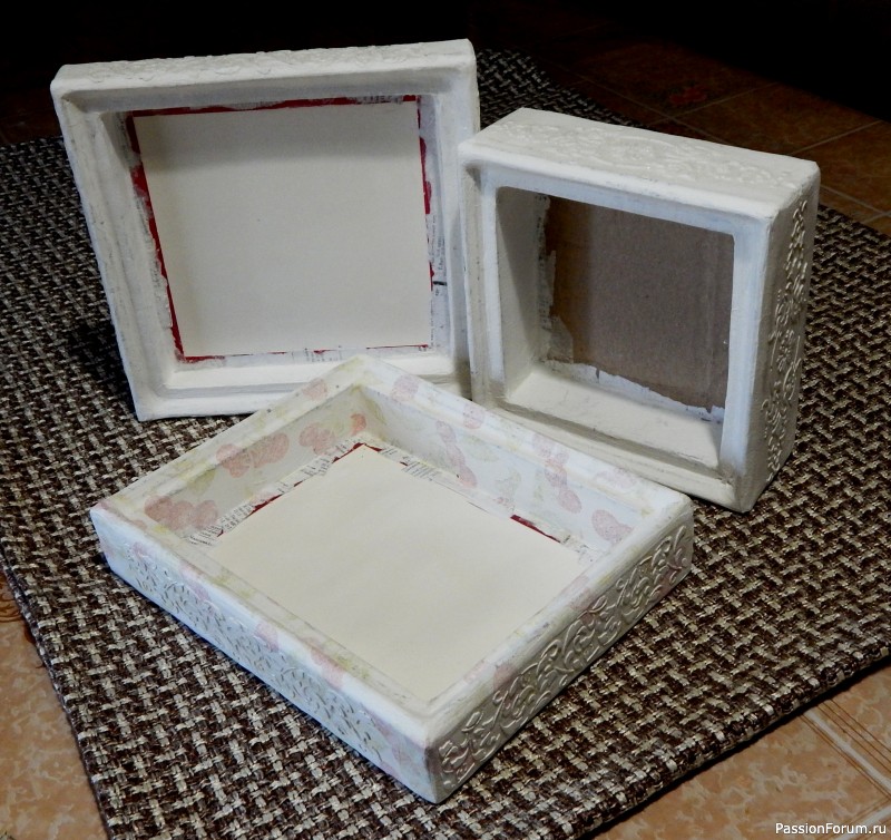 Эта маленькая коробочка была очень глубокой, поэтому я вклеила внутрь четыре слоя гофрокартона. И все три рамочки вместе.