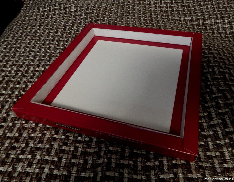 Здравствуйте, дорогие любители рукоделия! В этом топике я хочу поделиться с вами техникой изготовления рамочки из обычной коробки от конфет. Ничего особенного из материалов не потребуется. Сама коробка, тонкий картон, гофрокартон, бумага б\у, клей и шпатлевка. У меня вот такая коробочка.