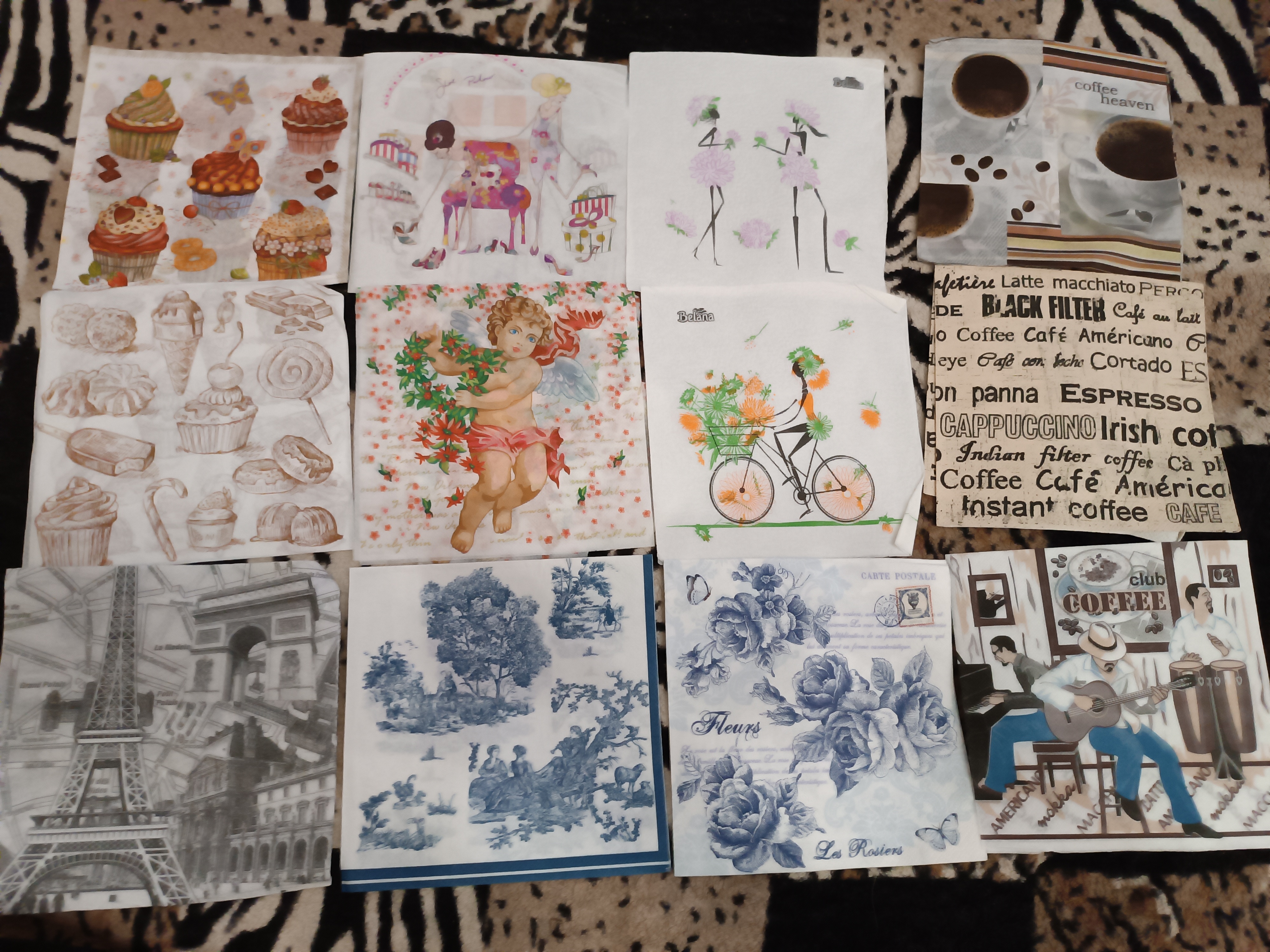 Девочки, накопилось очень много салфеток с самыми разными рисунками. Продам все сразу, пересылка только по Беларуси.