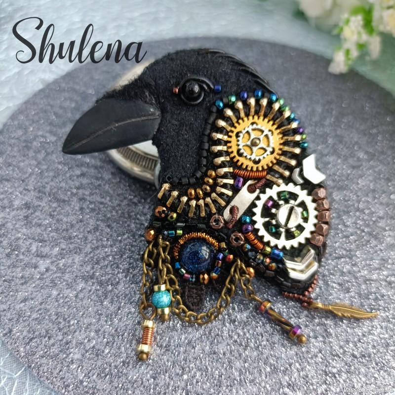В работе использовала материалы: бархат, бисер, бусины, шестеренки и другие элементы для рукоделия. Изнанка натуральная замша