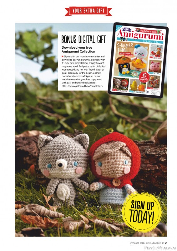 Журнал "Simply Crochet" посвящён вязанию крючком. В каждом выпуске этого журнала представлены проекты для вязания моделей одежды для взрослых и детей, аксессуаров, игрушек, предметов интерьера для дома.
