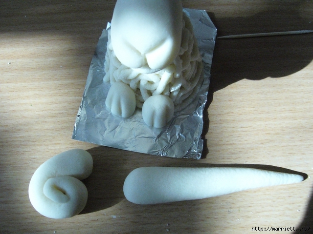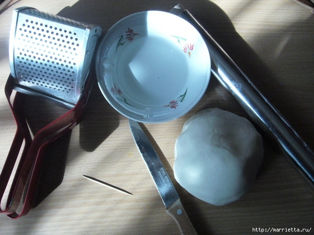 Первое — то, что, я не до конца представляла себе как вылепить некоторые детальки. Спасибо большое, Людочка, за этот МК! Вторая загвоздка, и, самая, по-моему, основная — та, которую озвучила Наташа, за что большое спасибо и Наташе! У меня всё время был внутренний тормоз и не могла осознать: откуда? Рука не поднималась взять в дело высокосортную муку на такого рода занятие, в то время, как много людей на планете голодает. Ладно, 30 лет назад, серую с ворсинками от мешка и с жучками муку российского производства было не так жалко, даже после просеивания, использовать на красивенького петушка для украшения унылой тесной кухонки. А сейчас я, наконец, придумала и для себя оправдание на этот счёт: возьму просроченные зёрна, которые остались неиспользованными для выпечки хлеба. Покупала давно, срок годности просрочен, не выбрасывать же, хоть и совсем немного осталось. Когда примерно столько же соли добавлю, будет в самый раз. Да и овечек можно же крошечных налепить, чисто символических. Радости будет, надеюсь, намного больше, чем убытка. А пластик для лепки у нас нигде не продаётся, хотя можно, конечно, выписать, но дороговато будет и кто знает, вдруг, впоследствии окажется вредно для здоровья. (Честно говоря, начиталась про вред пластика, особенно при нагревании, выделения от которого могут вызвать рак.) Короче, спасибо, девочки, что помогли разобраться!