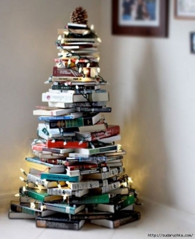 хорошая идея беспорядок сложить в виде елочки и обернуть гирляндой!