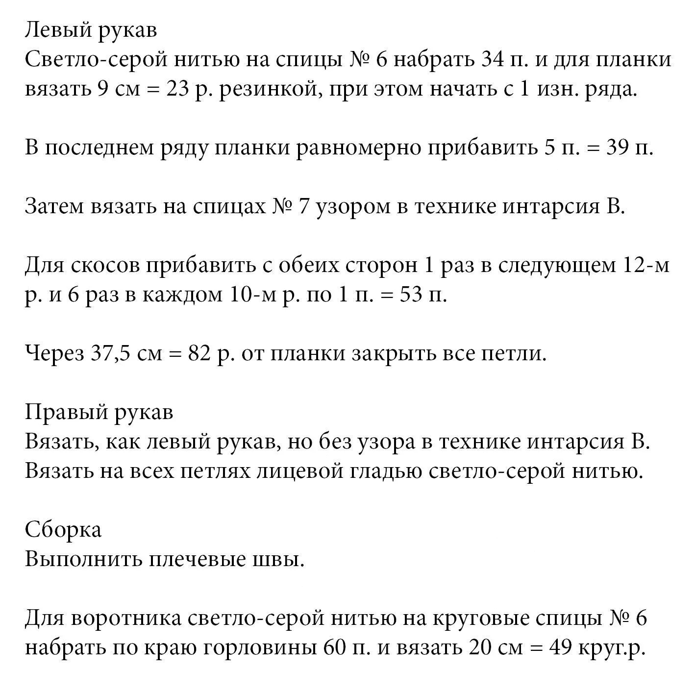 Пряжа (77% натуральной шерсти, 23% полиамида; 125 м/50 г) – 300 г светлосерой, а также по 100 г бордовой и черной, 50 г коричневой; спицы № 6 и 7; круговые спицы № 6.