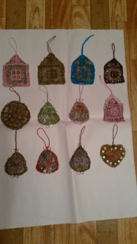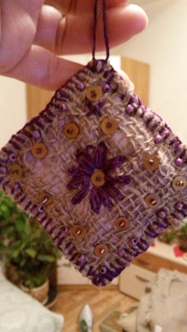 Вот такие игрушки придумались. Использовала мешковину, вышивку, декупаж, пайетки. И что из этого получилось ) Отчет первый)