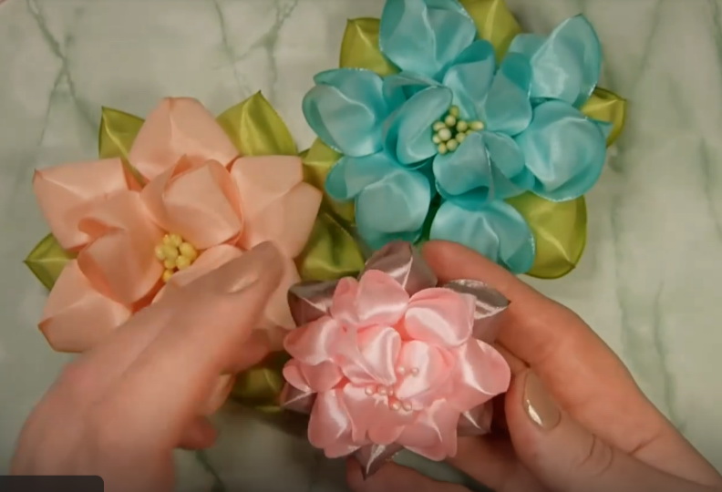 Красивые цветы канзаши из атласных лент своими руками. Цветы из лент своими руками.