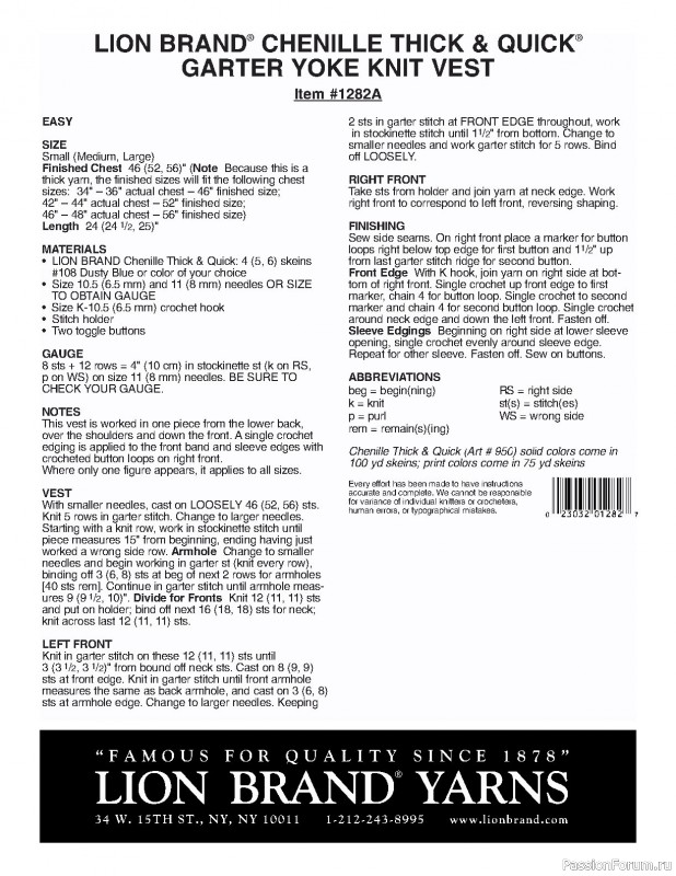by Lion Brand Yarn. Описание на английском.