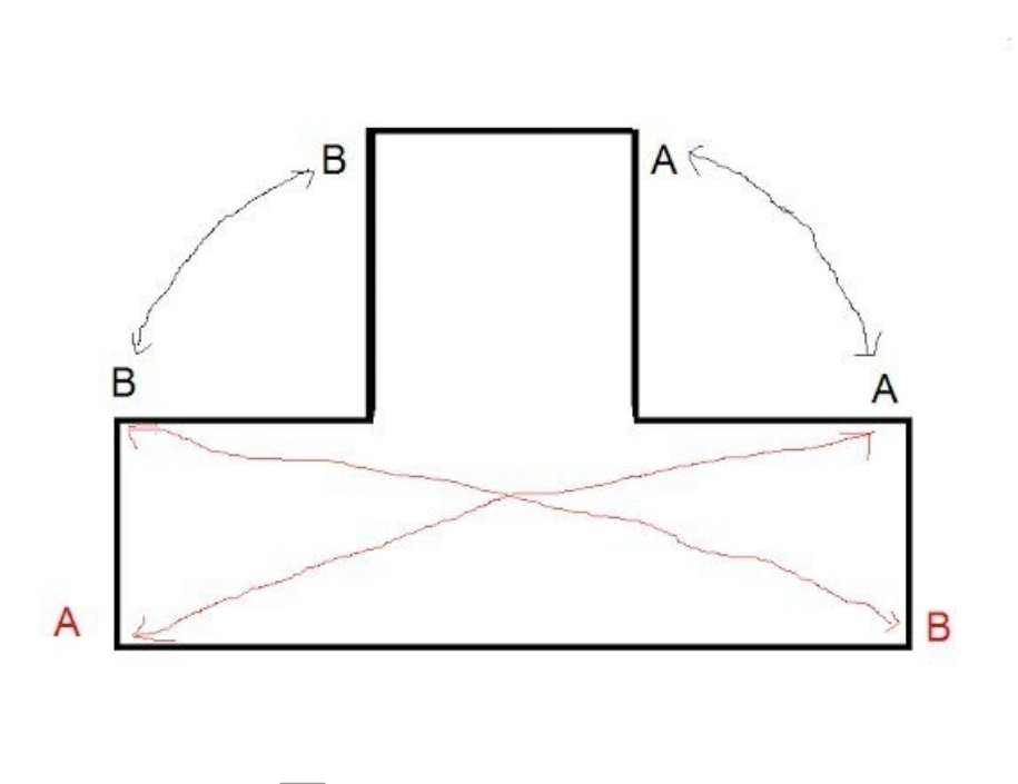 Сшиваем сначала черные буквы, от B до B , на протяжении всей длины.Затем, с B., формируя носочек.Затем с А