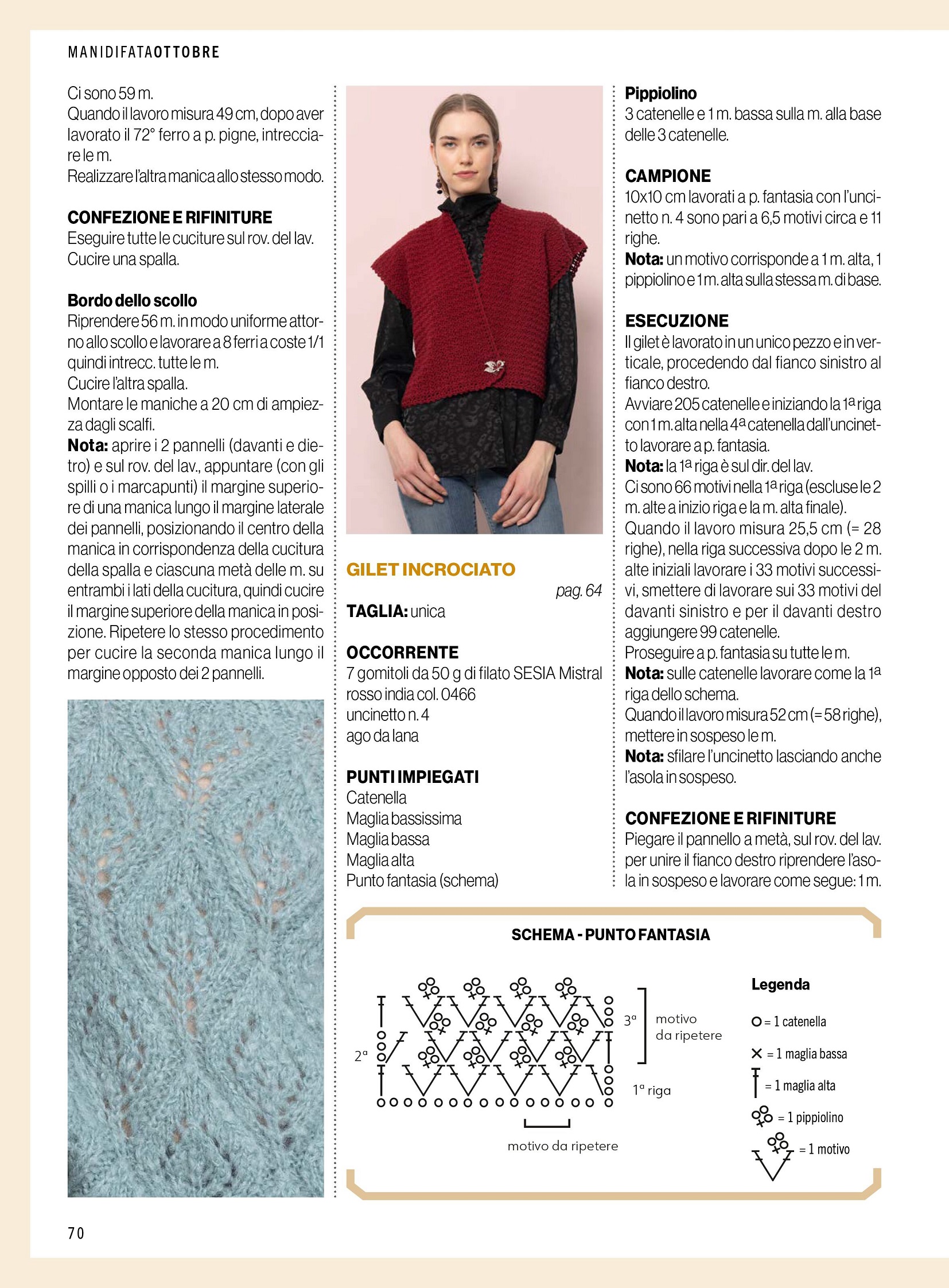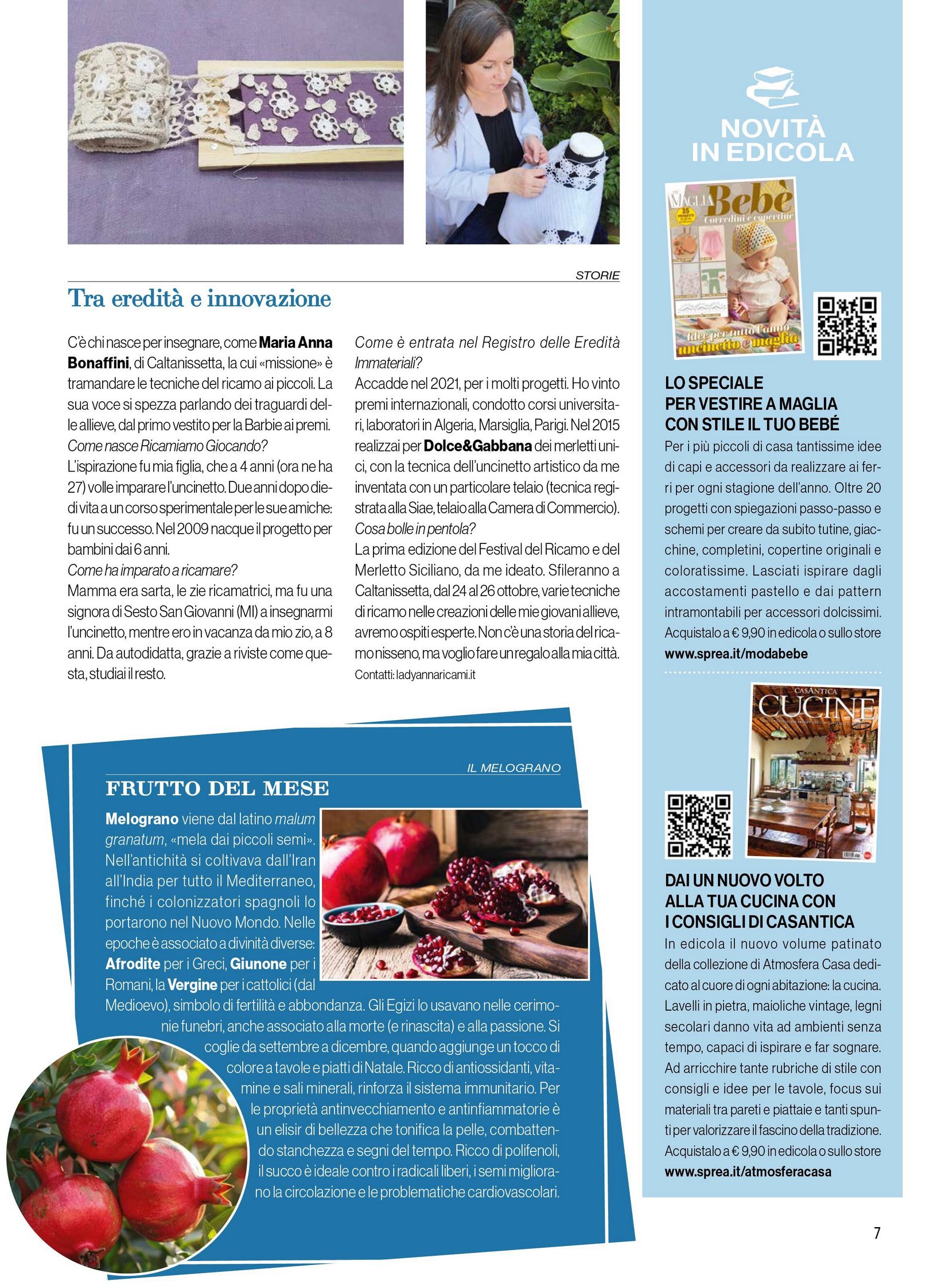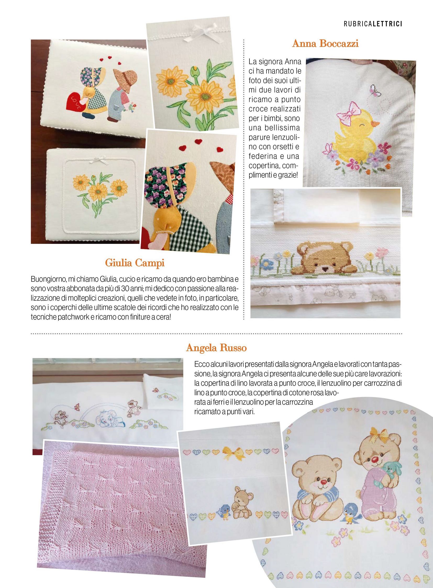 Красочный итальянский журнал по рукоделию. В этом номере множество проектов, выполненных в разных техниках - вязание на спицах и крючком, вышивка крестом и гладью, шитьё, которые придутся по вкусу самым избирательным любителям новинок в мире моды.