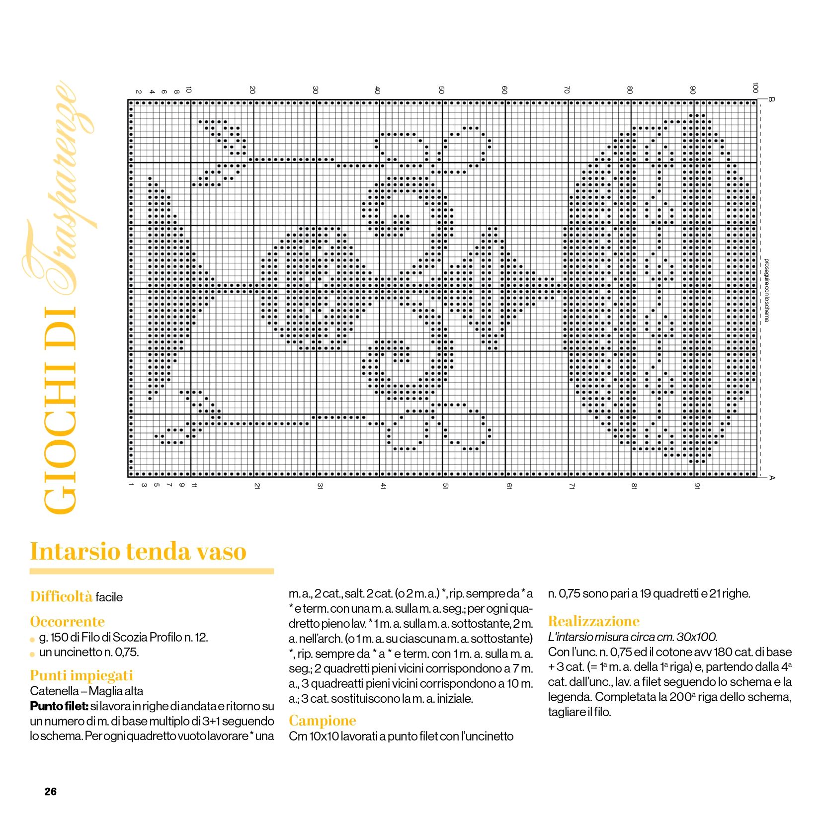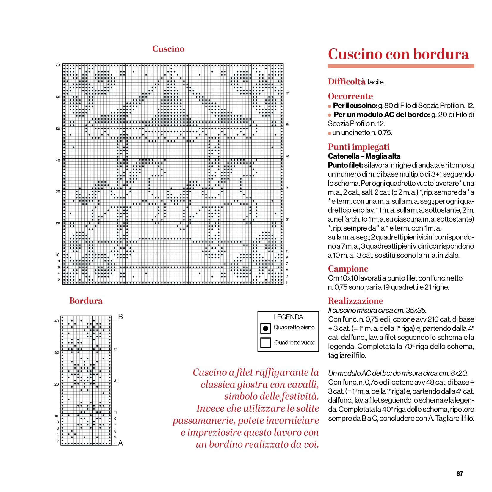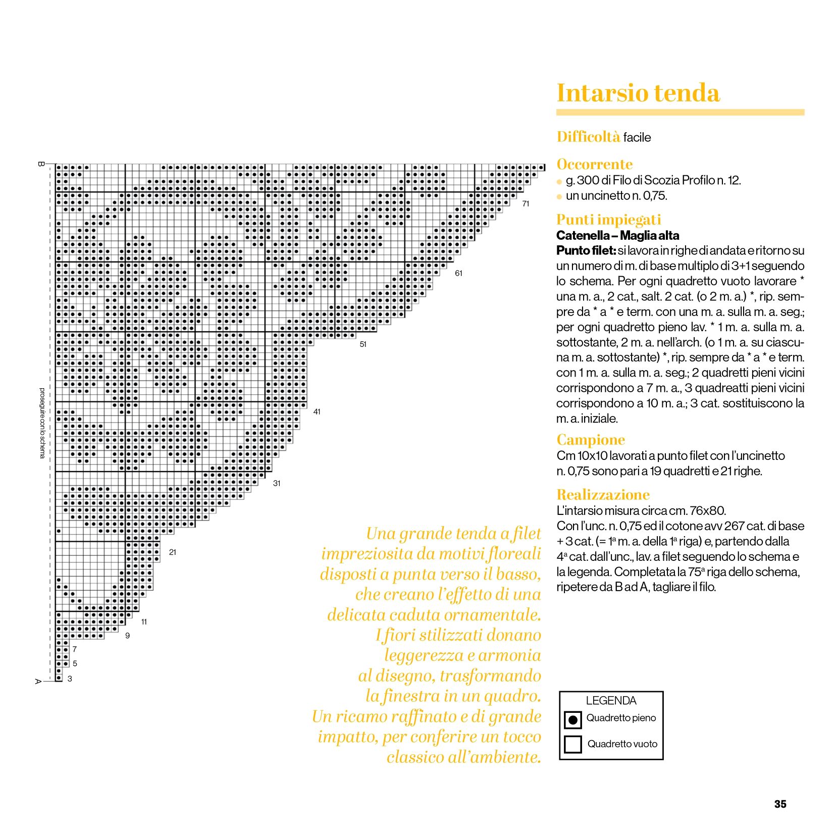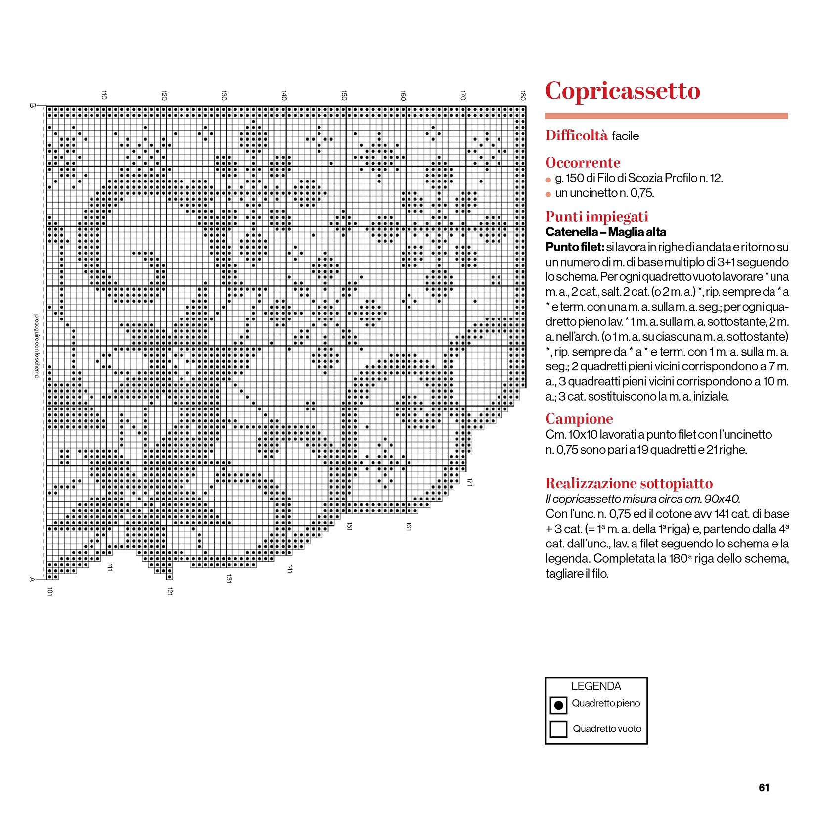 Итальянский журнал по вязанию крючком. В каждом номере проекты и идеи для создания уюта в вашем доме: занавески, бордюры, салфетки, кайма, связанные крючком в филейной технике. А также сумки, пледы, подушки, коврики, прихватки и многое другое.