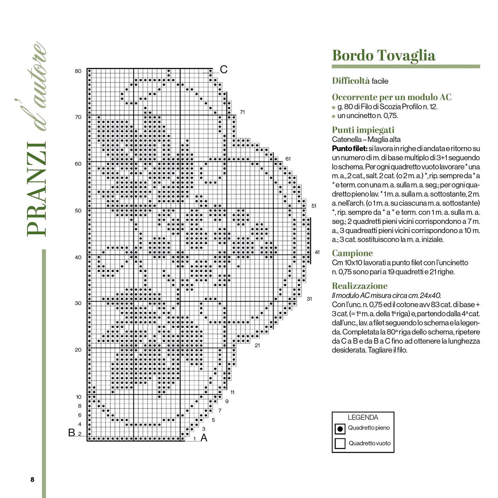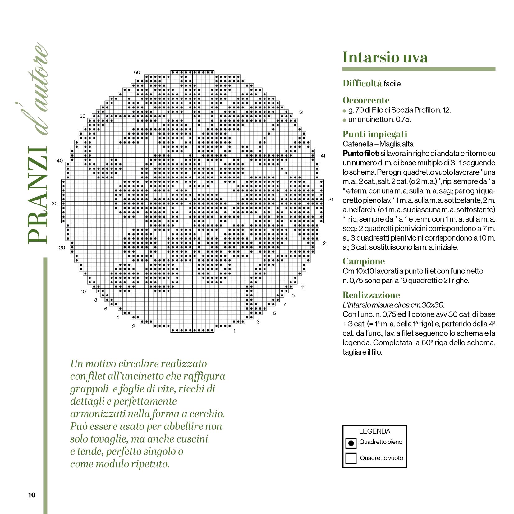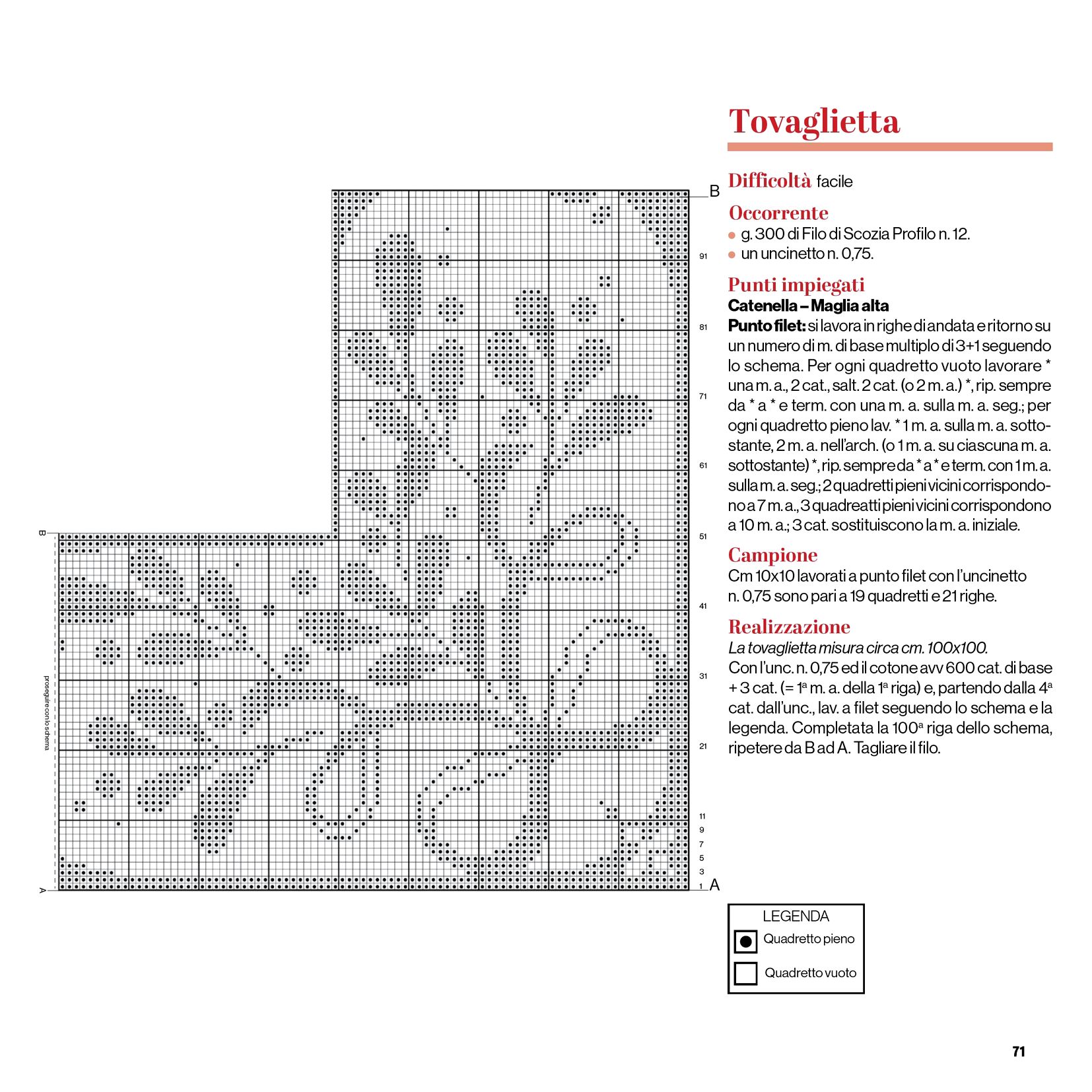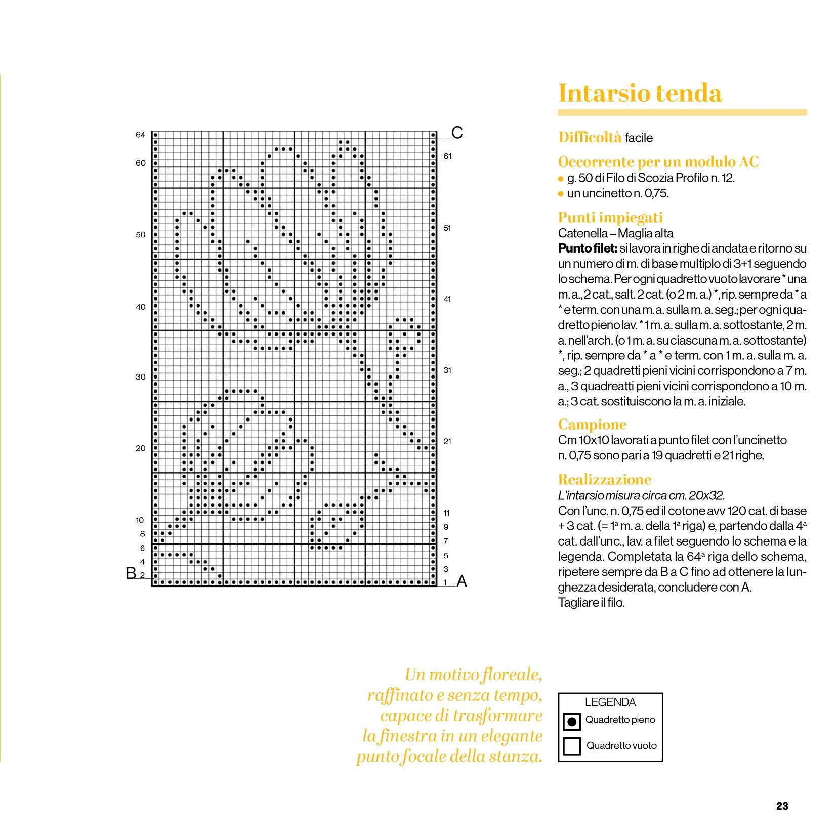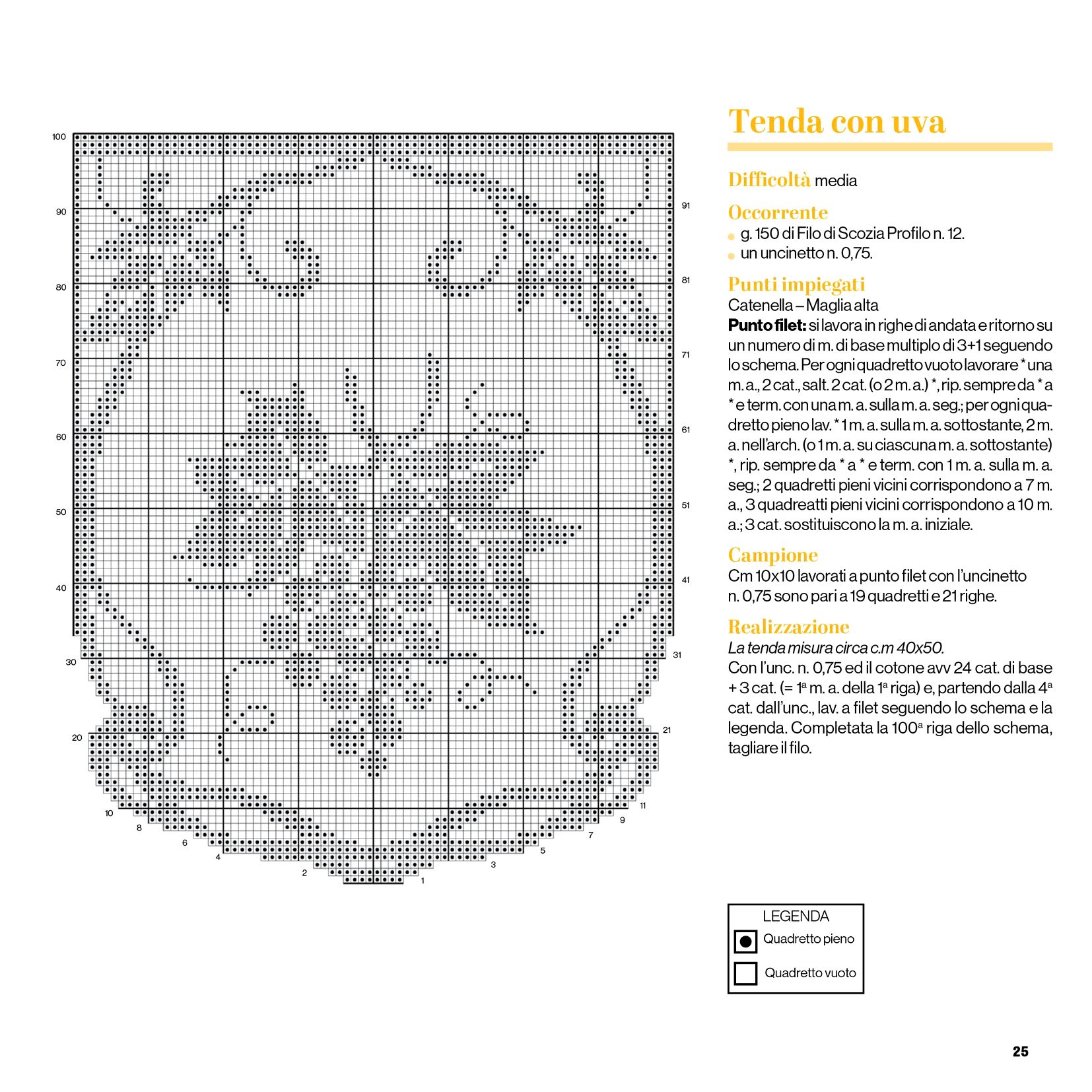 Итальянский журнал по вязанию крючком. В каждом номере проекты и идеи для создания уюта в вашем доме: занавески, бордюры, салфетки, кайма, связанные крючком в филейной технике. А также сумки, пледы, подушки, коврики, прихватки и многое другое.