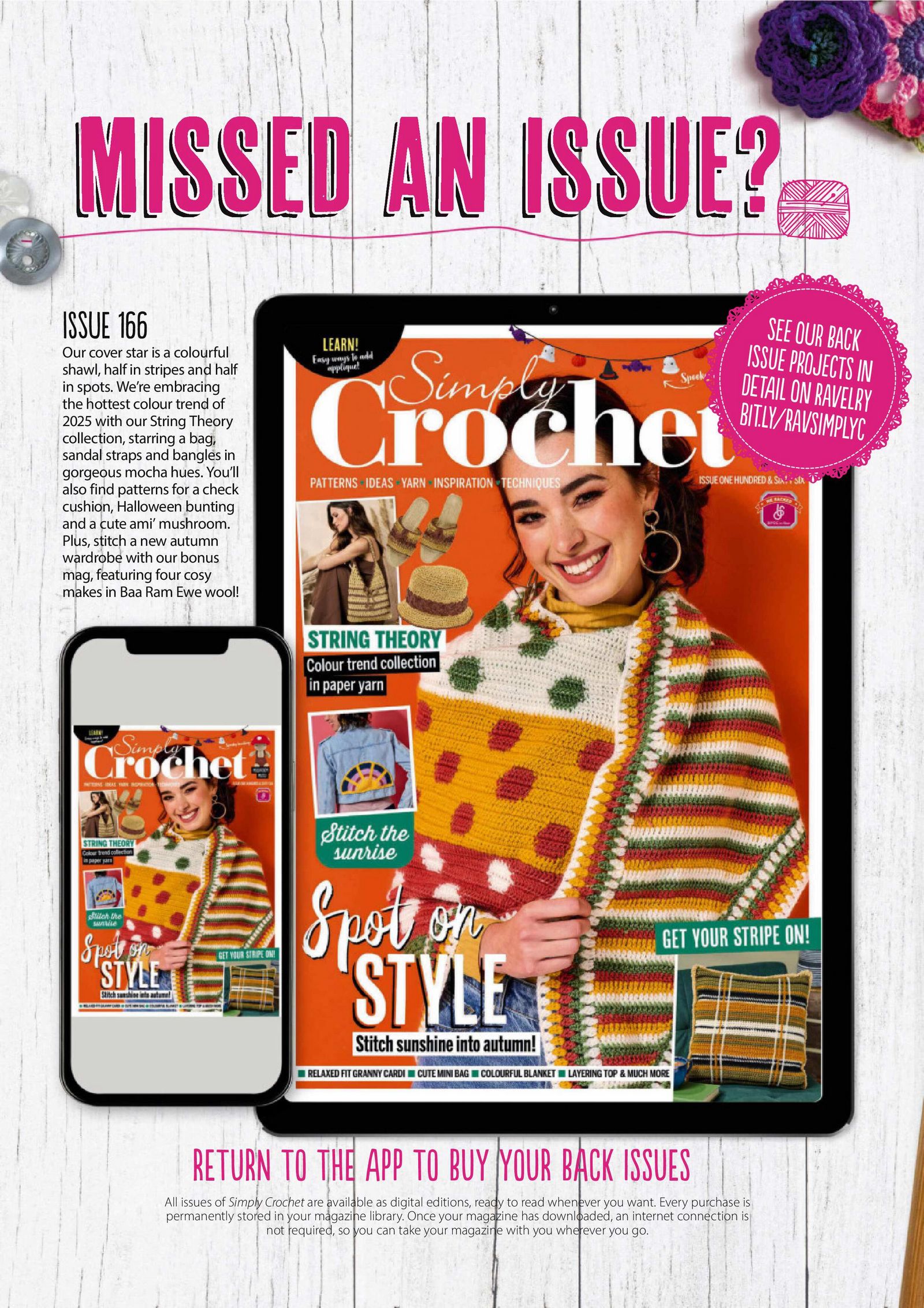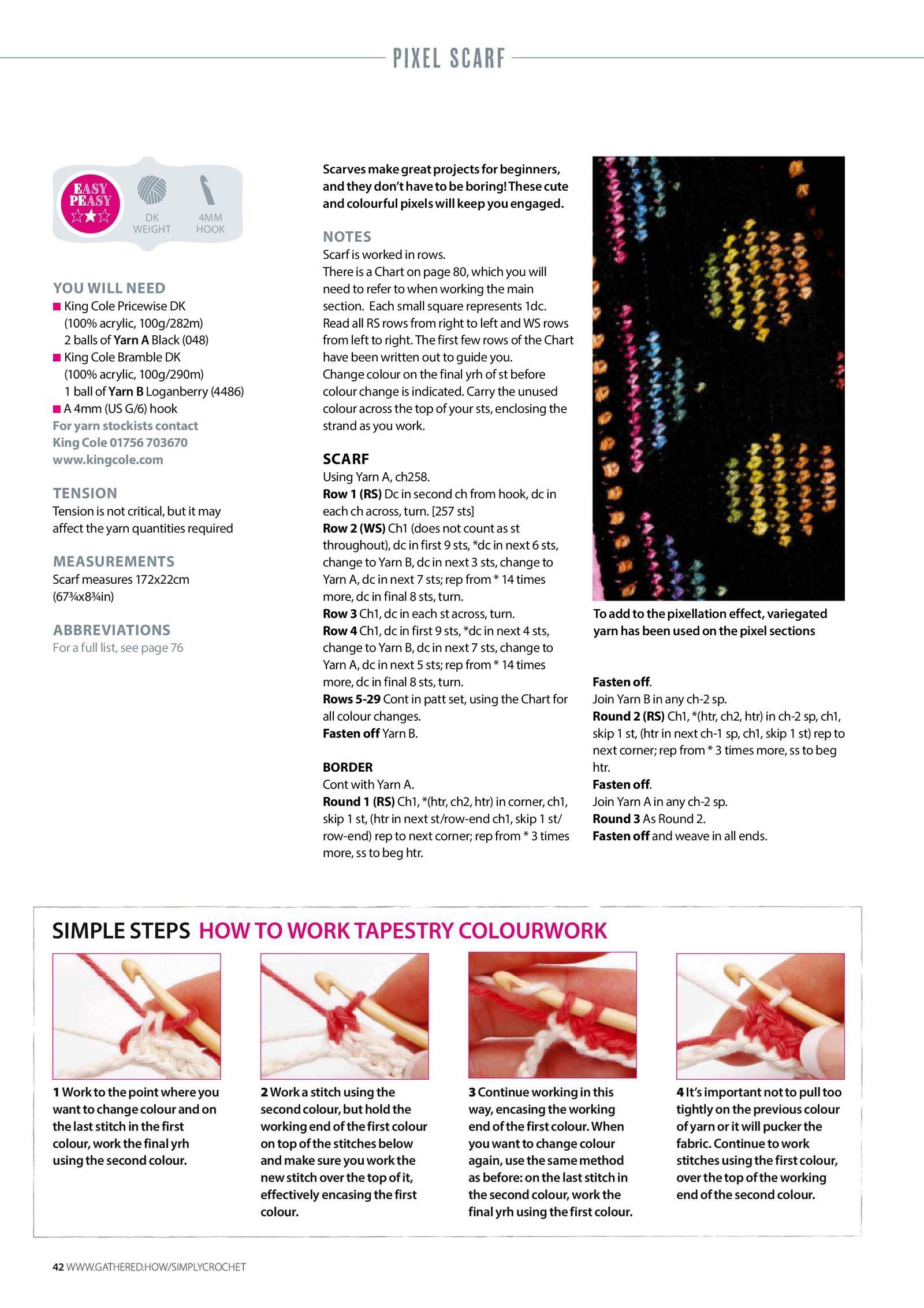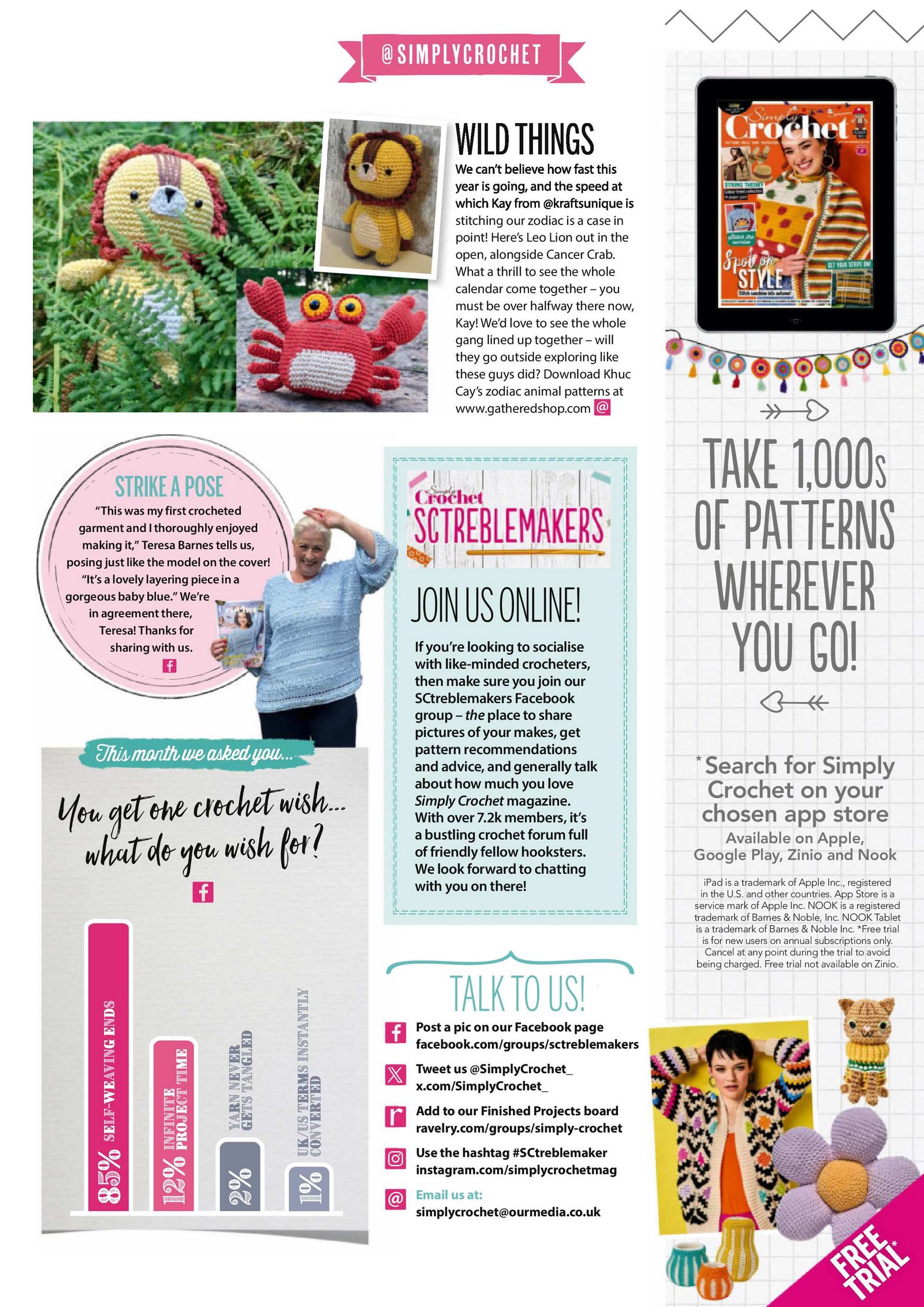 Журнал "Simply Crochet" посвящён вязанию крючком. В каждом выпуске этого журнала представлены проекты для вязания моделей одежды для взрослых и детей, аксессуаров, игрушек, предметов интерьера для дома.
