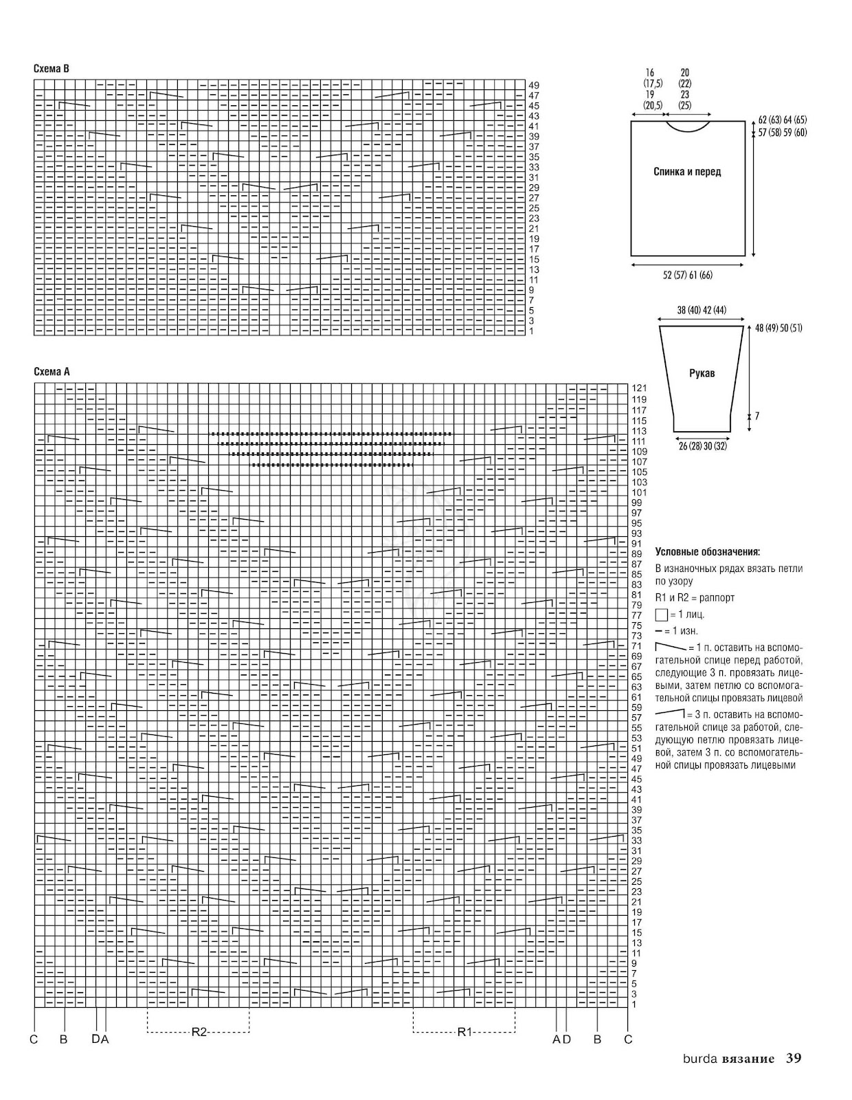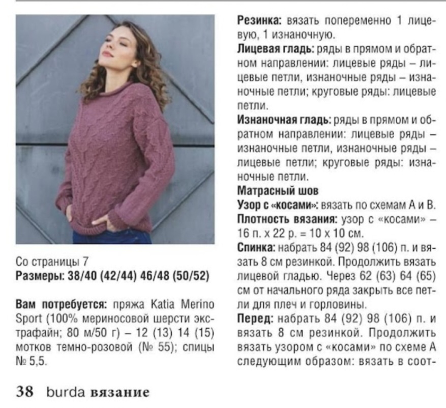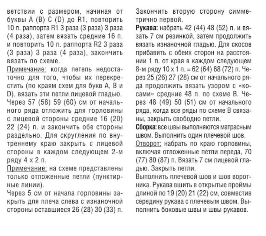 Джемпер с "косами" спицами. Схема и описание вязания.
