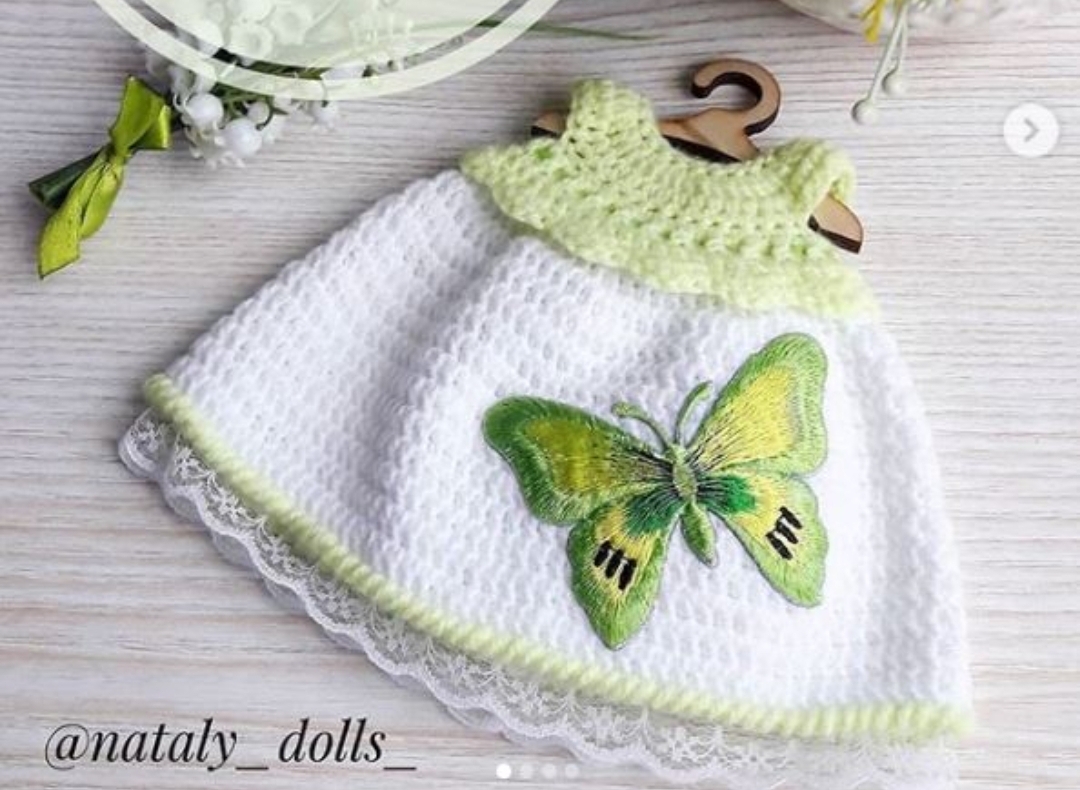 Делюсь с Вами описанием платья крючком для куклы ростом 28-30 см.
