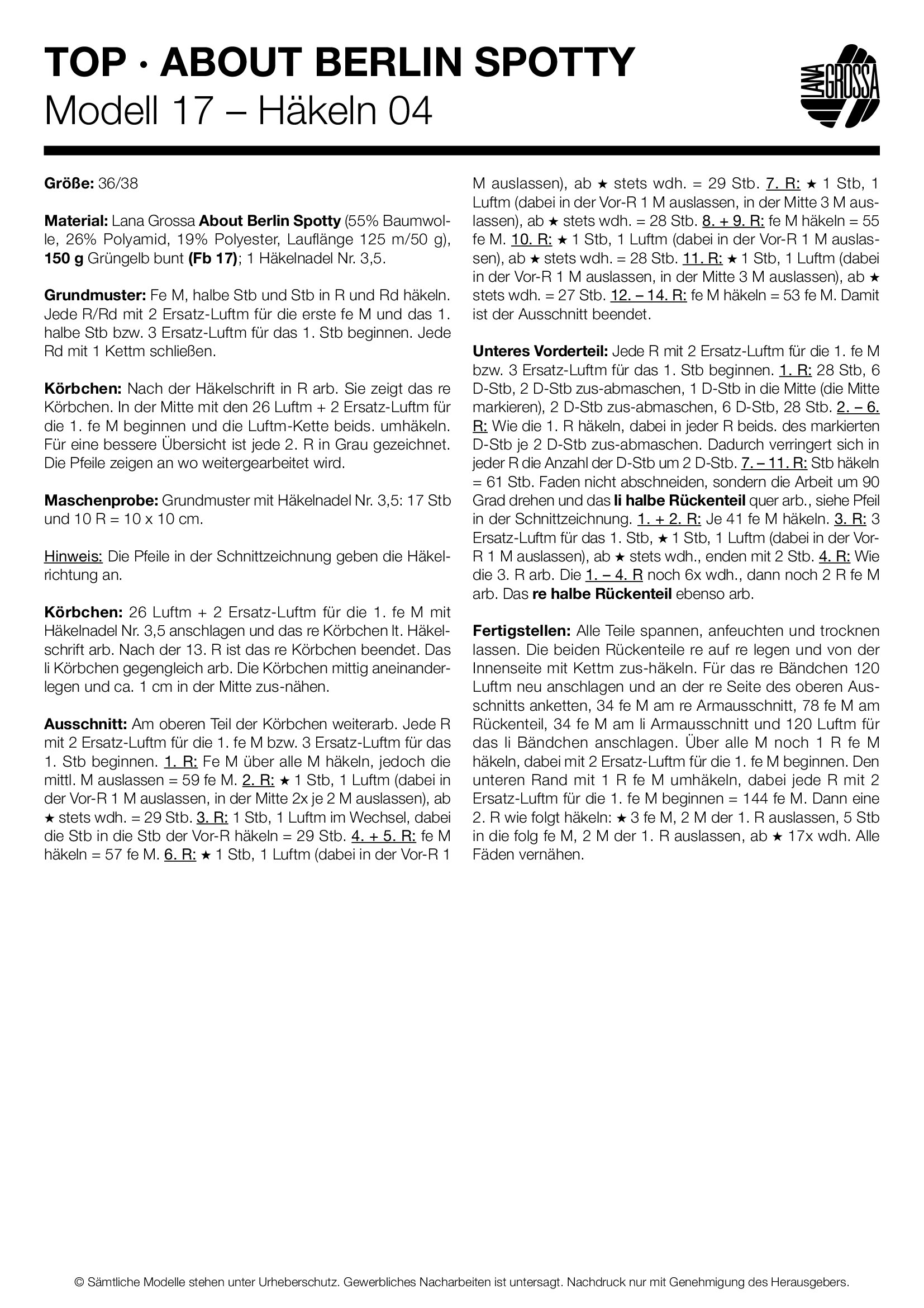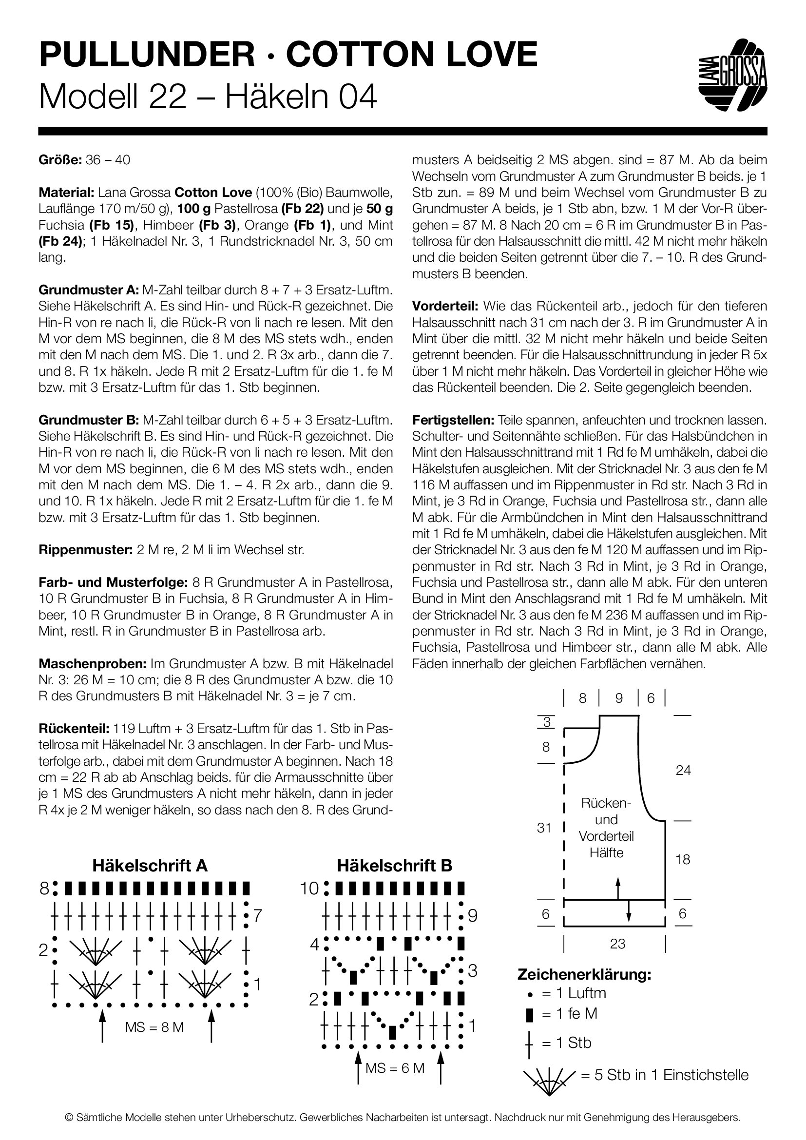 В этом журнале представлено 19 схем для жизнерадостной моды в летних цветах. Lana Grossa Filati Crochet – это вязаные крючком изделия и аксессуары, такие как топы, платья, жакеты, шали, летние шляпки и сумки. Каждая схема обладает уникальным шармом и выполнена в ярких цветах, так что вы сможете связать стильное изделие для весны и лета в кратчайшие сроки!