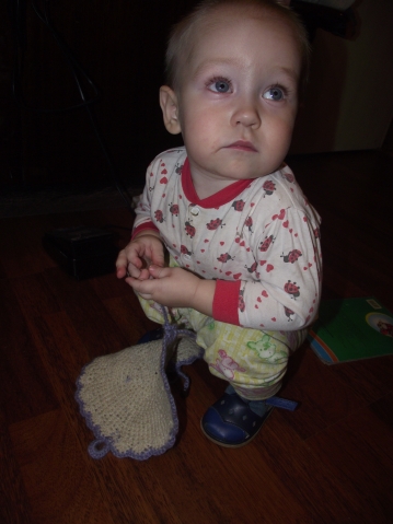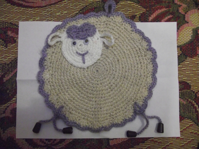 А теперь поподробнее... Самому главному человечку в нашей семье очень понравилась прихватка - овечка. Весь вечер с ней топал по квартире!))