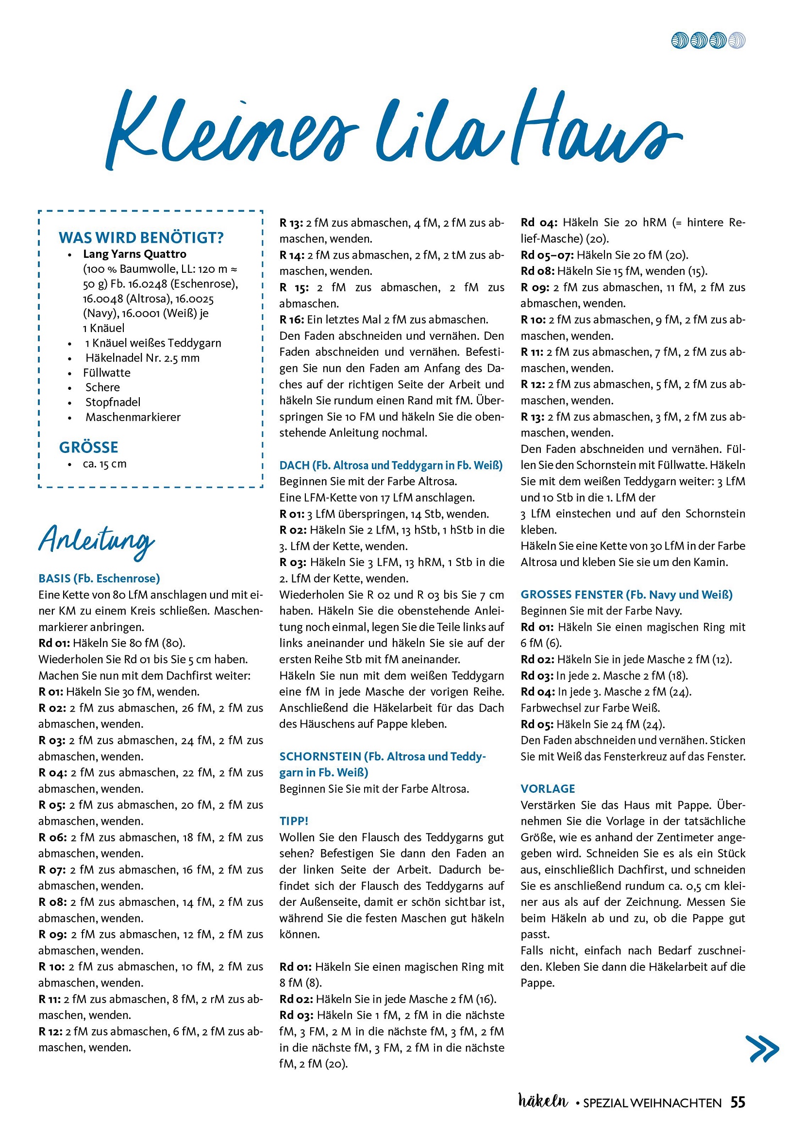 Специальный выпуск журнала Hakeln Sonderheft предлагает проекты для вязания крючком к предстоящим праздникам Новому году и Рождеству. Здесь вы найдете вязаные изделия разного плана – игрушки, пледы, накидки, шали, корзинки для рукоделия – здесь вы найдете все, что душе угодно.