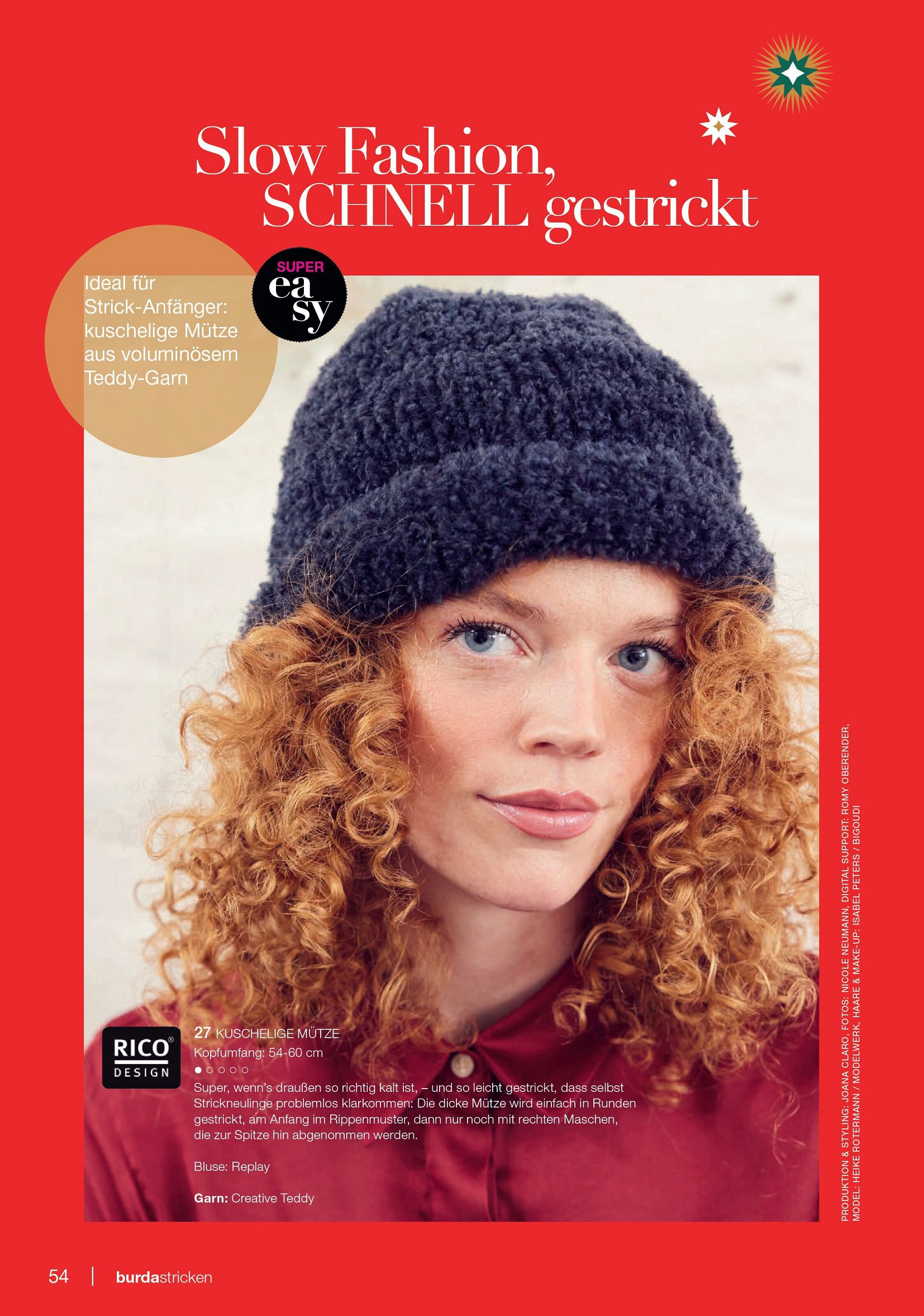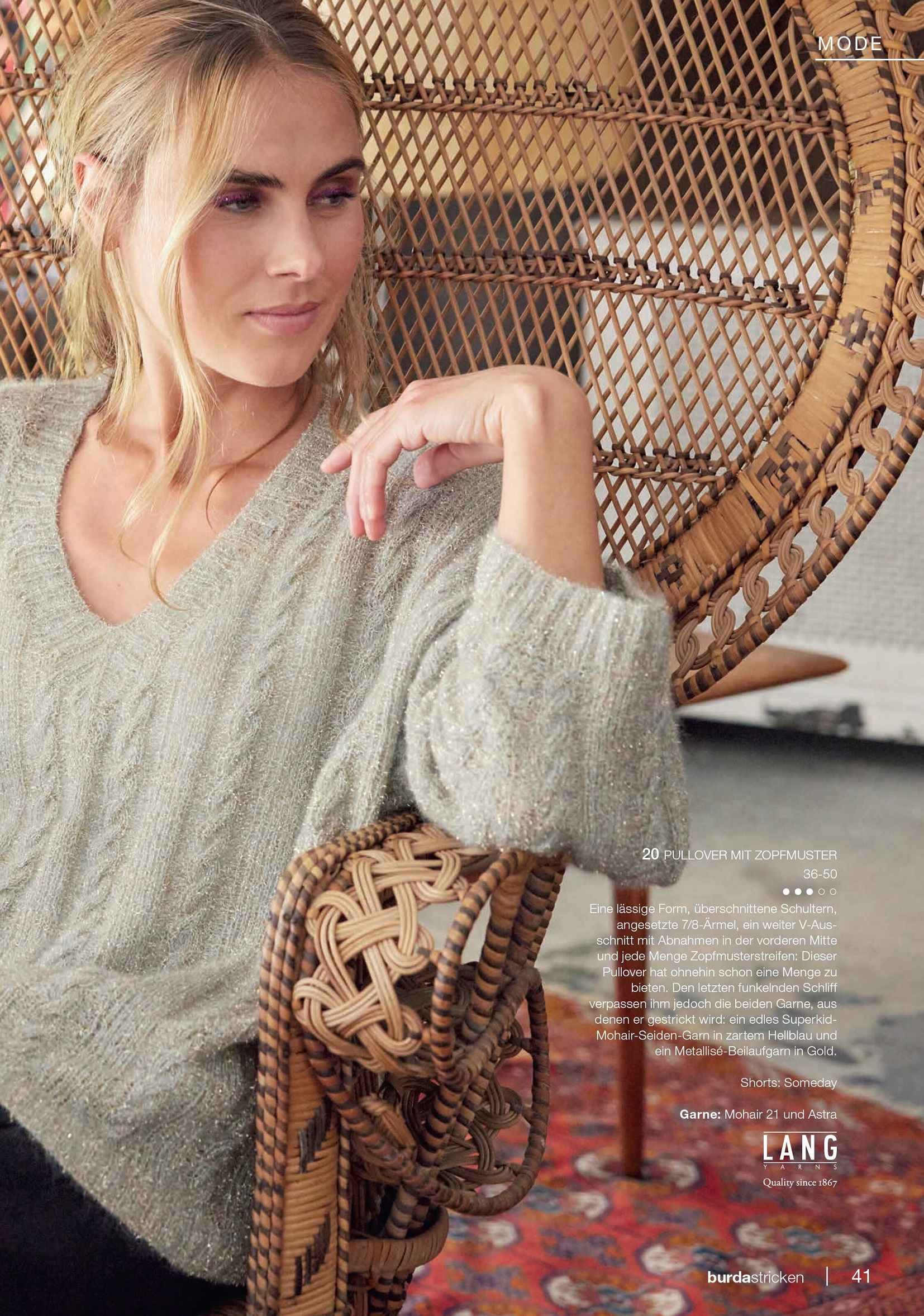 Журнал по вязанию на спицах и крючком на немецком языке для всей семьи. В каждом выпуске представлено более 25 моделей, которые пополнят сезонный гардероб, а также аксессуары для создания модных образов. Журнал рассчитан на опытных мастериц, которым по силам сложные узоры, требующие кропотливой работы, и неординарные конструктивные решения.