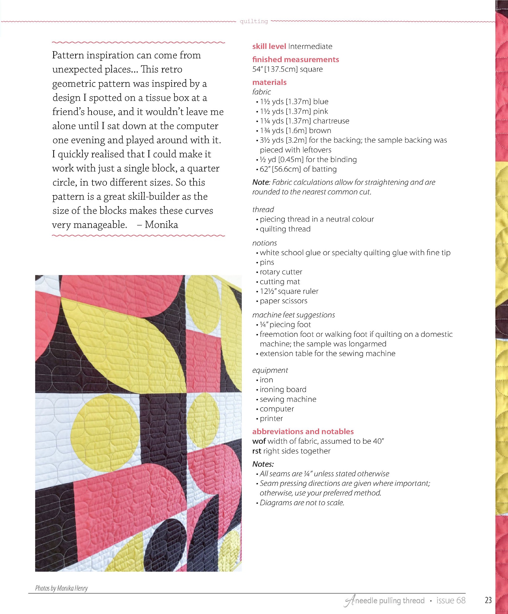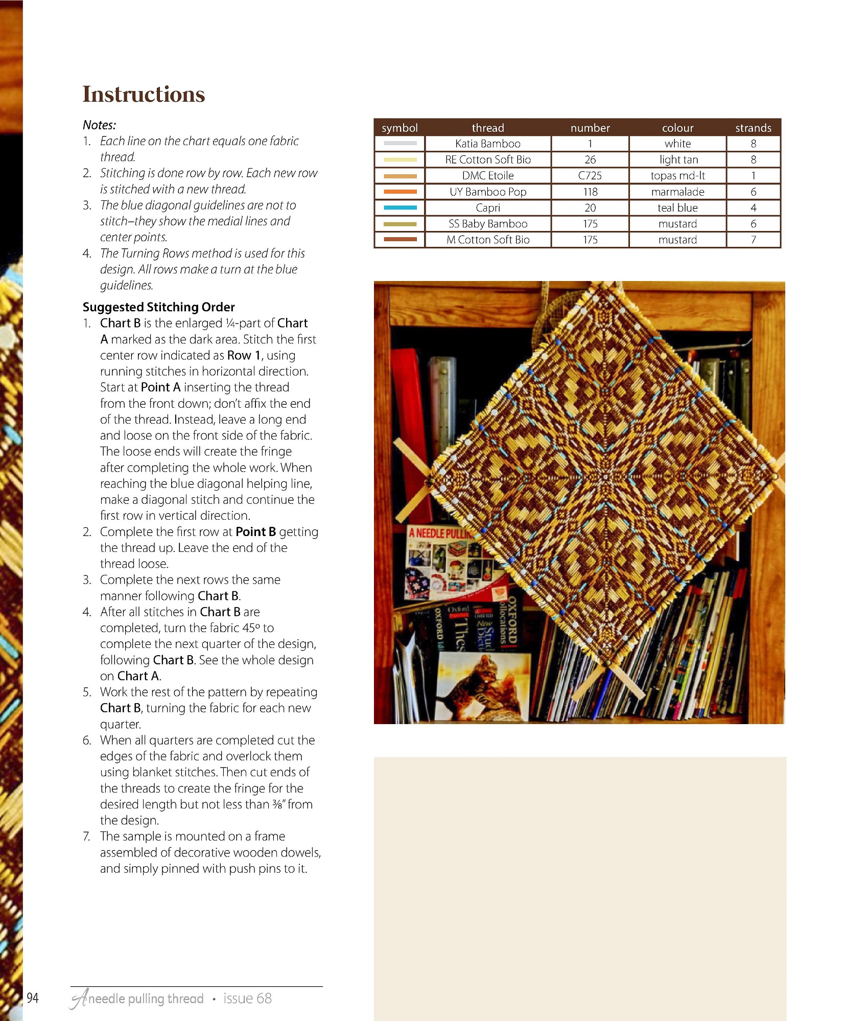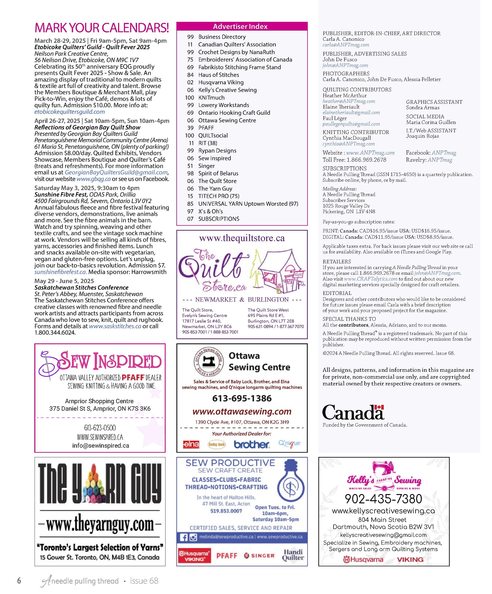 A Needle Pulling Thread — это популярный журнал, под обложкой которого собраны разные виды рукоделия: квилтинг, вязание, вышивка, бисероплетение, ковровое дело, шитье и многое другое. Он включает в себя проекты с полной инструкцией и цветными фотографиями.