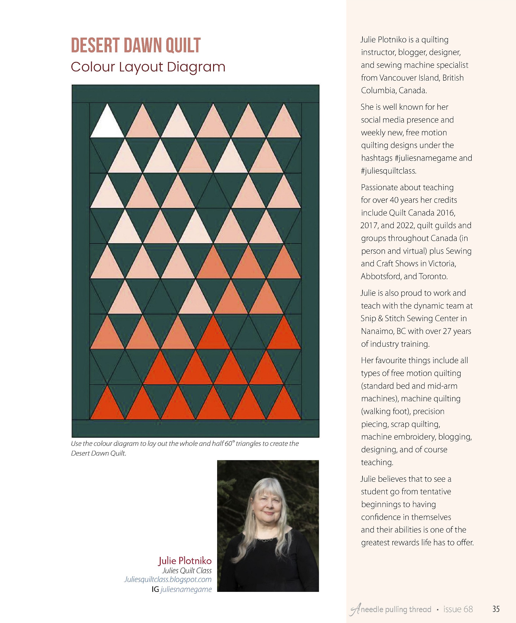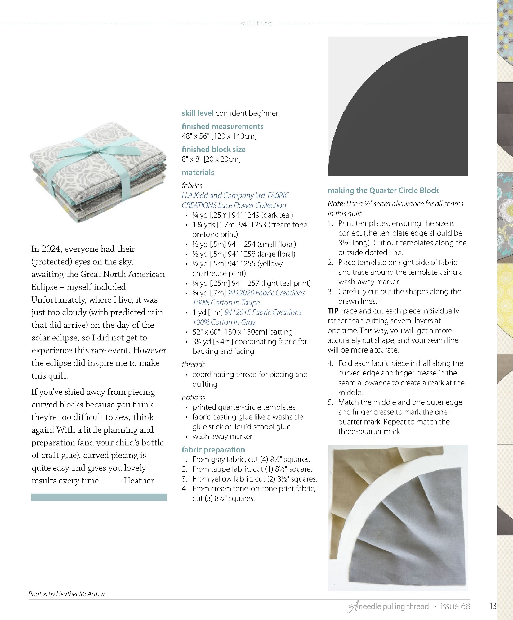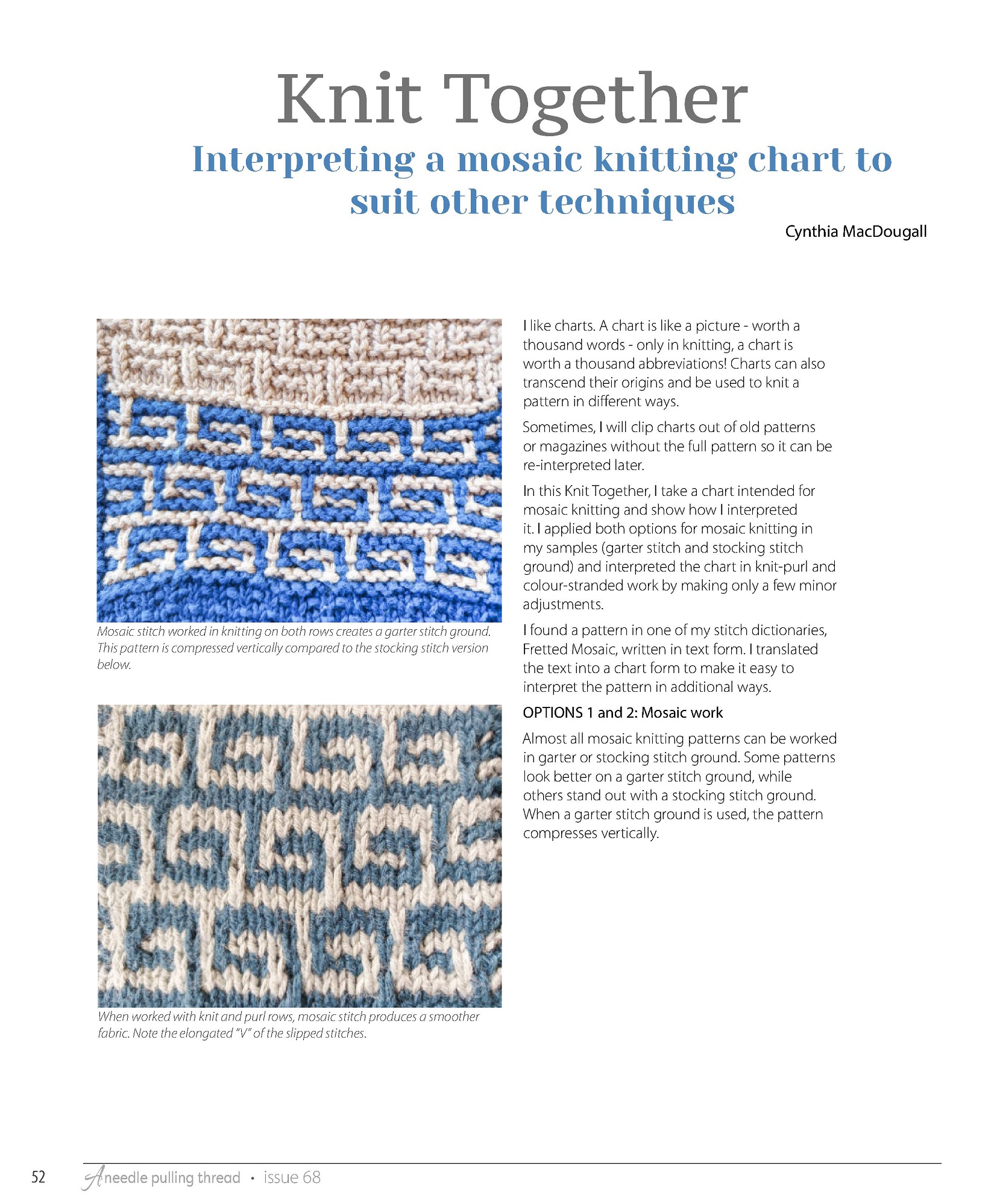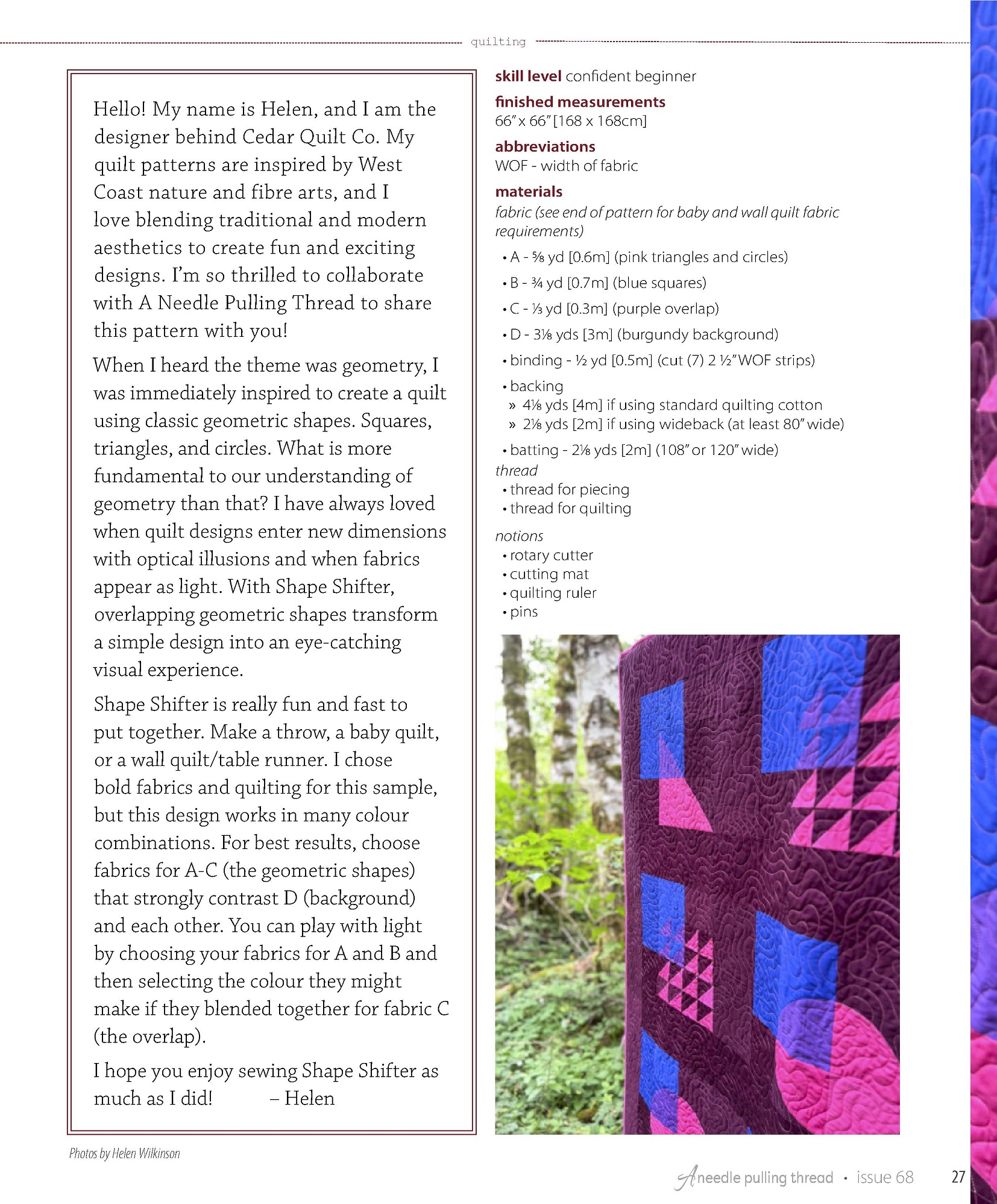 A Needle Pulling Thread — это популярный журнал, под обложкой которого собраны разные виды рукоделия: квилтинг, вязание, вышивка, бисероплетение, ковровое дело, шитье и многое другое. Он включает в себя проекты с полной инструкцией и цветными фотографиями.