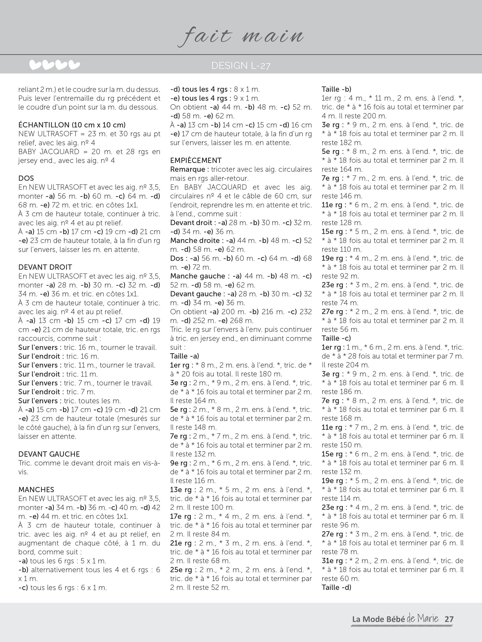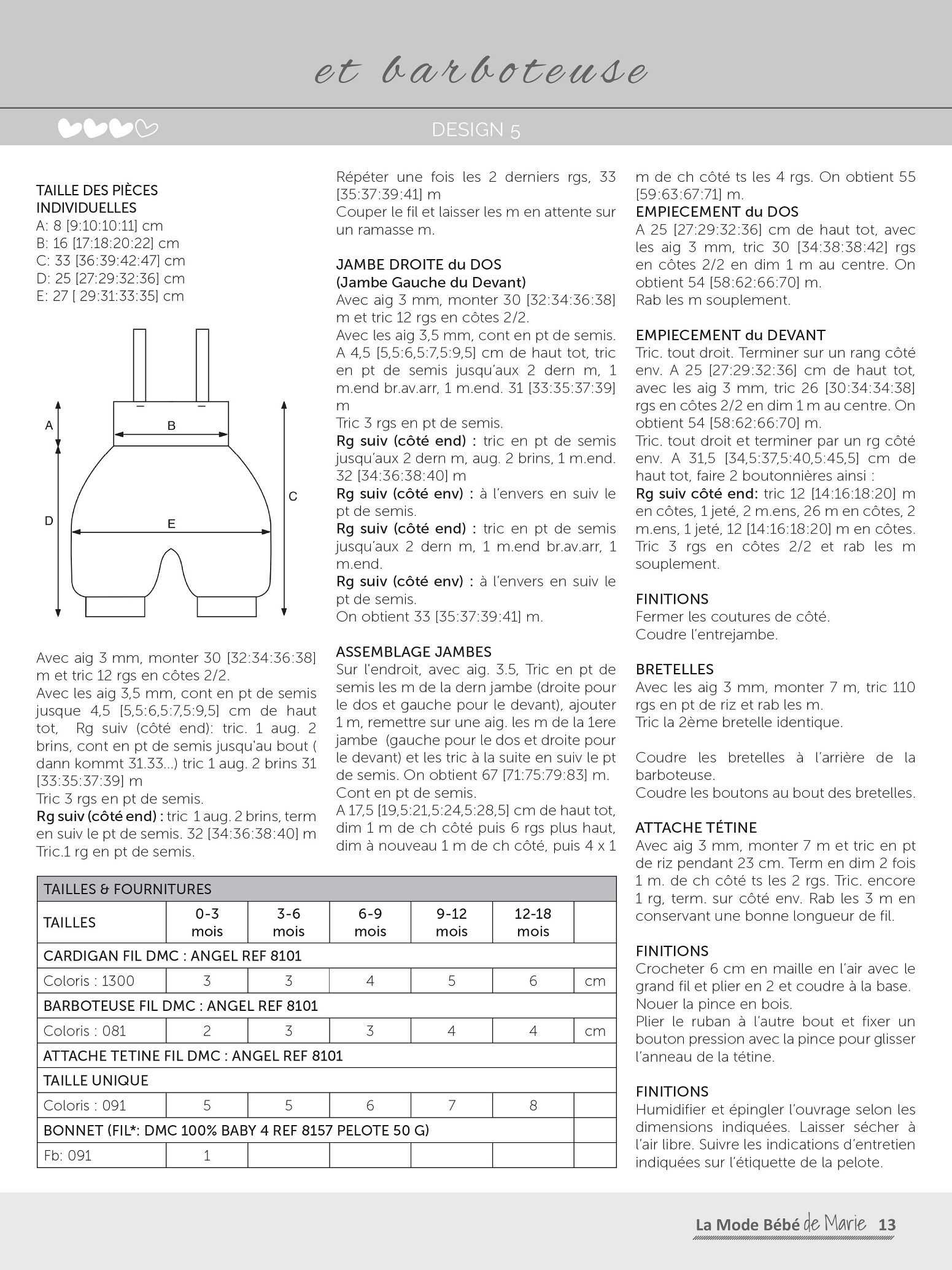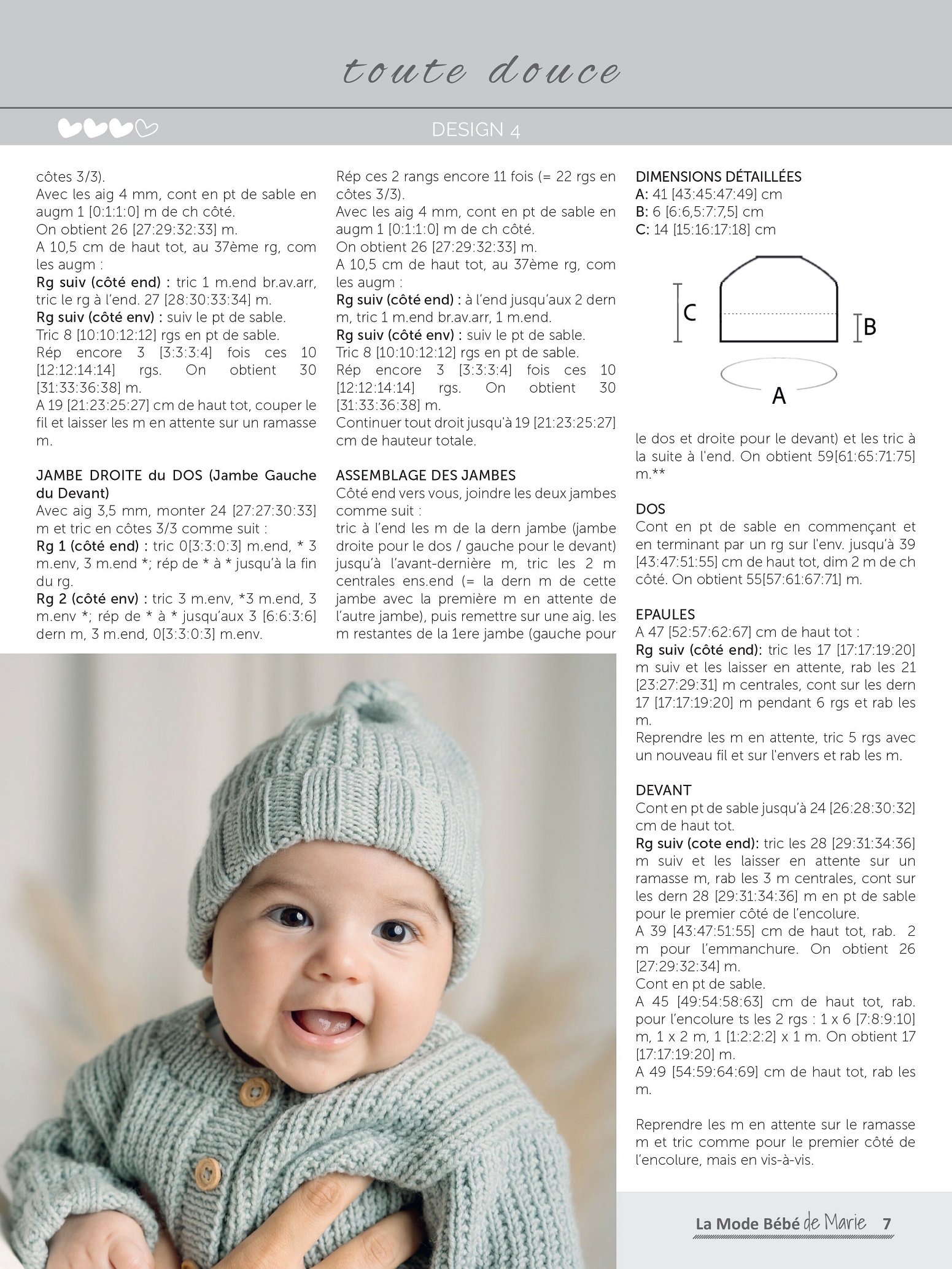 Популярный французский журнал по вязанию спицами и крючком. Любители вязания найдут в нем новую коллекцию детских изделий от рождения до 3 лет. Замечательные пинетки, носочки, кофточки, джемпера, костюмы, шапочки и боди. Все проекты сопровождаются инструкциями, качественными схемами и выкройками.