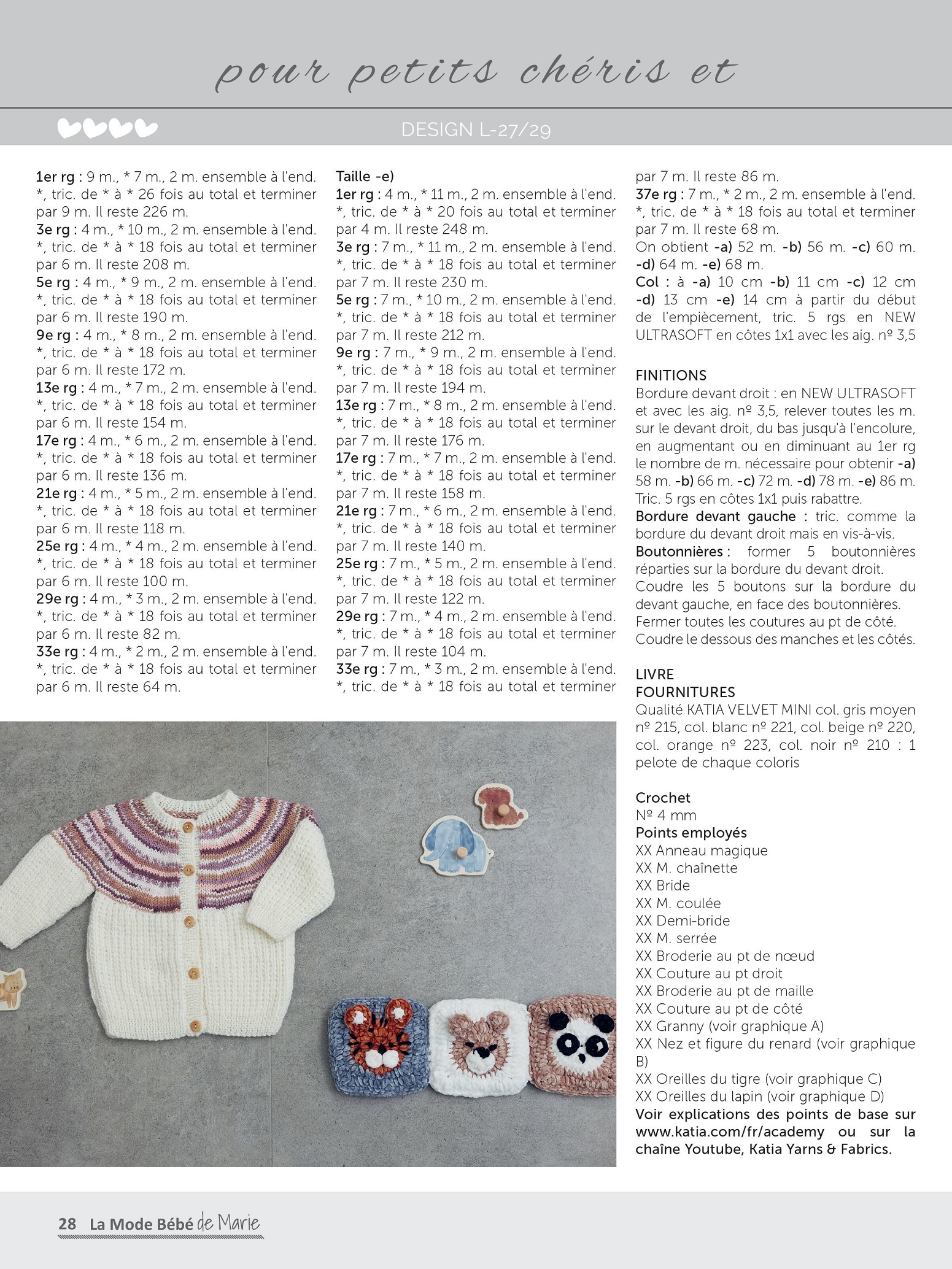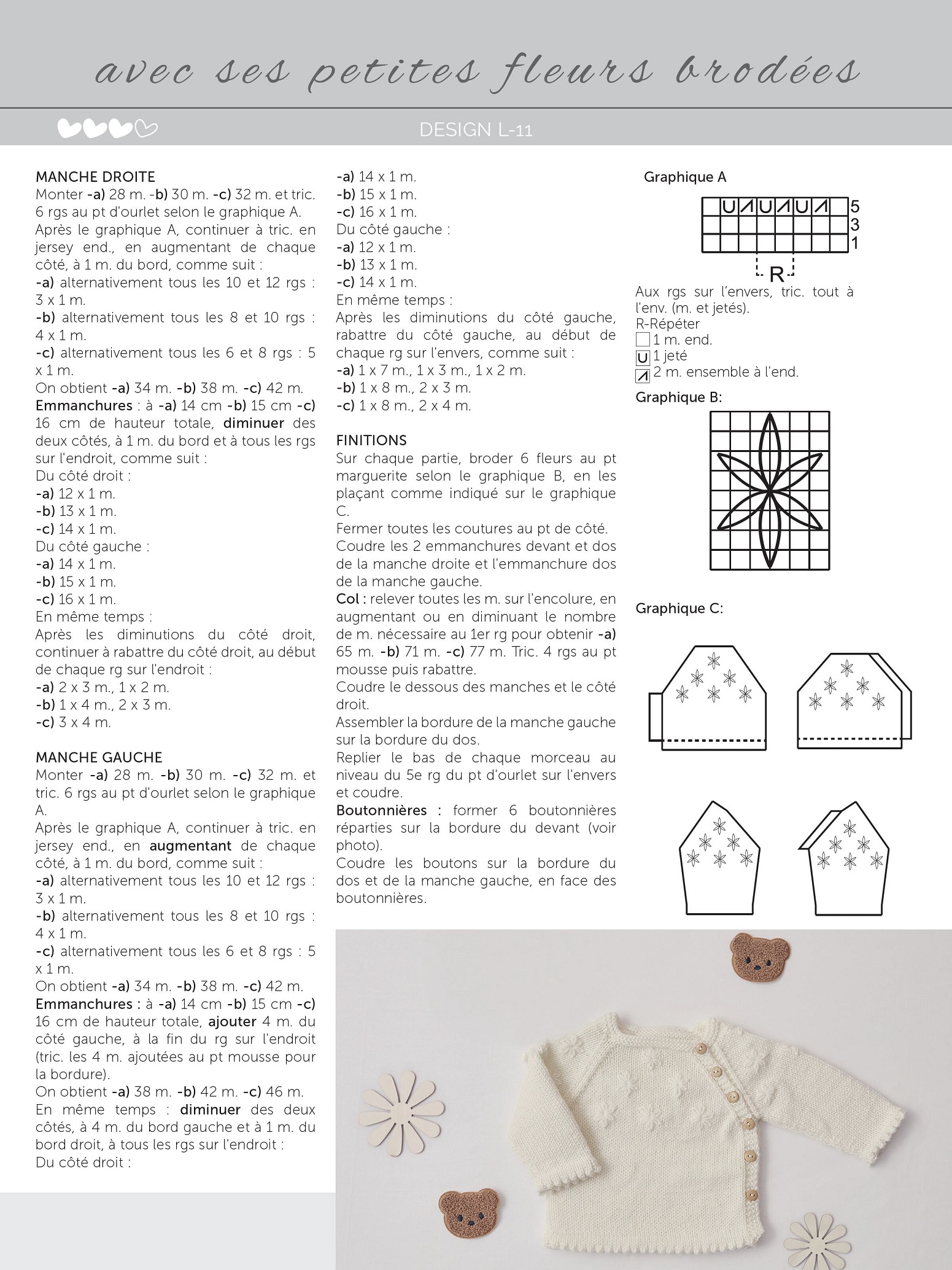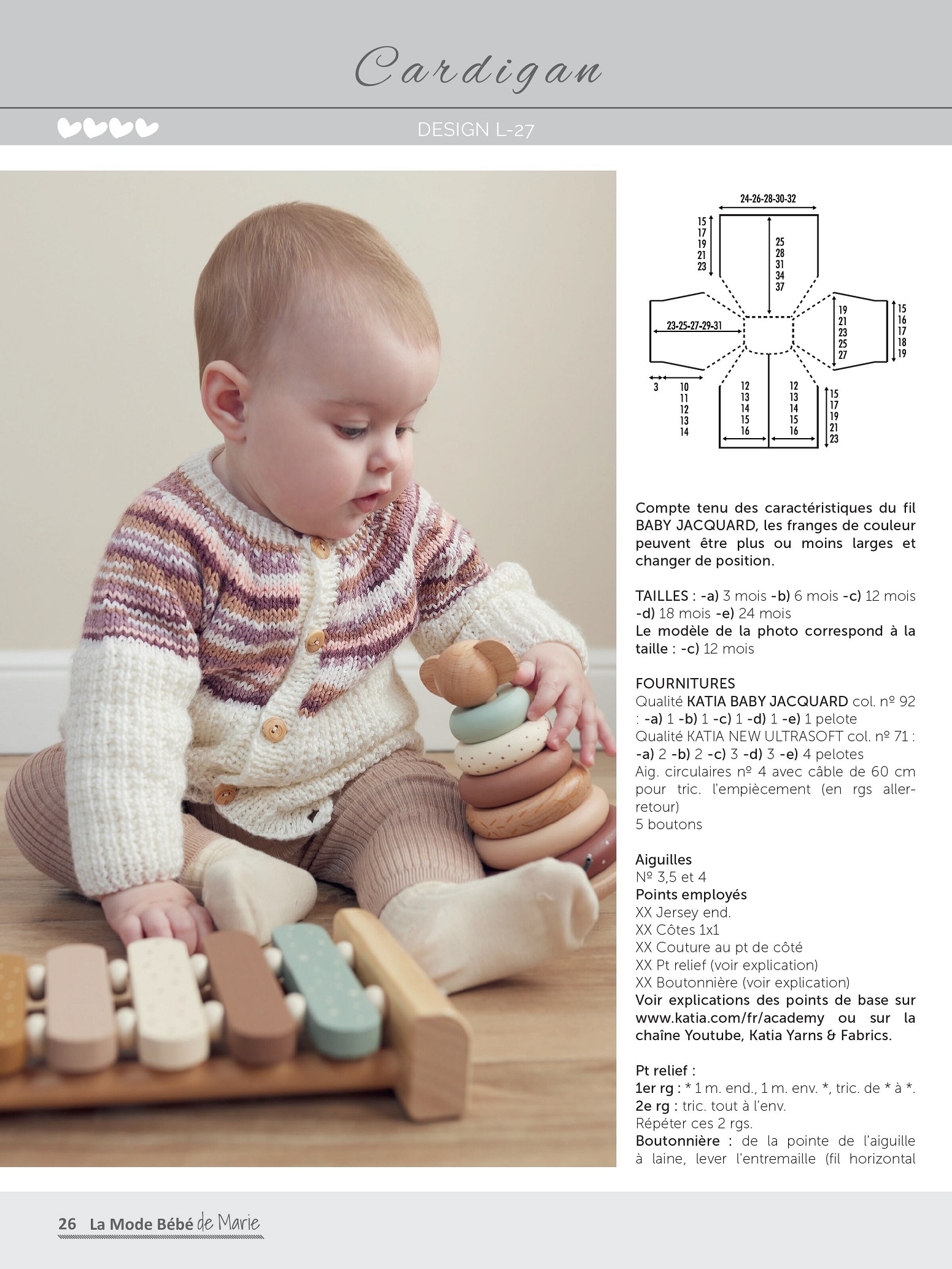 Популярный французский журнал по вязанию спицами и крючком. Любители вязания найдут в нем новую коллекцию детских изделий от рождения до 3 лет. Замечательные пинетки, носочки, кофточки, джемпера, костюмы, шапочки и боди. Все проекты сопровождаются инструкциями, качественными схемами и выкройками.