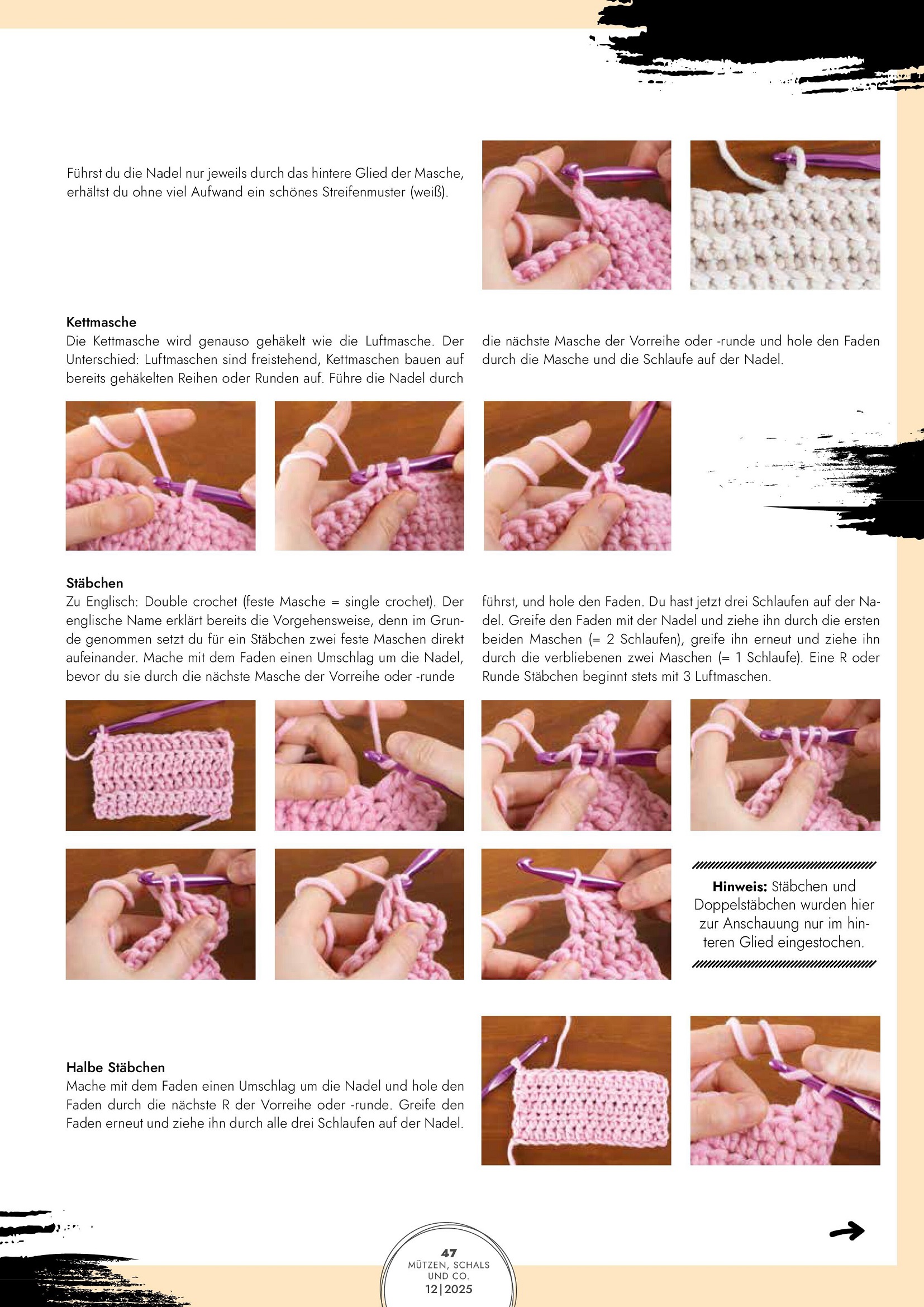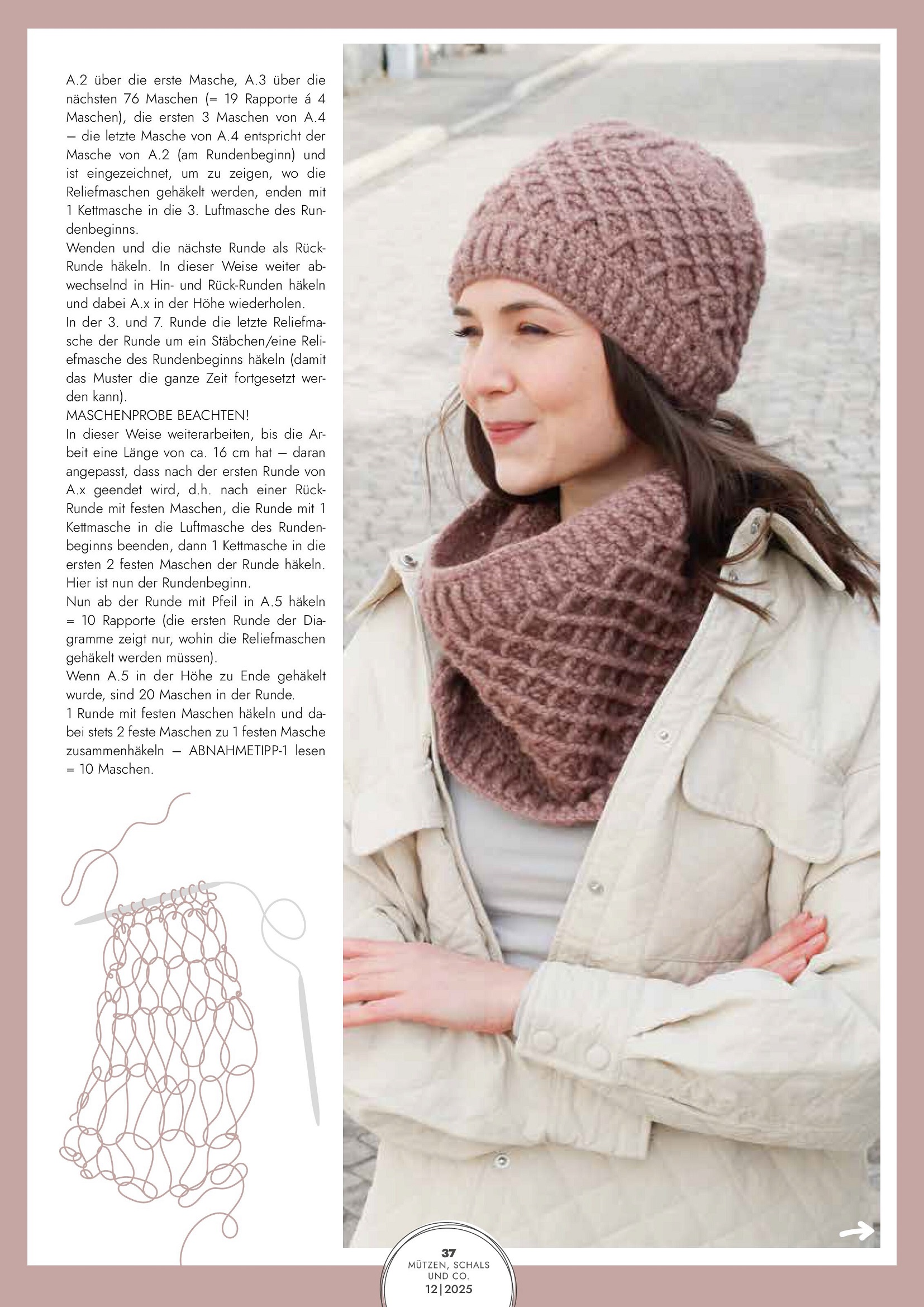 Вязаные проекты крючком в журнале «Mutzen, Schals & Co. - Dezember 2025»