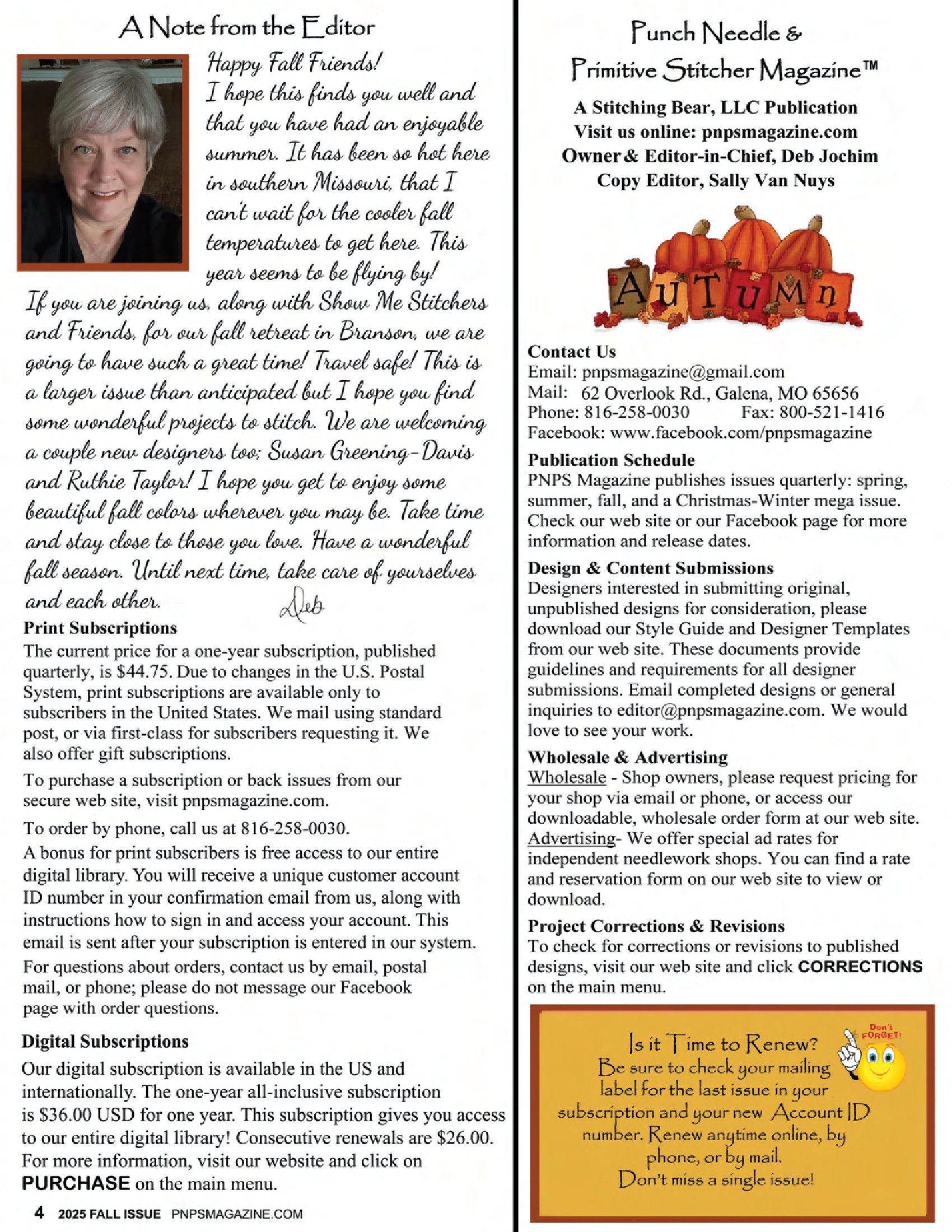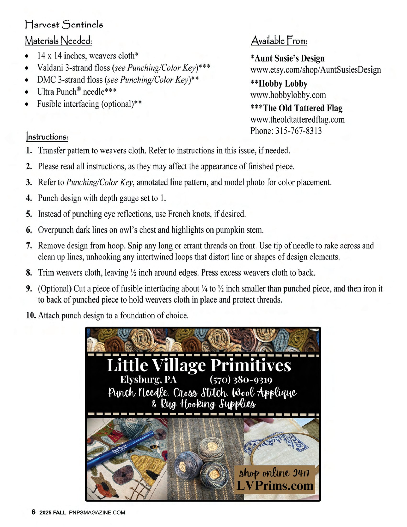 Коллекция вышивки в журнале «Punch Needle & Primitive Stitcher – Fall 2025»