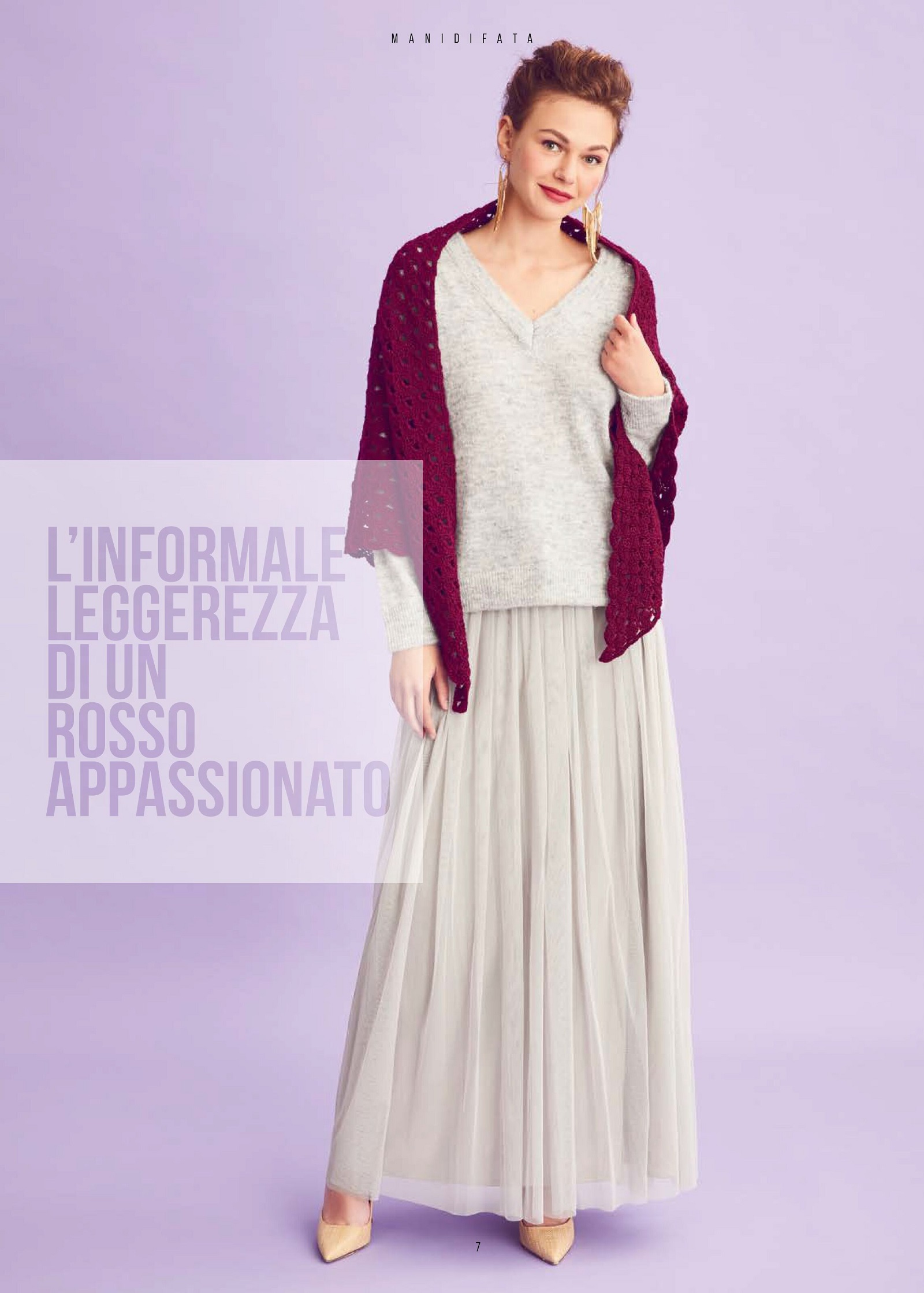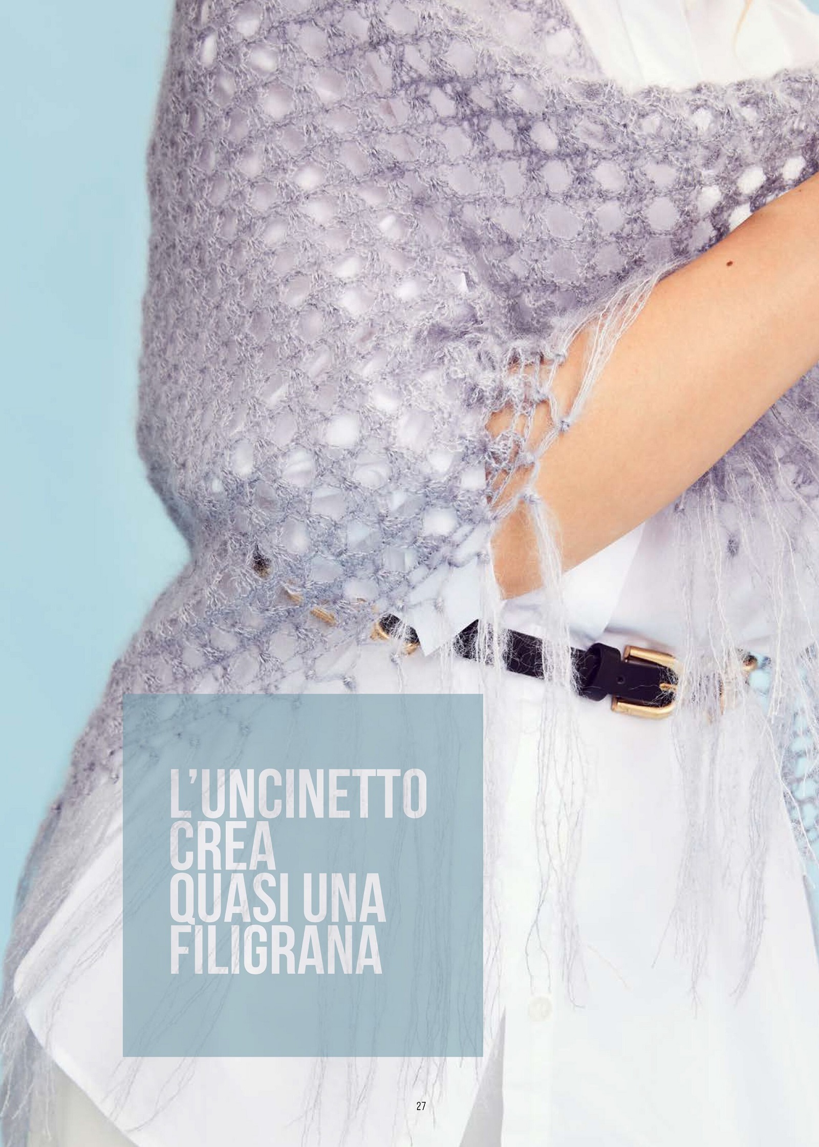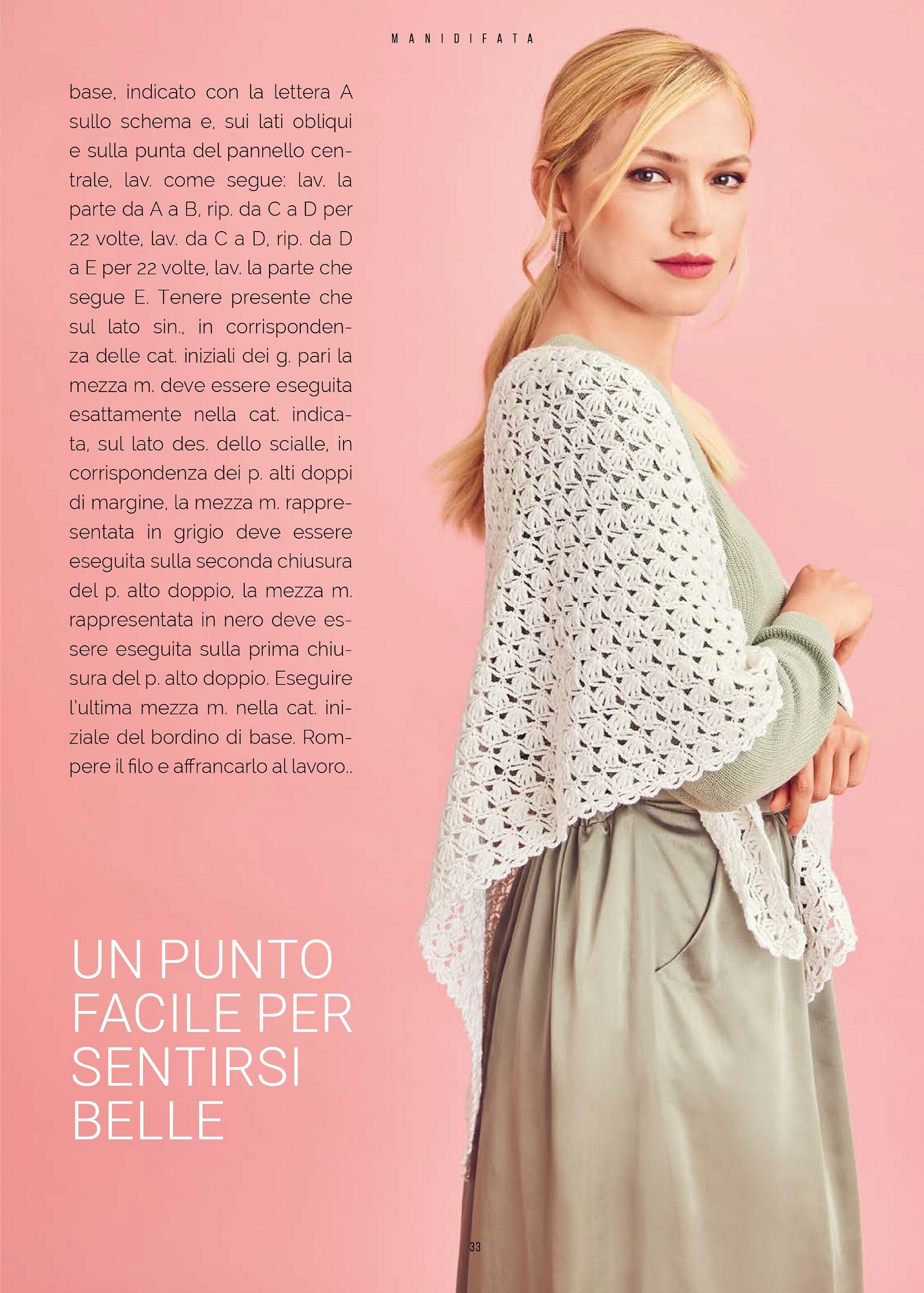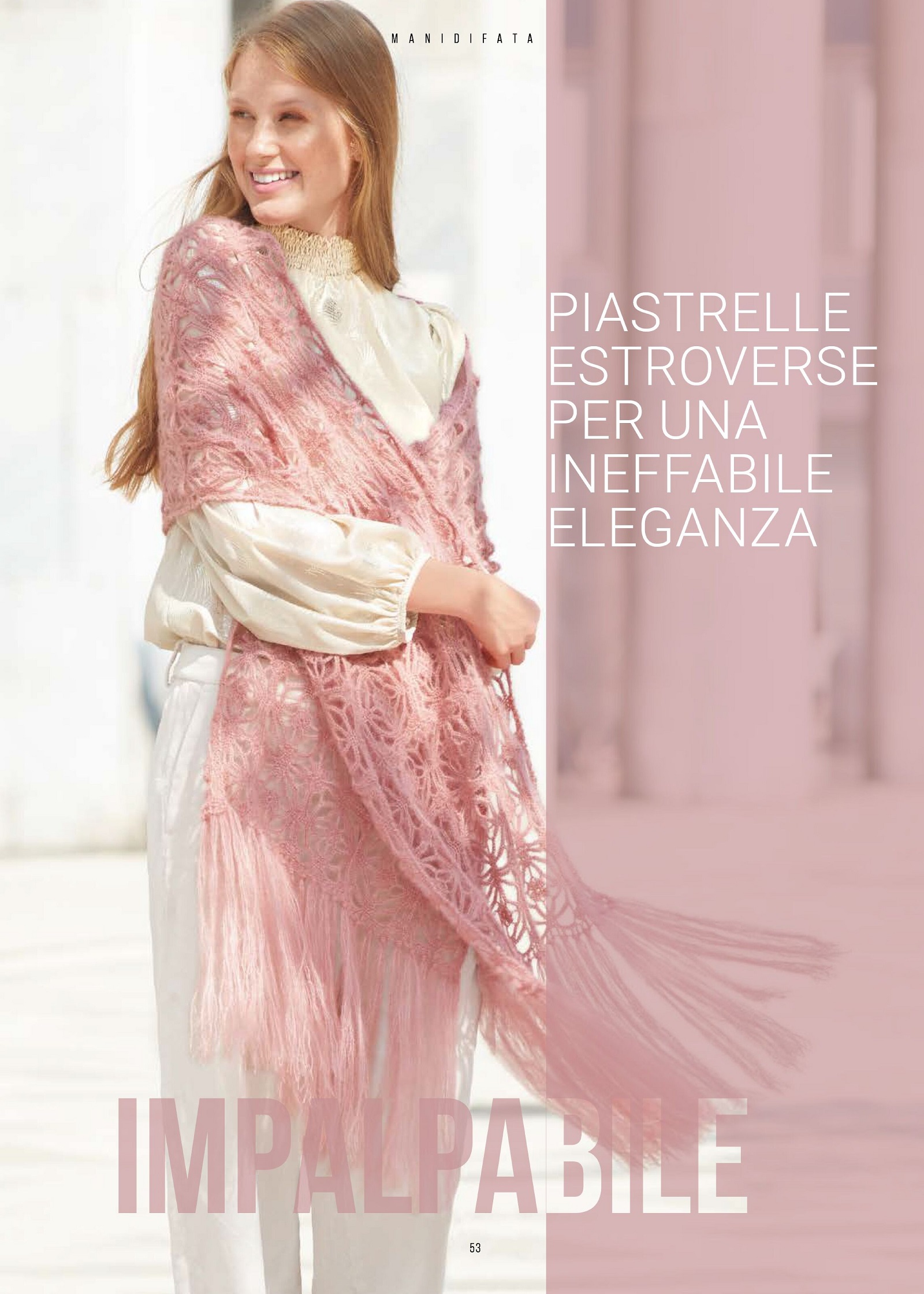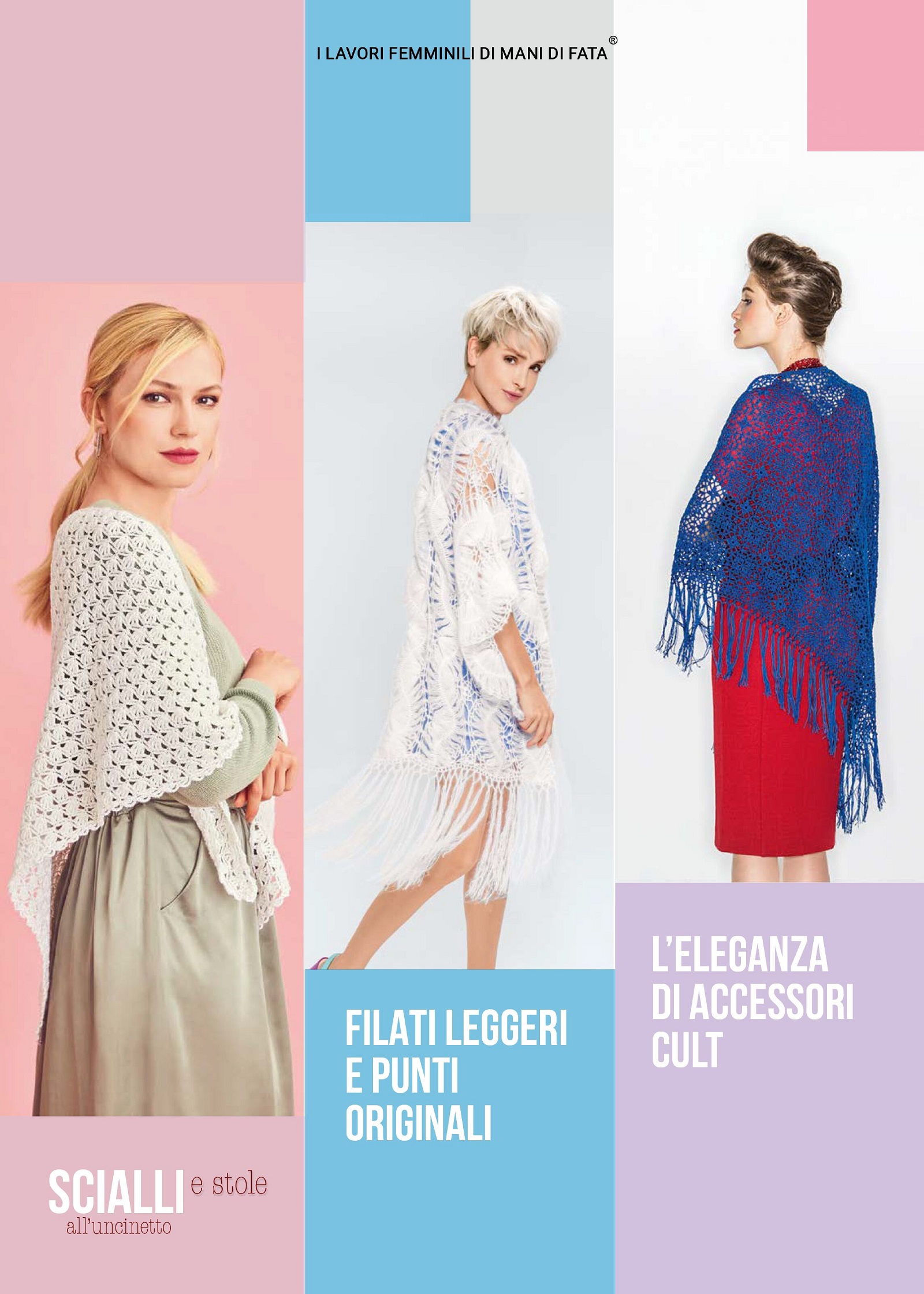 Приложение к журналу Mani di Fata - Speciale Scialli, предлагает 11 моделей шалей, связанных крючком, которые придутся по вкусу самым избирательным любителям новинок в мире моды. Прилагаются инструкции, схемы и описания ко всем проектам.
