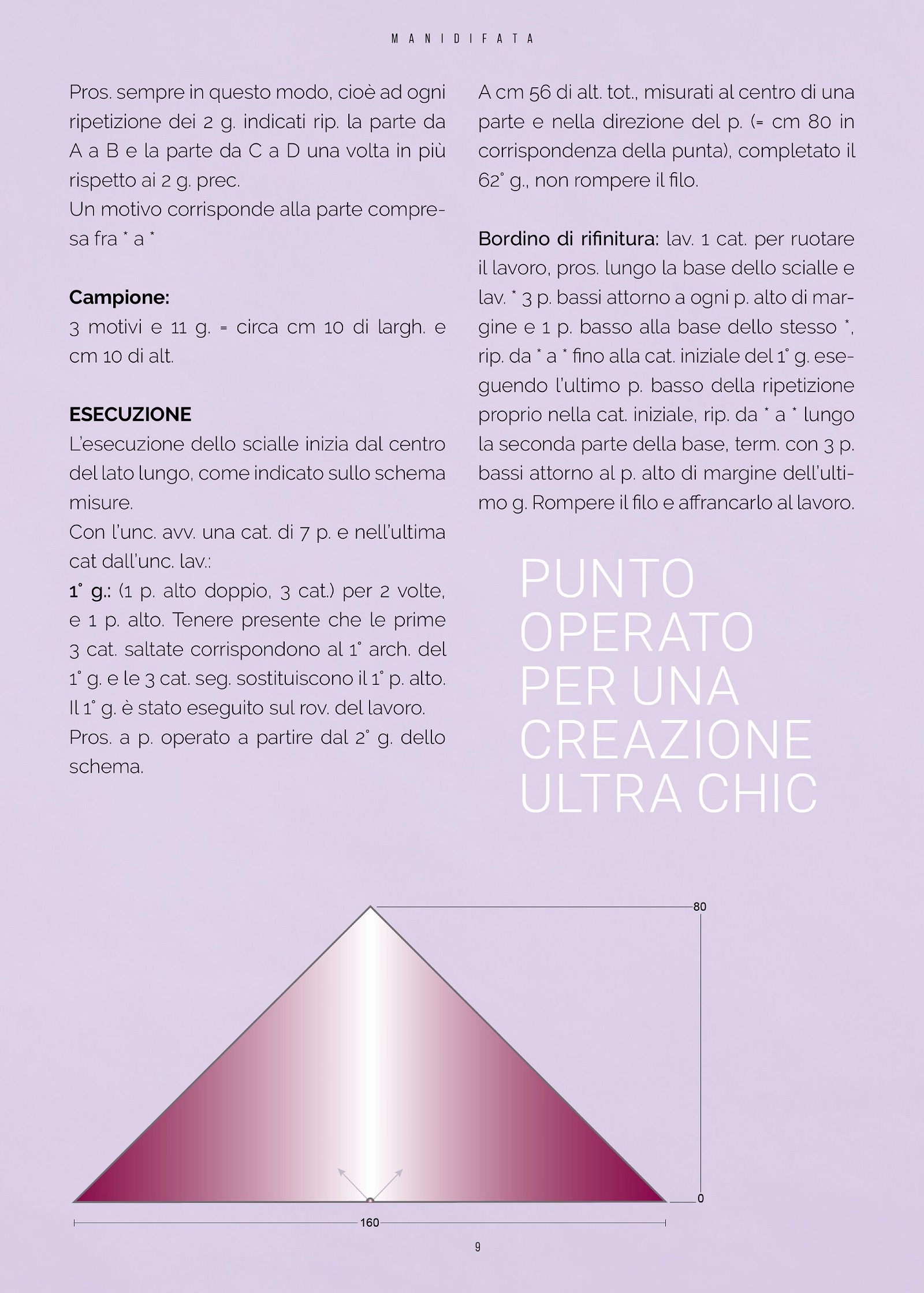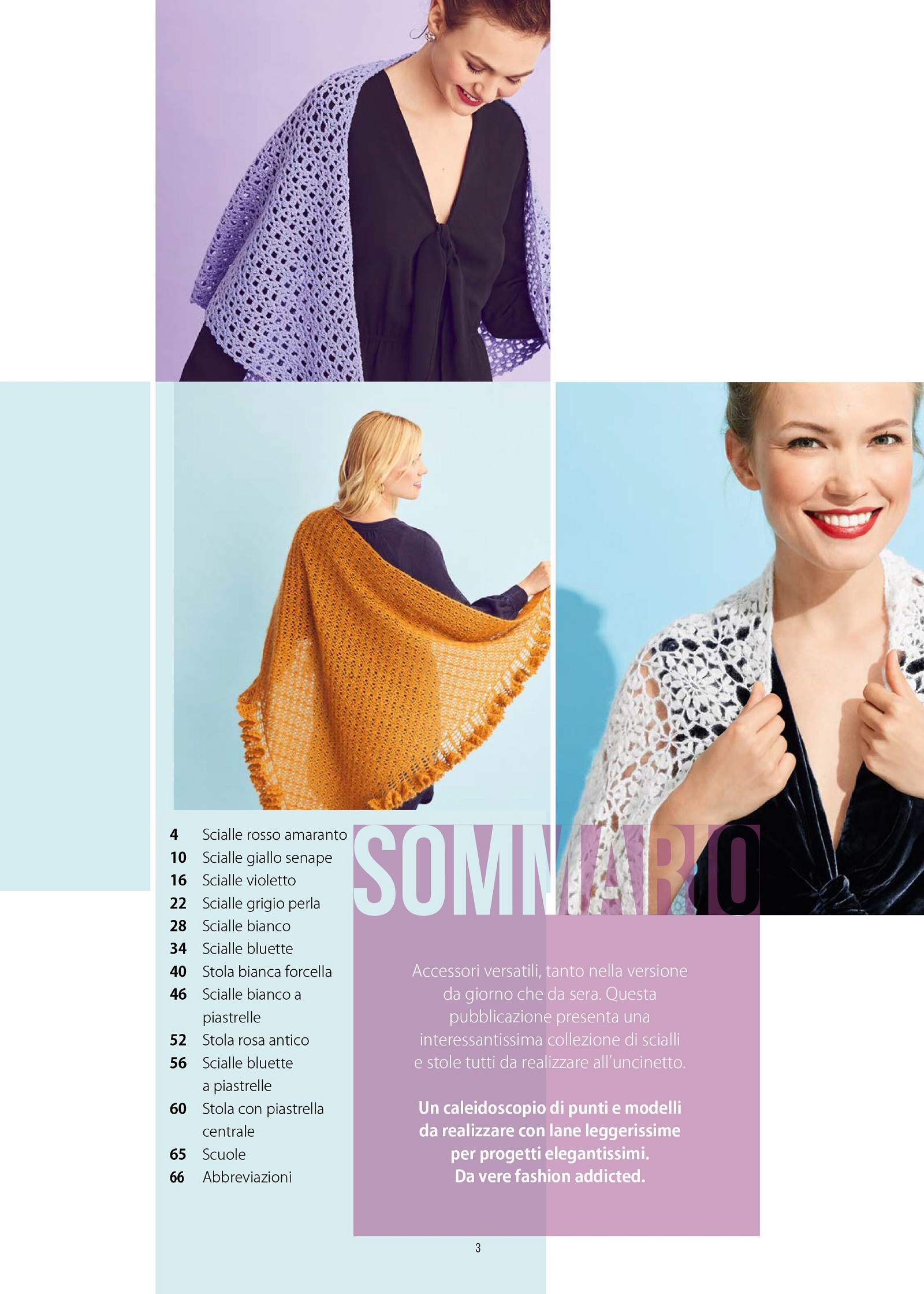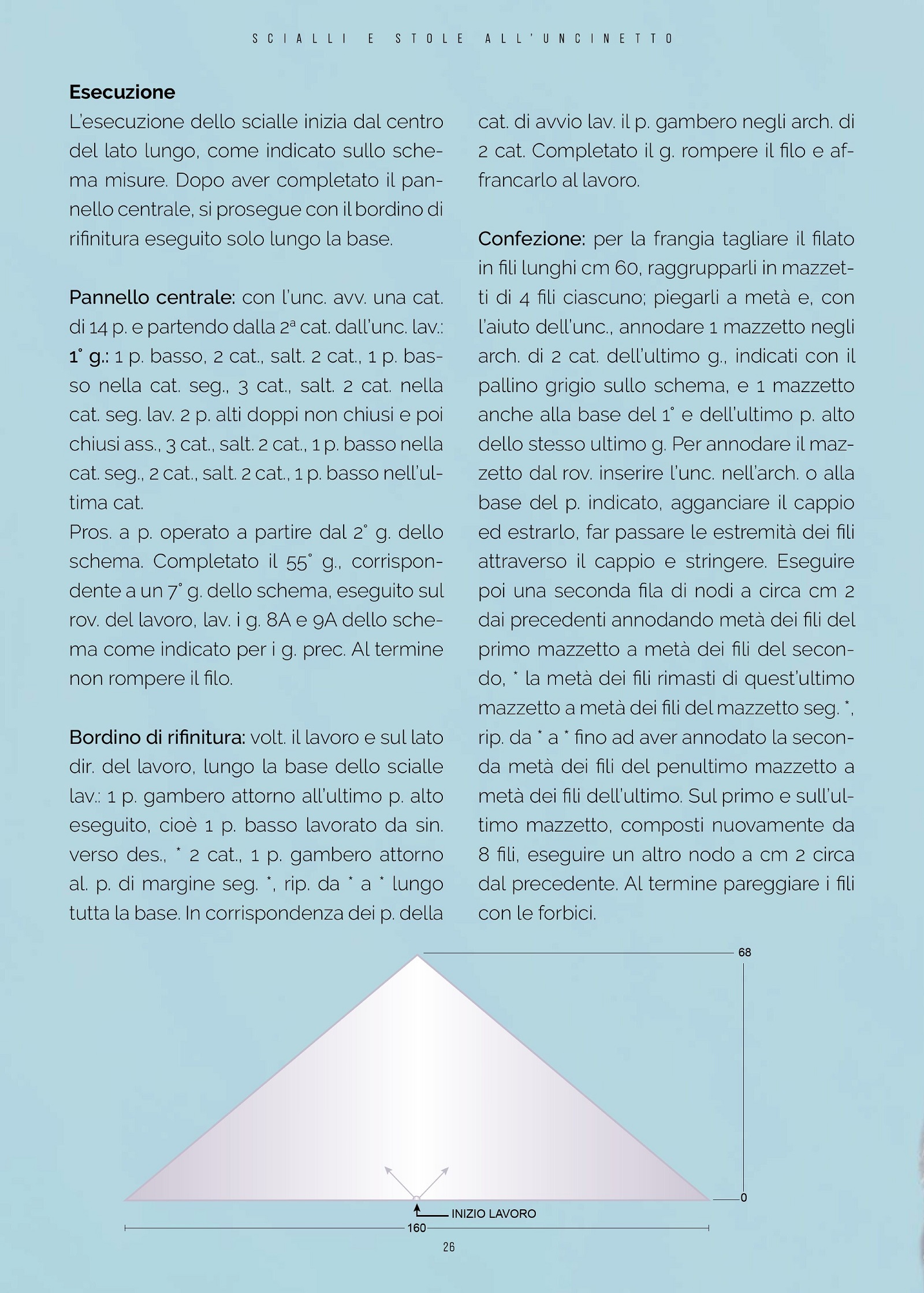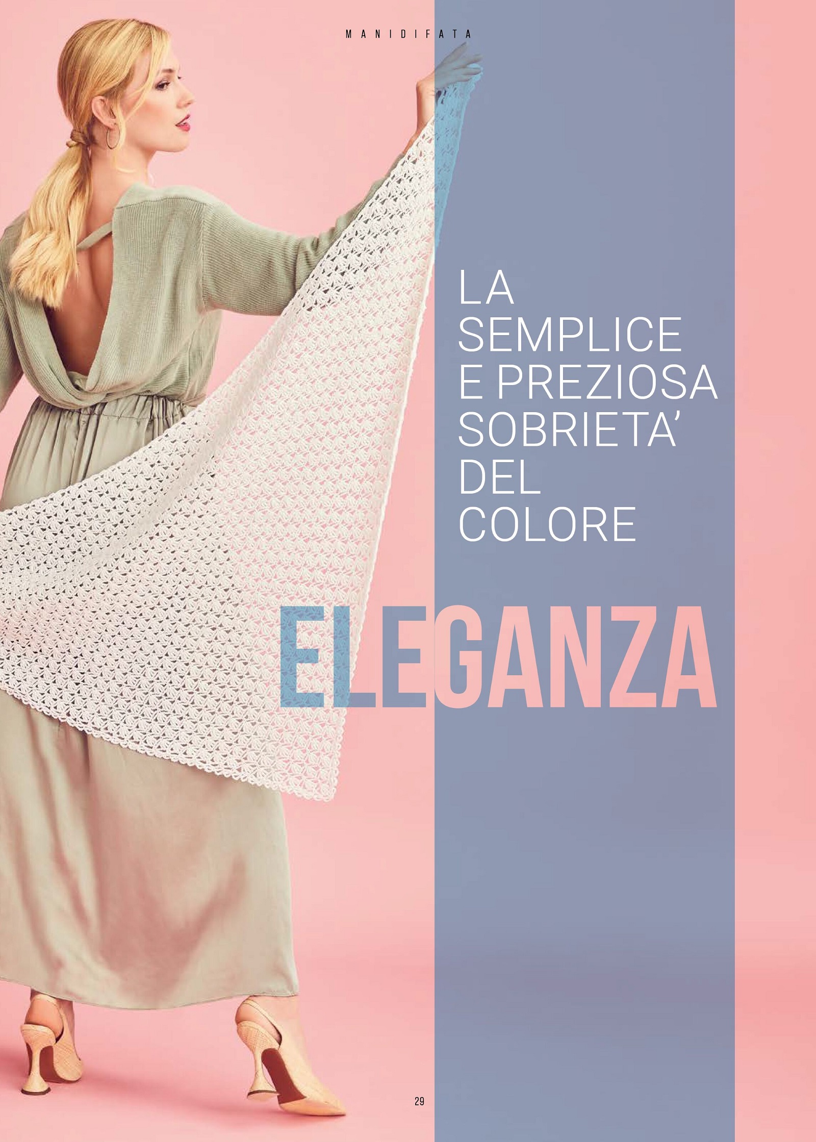 Приложение к журналу Mani di Fata - Speciale Scialli, предлагает 11 моделей шалей, связанных крючком, которые придутся по вкусу самым избирательным любителям новинок в мире моды. Прилагаются инструкции, схемы и описания ко всем проектам.