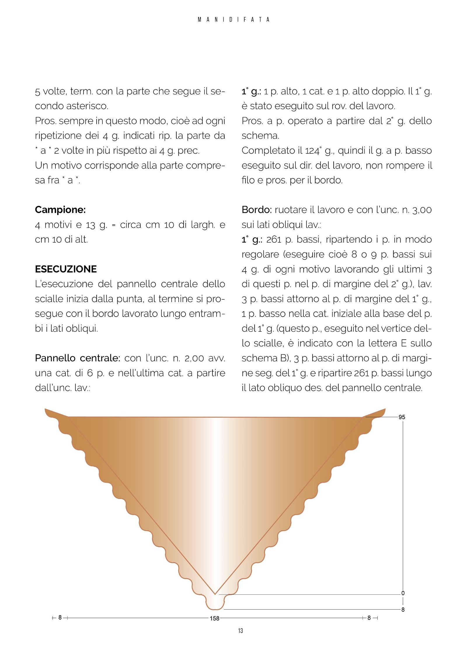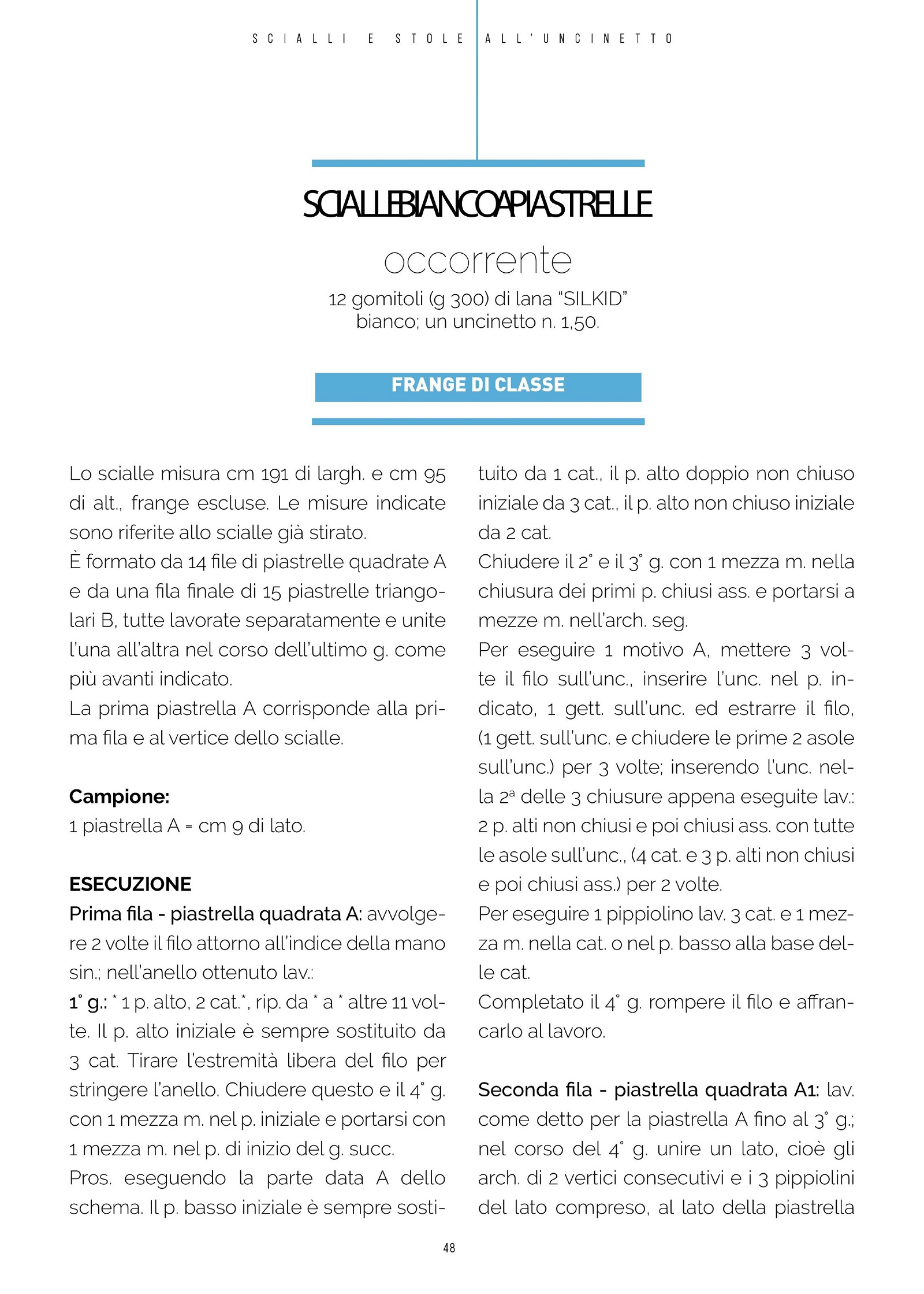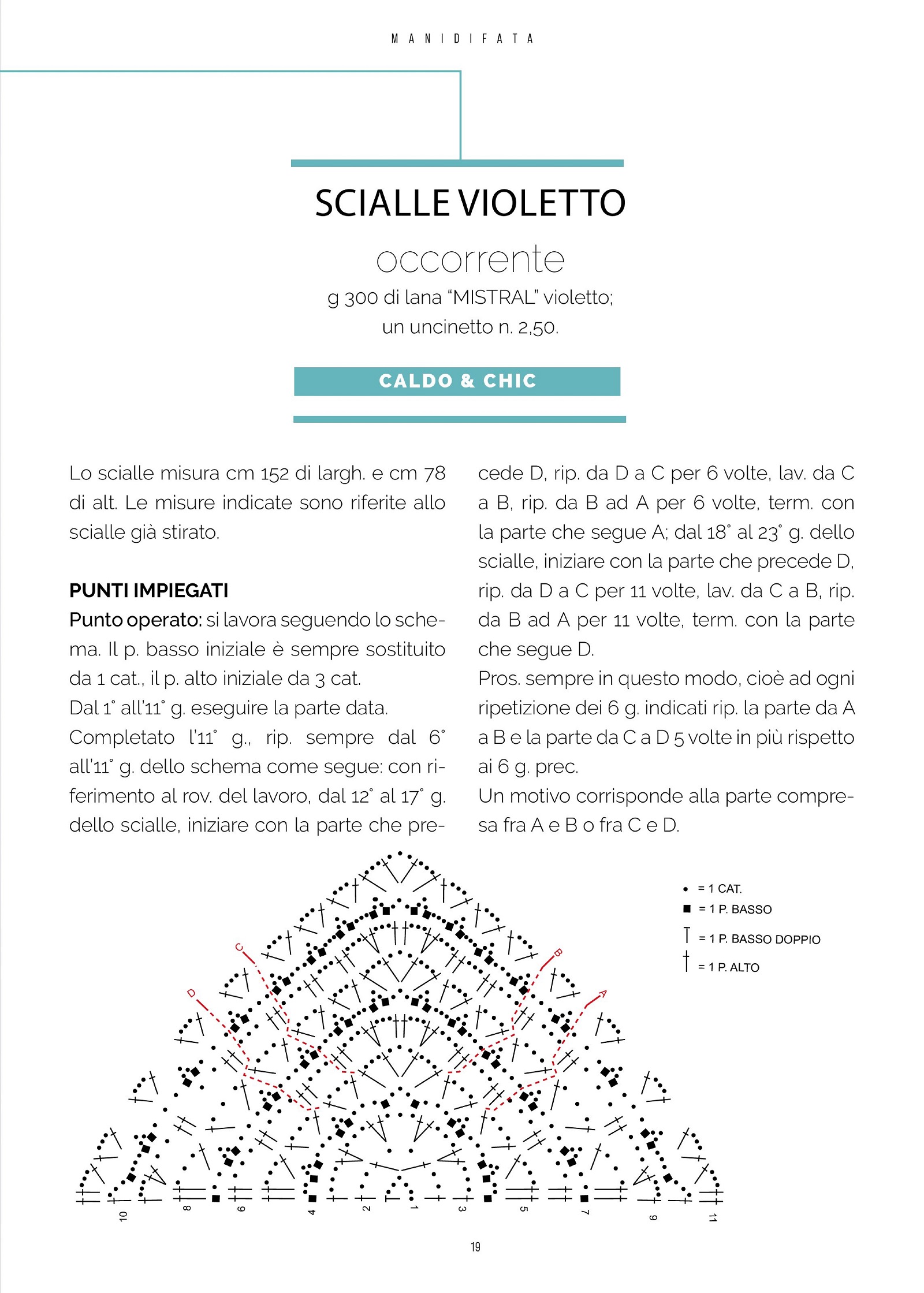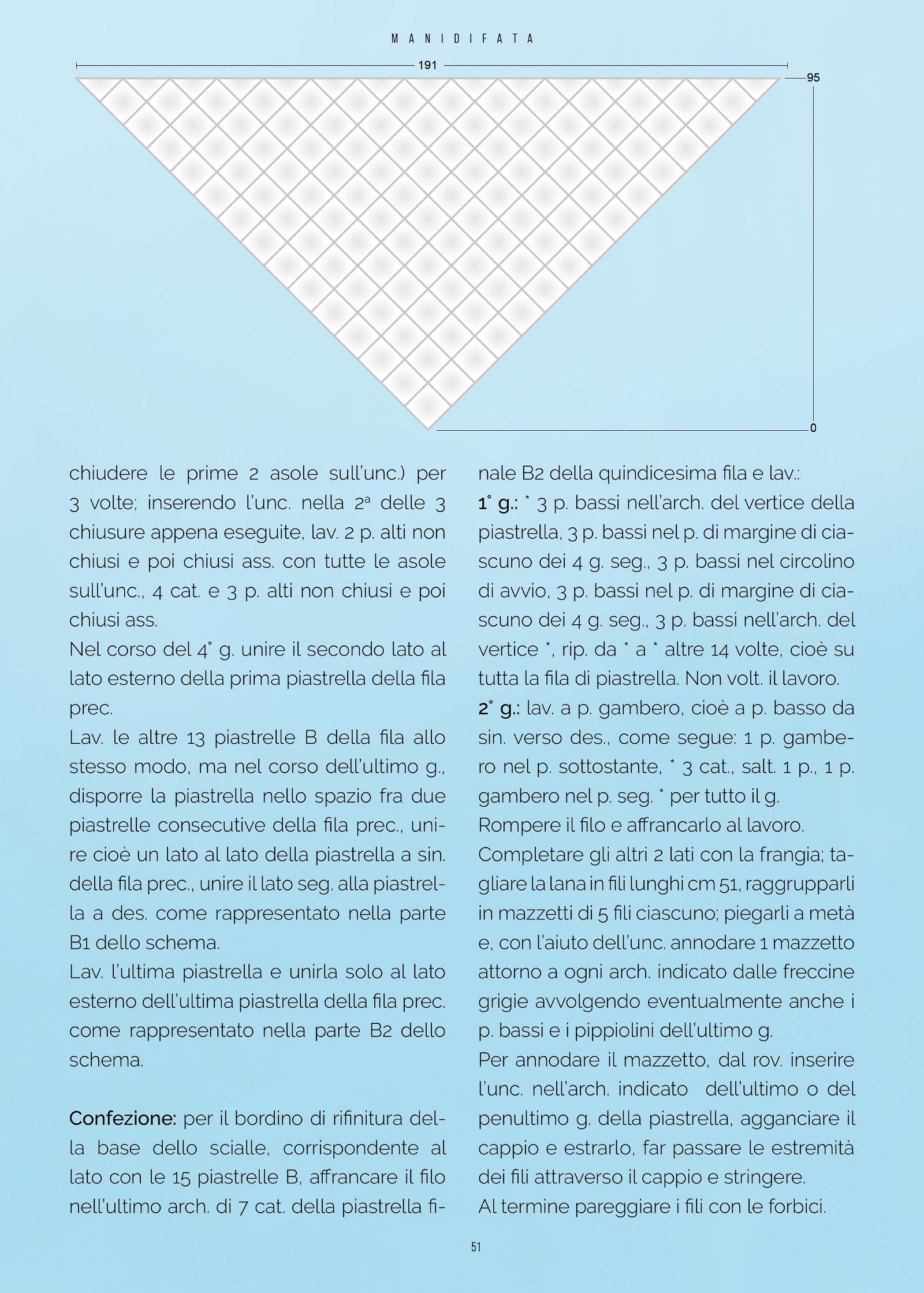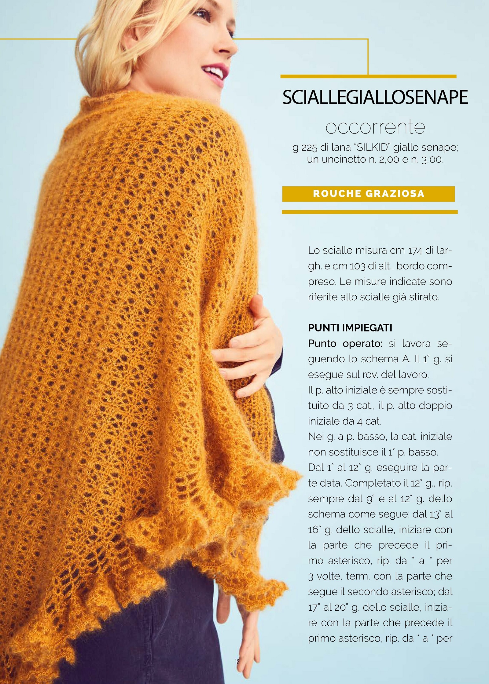 Приложение к журналу Mani di Fata - Speciale Scialli, предлагает 11 моделей шалей, связанных крючком, которые придутся по вкусу самым избирательным любителям новинок в мире моды. Прилагаются инструкции, схемы и описания ко всем проектам.