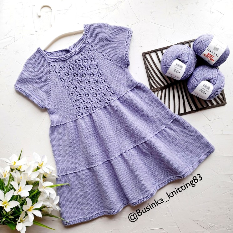 Низ подола провяжем 5рядов платочной вязкой. Закрываем петли обычным способом.