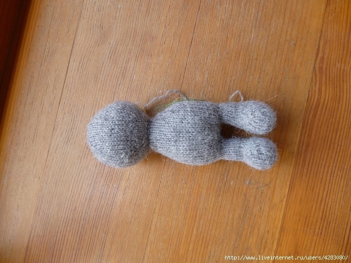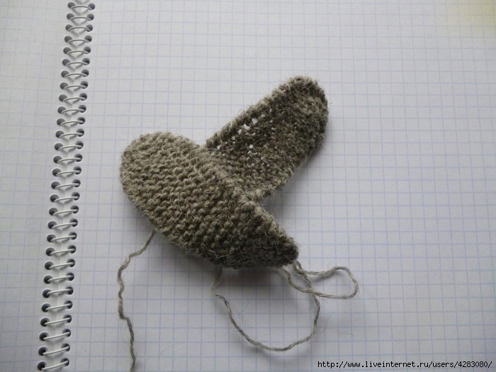Зашить дырочку между ножек. Набить ножки. Дальше по ходу вязания набивать туловище.