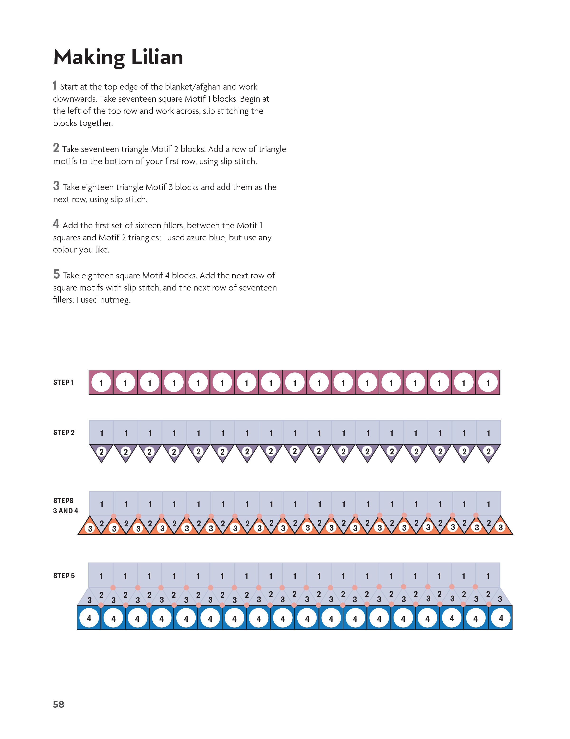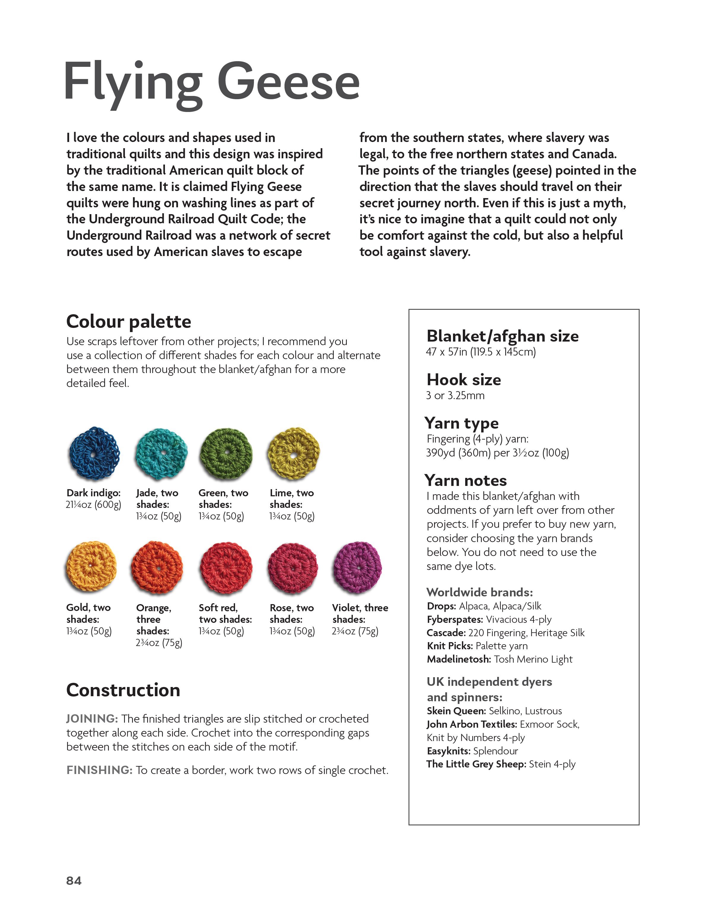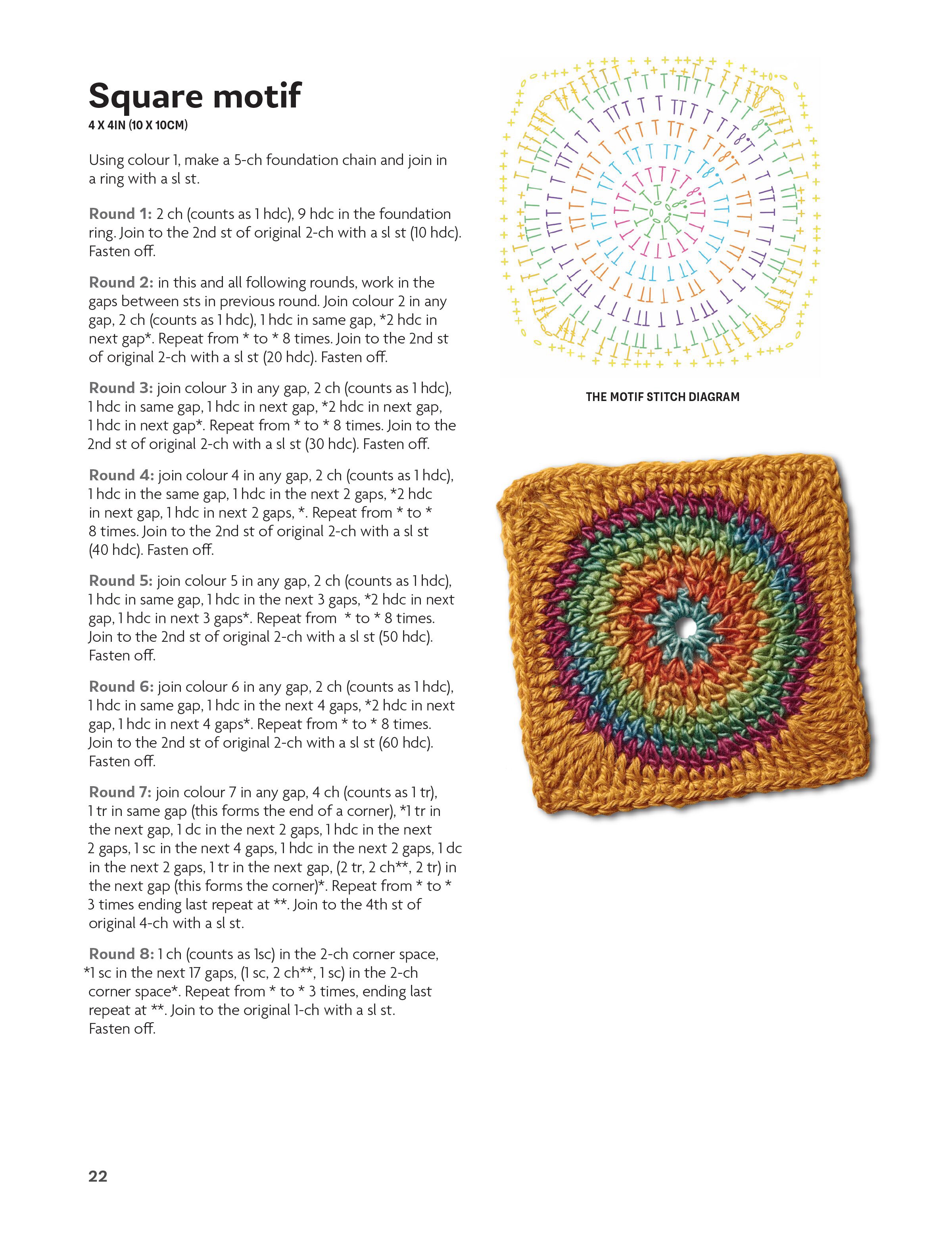 Эта красочная книга содержит иллюстрированные поблочные руководства по созданию десяти потрясающих пледов, а цветовые вариации позволяют создать ещё двадцать вариантов. Каждое из десяти пледов состоит из ряда простых мотивов, включая квадраты, шестиугольники и треугольники.