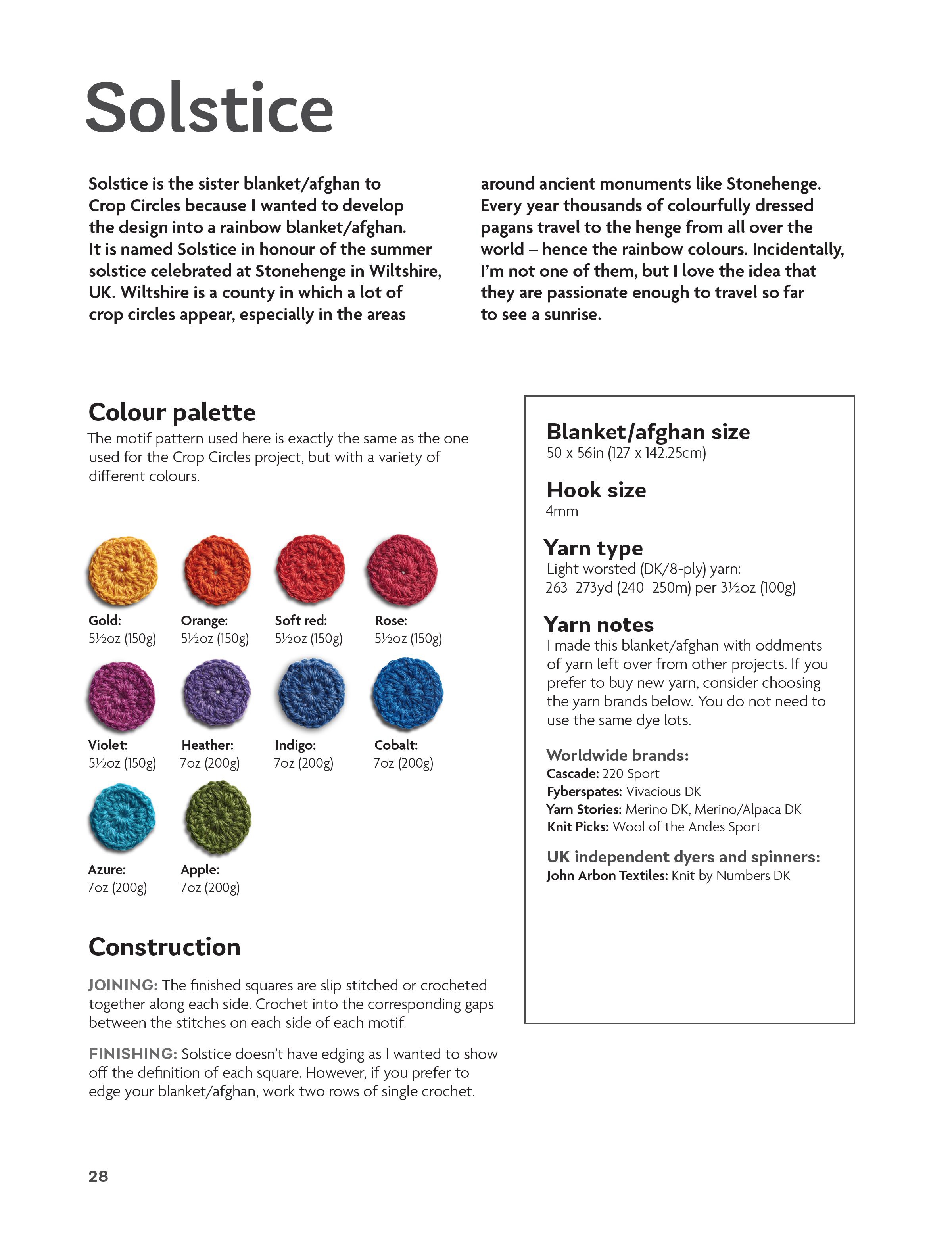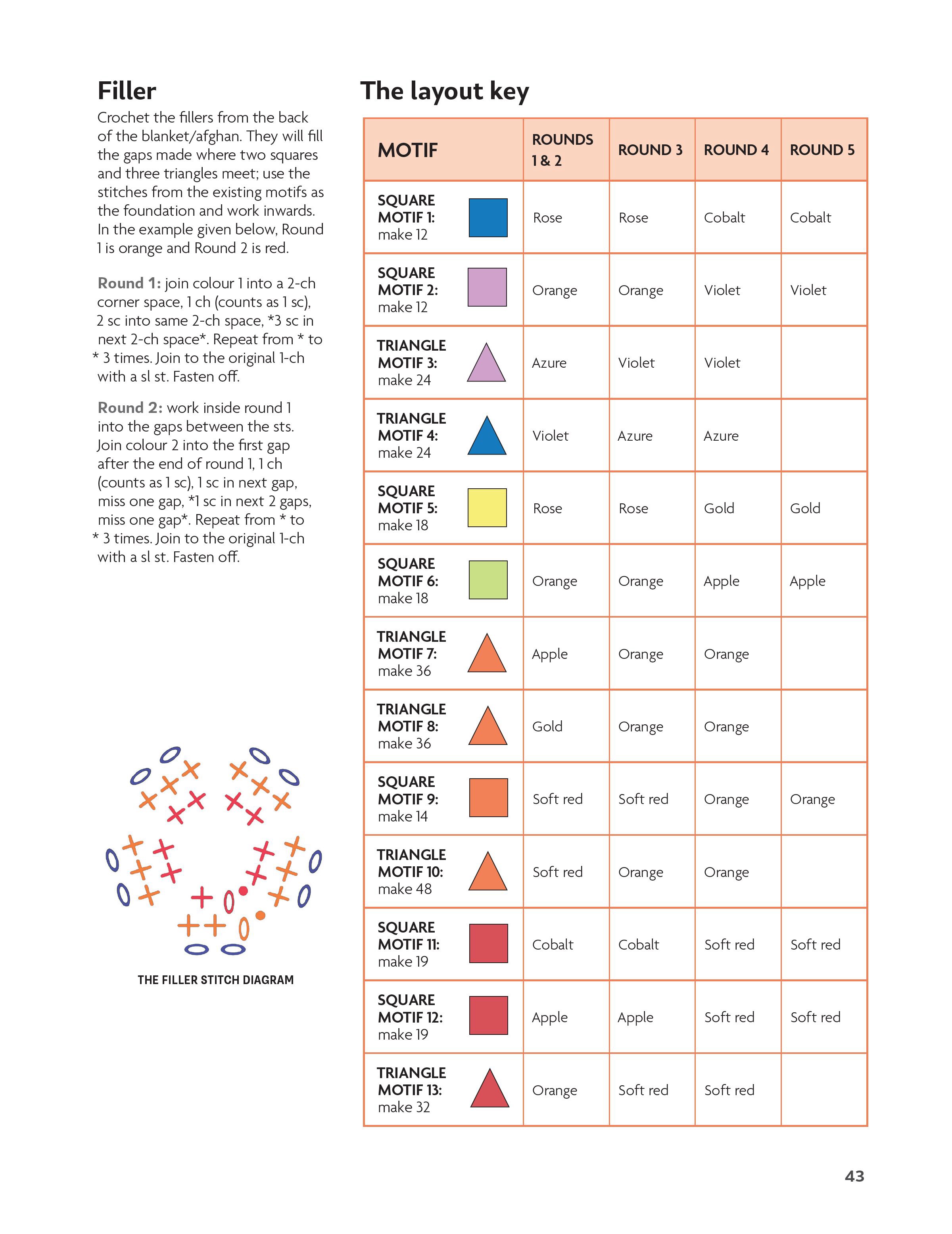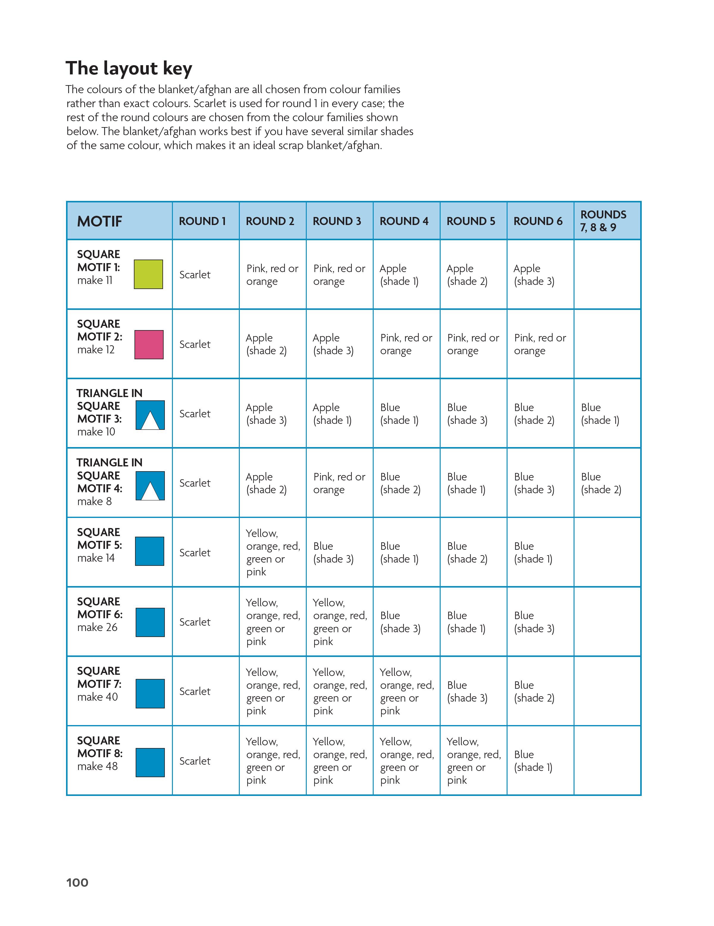 Эта красочная книга содержит иллюстрированные поблочные руководства по созданию десяти потрясающих пледов, а цветовые вариации позволяют создать ещё двадцать вариантов. Каждое из десяти пледов состоит из ряда простых мотивов, включая квадраты, шестиугольники и треугольники.