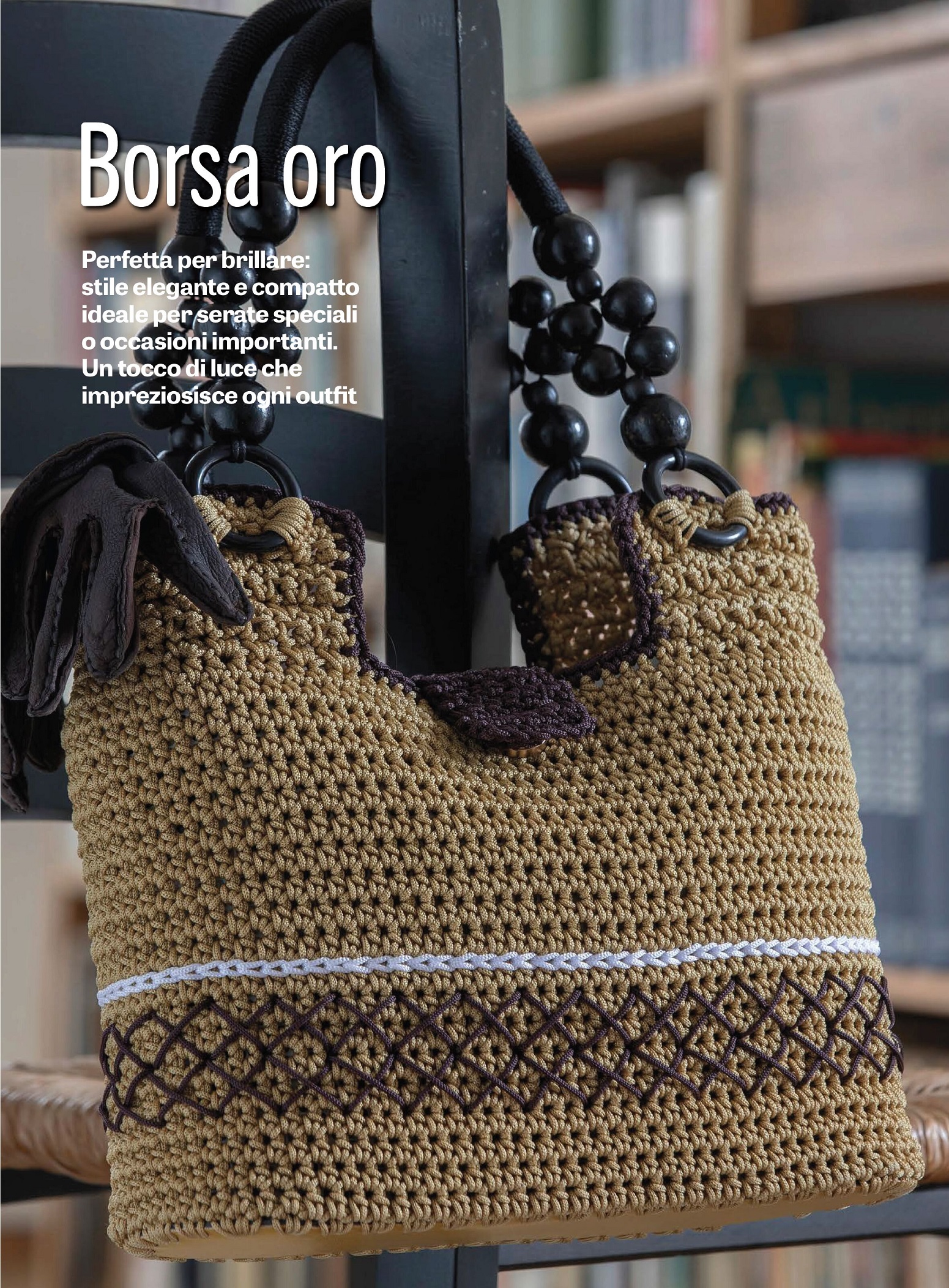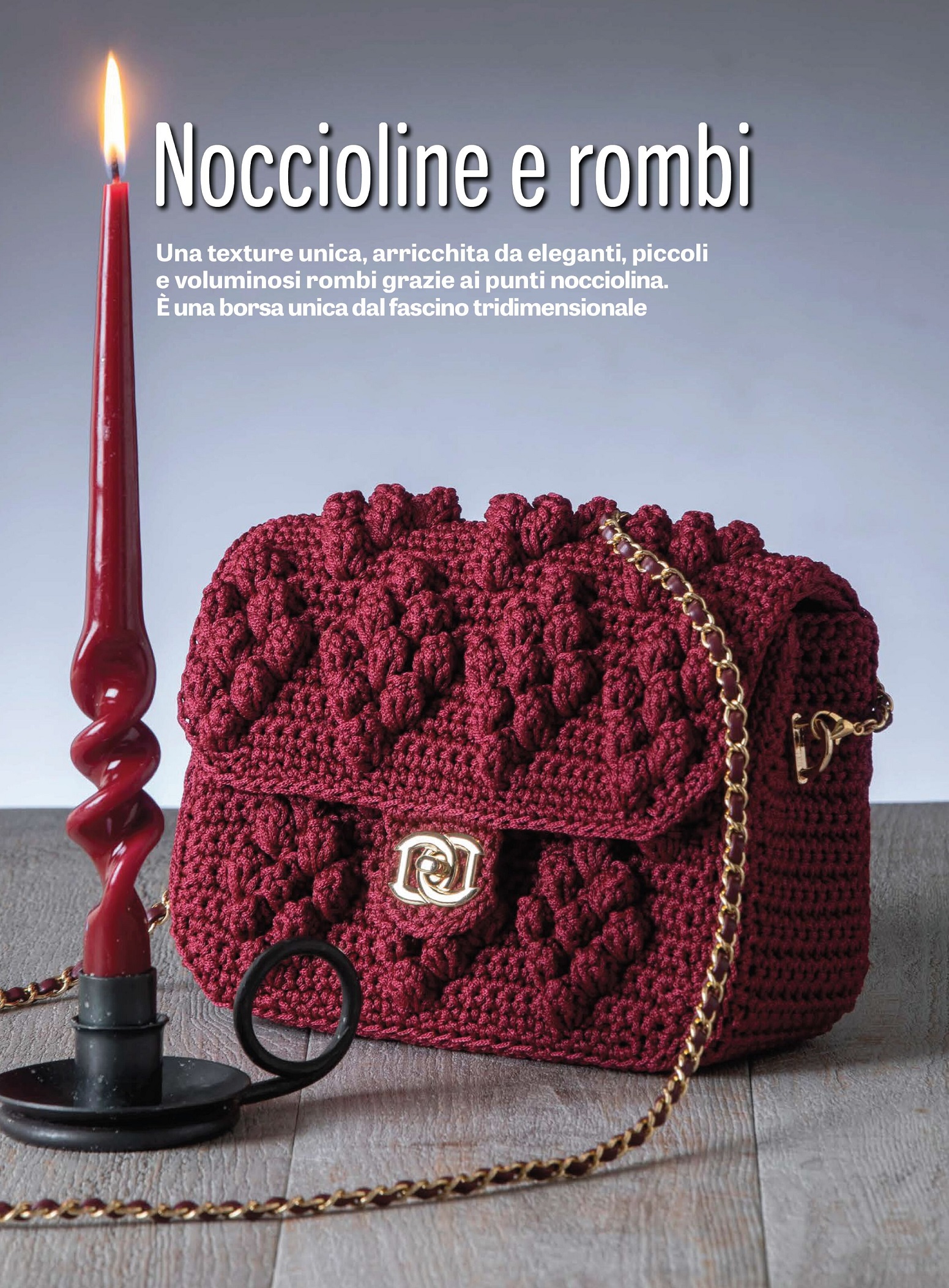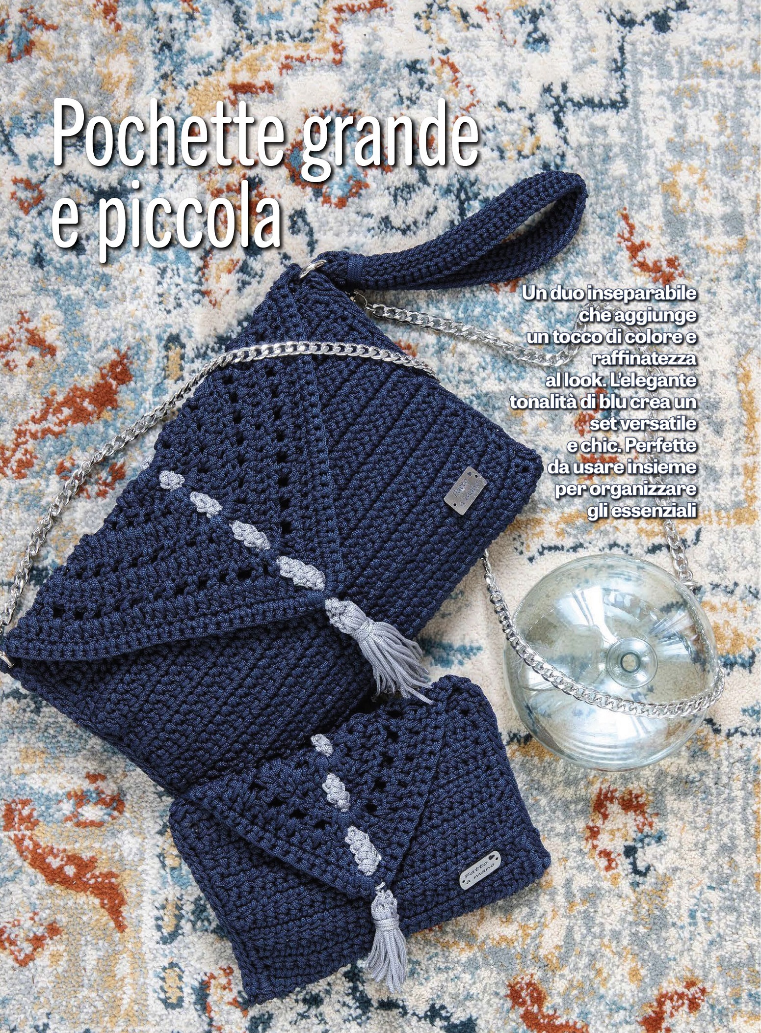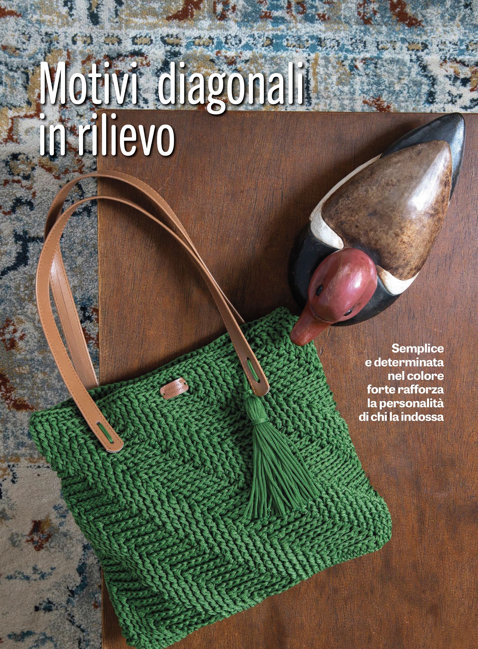 Итальянский журнал по вязанию крючком. В этом выпуске представлена красочная подборка универсальных сумок, связанных крючком. Для любого образа и любого технического уровня найдется подходящая сумка с инструкциями
