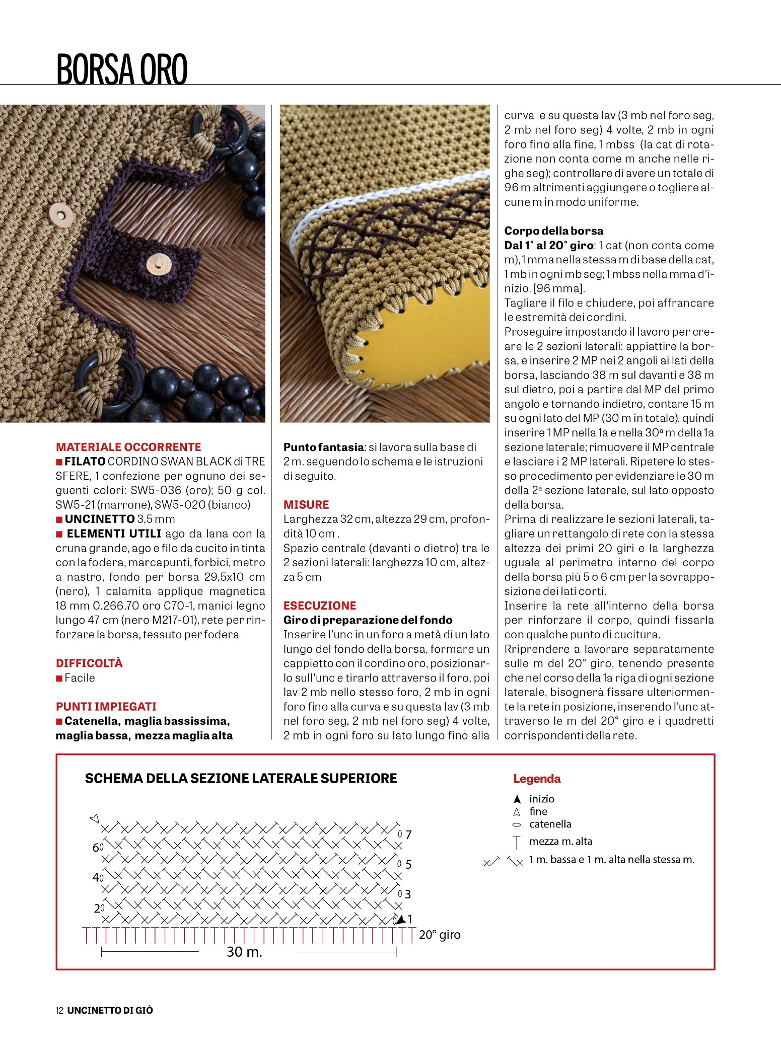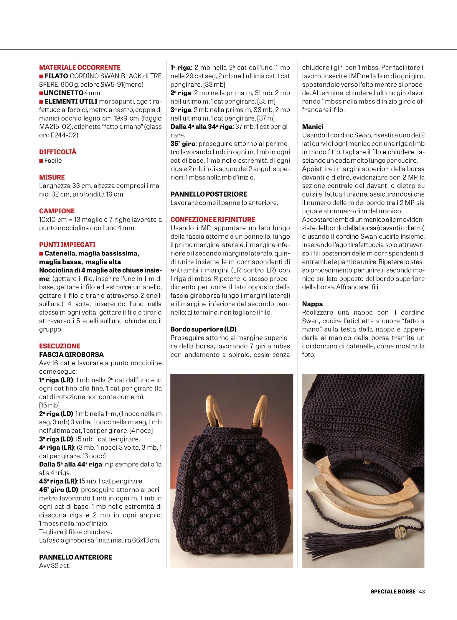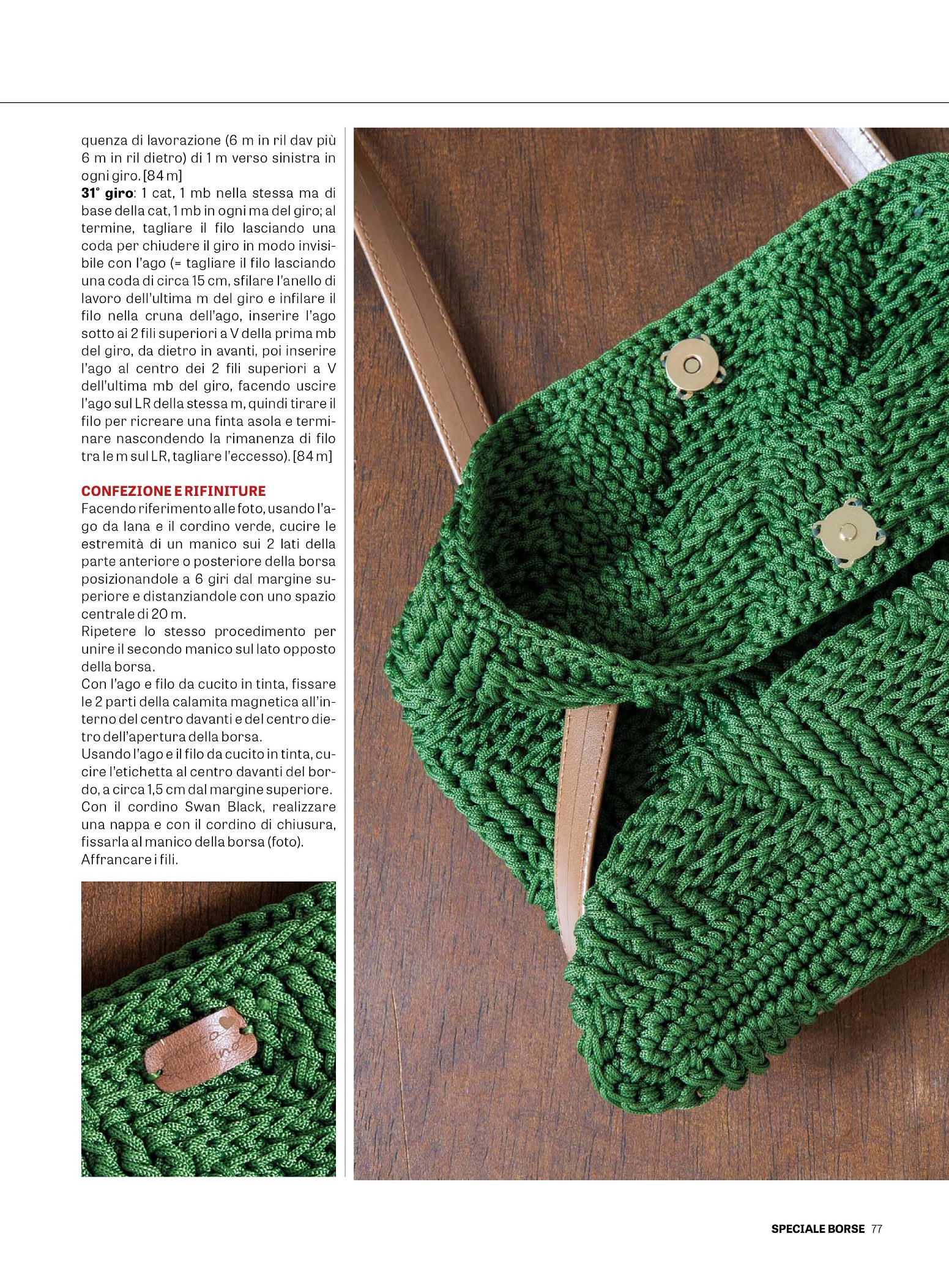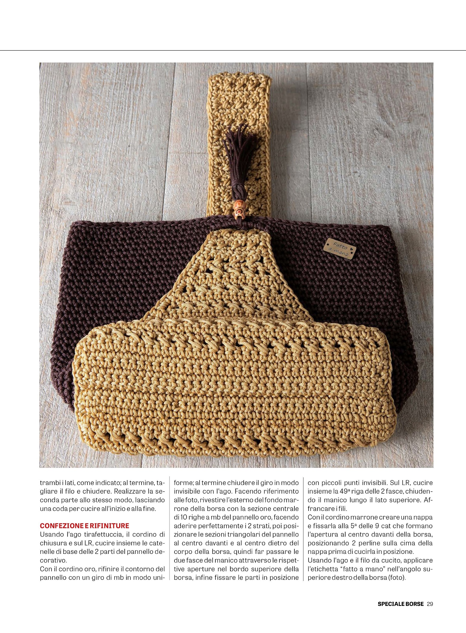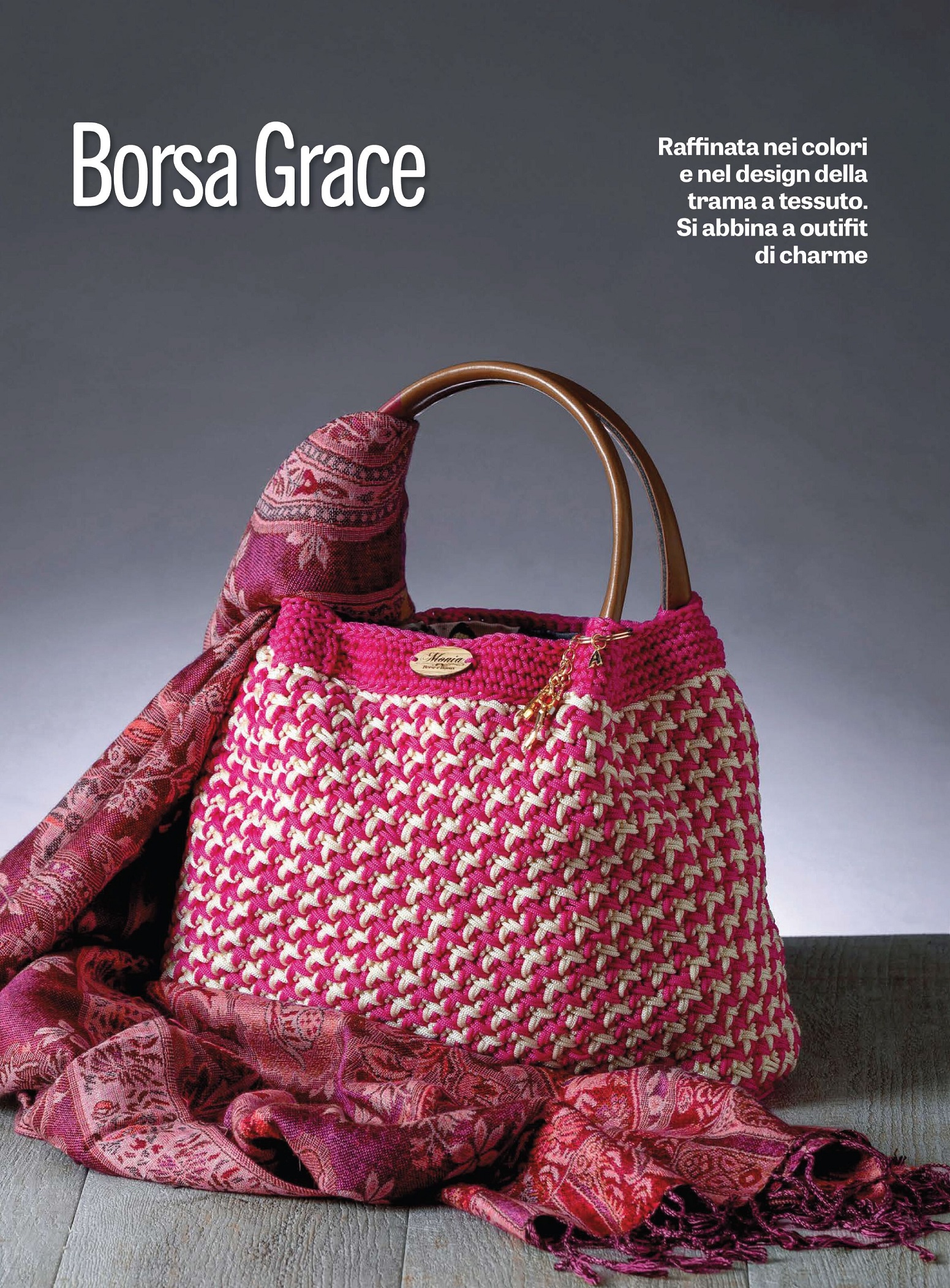 Итальянский журнал по вязанию крючком. В этом выпуске представлена красочная подборка универсальных сумок, связанных крючком. Для любого образа и любого технического уровня найдется подходящая сумка с инструкциями