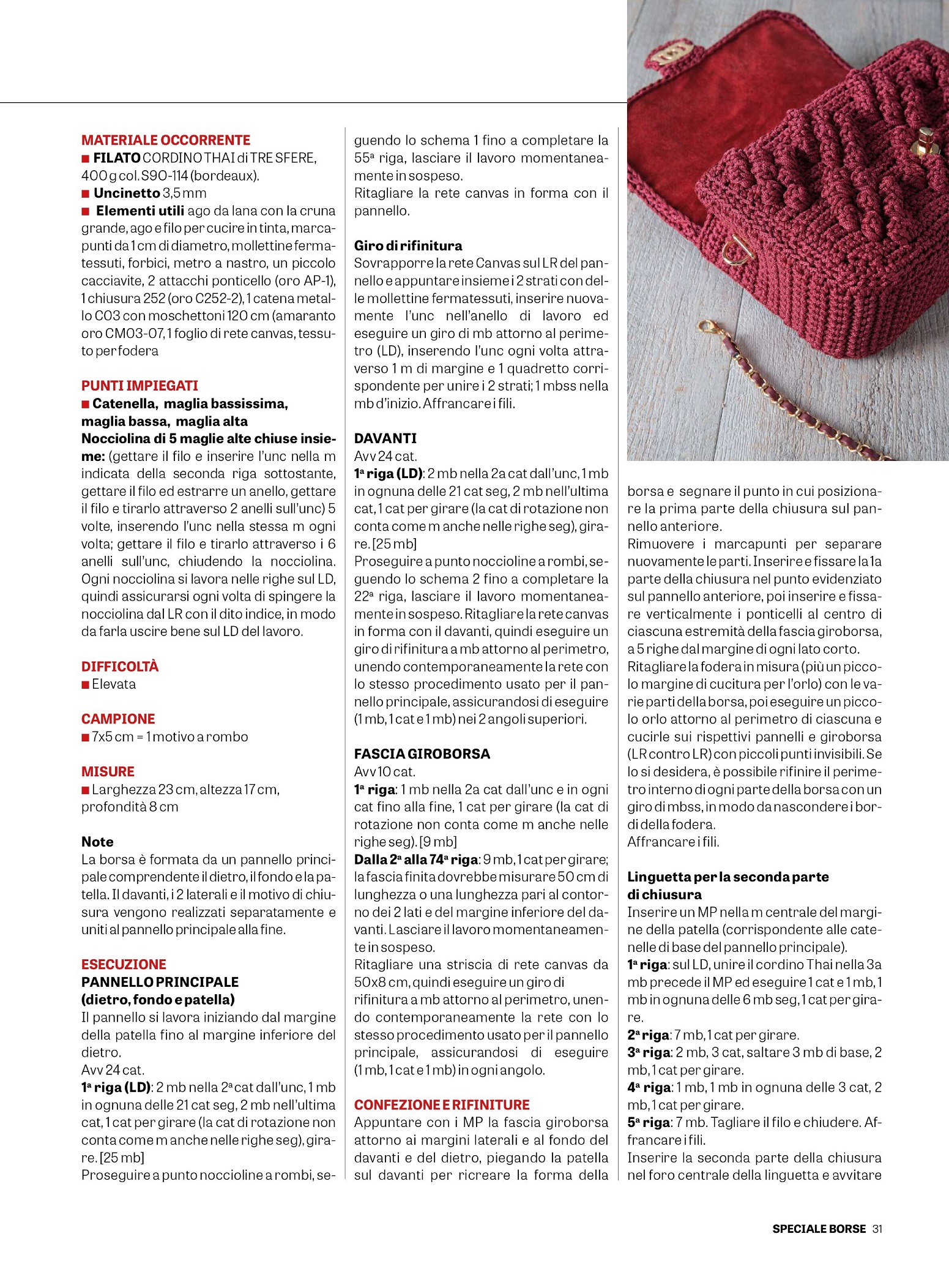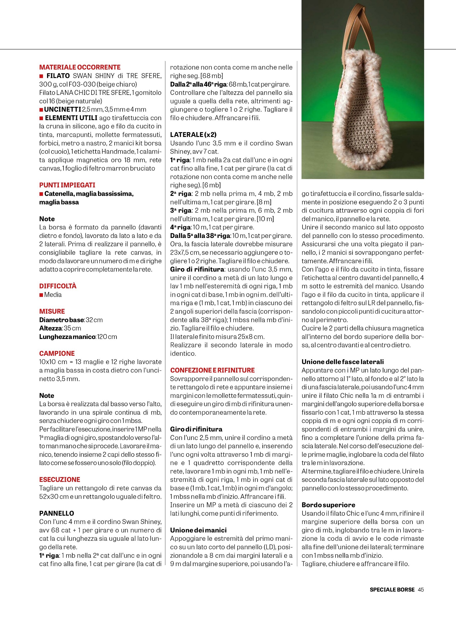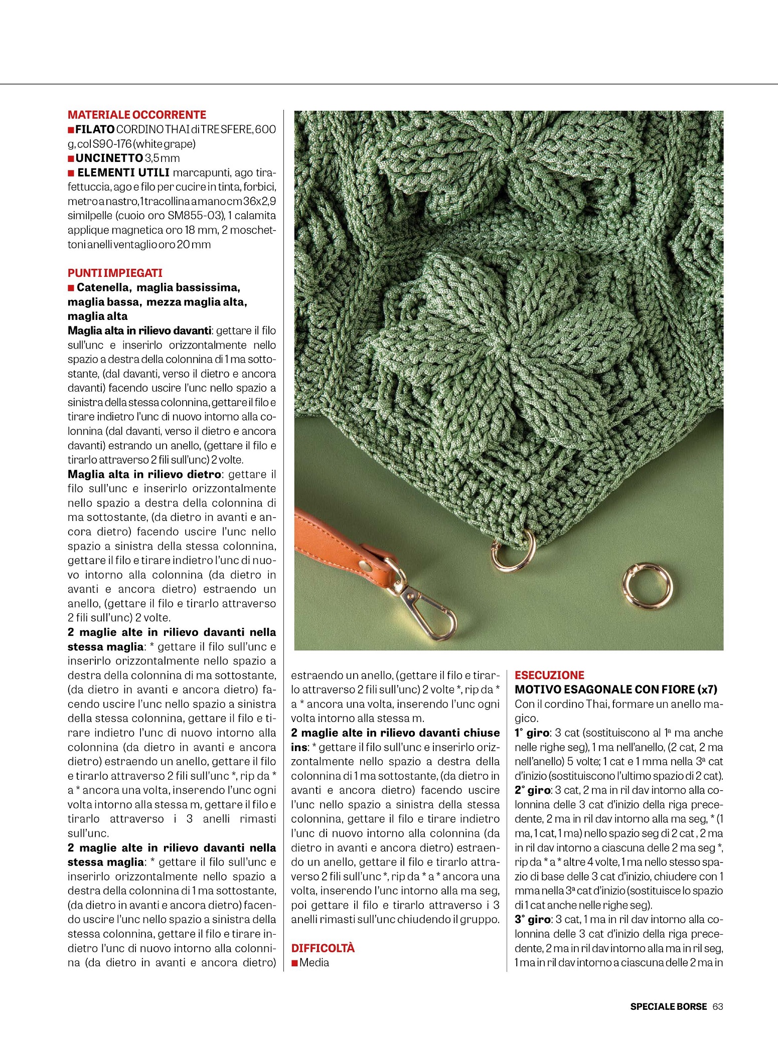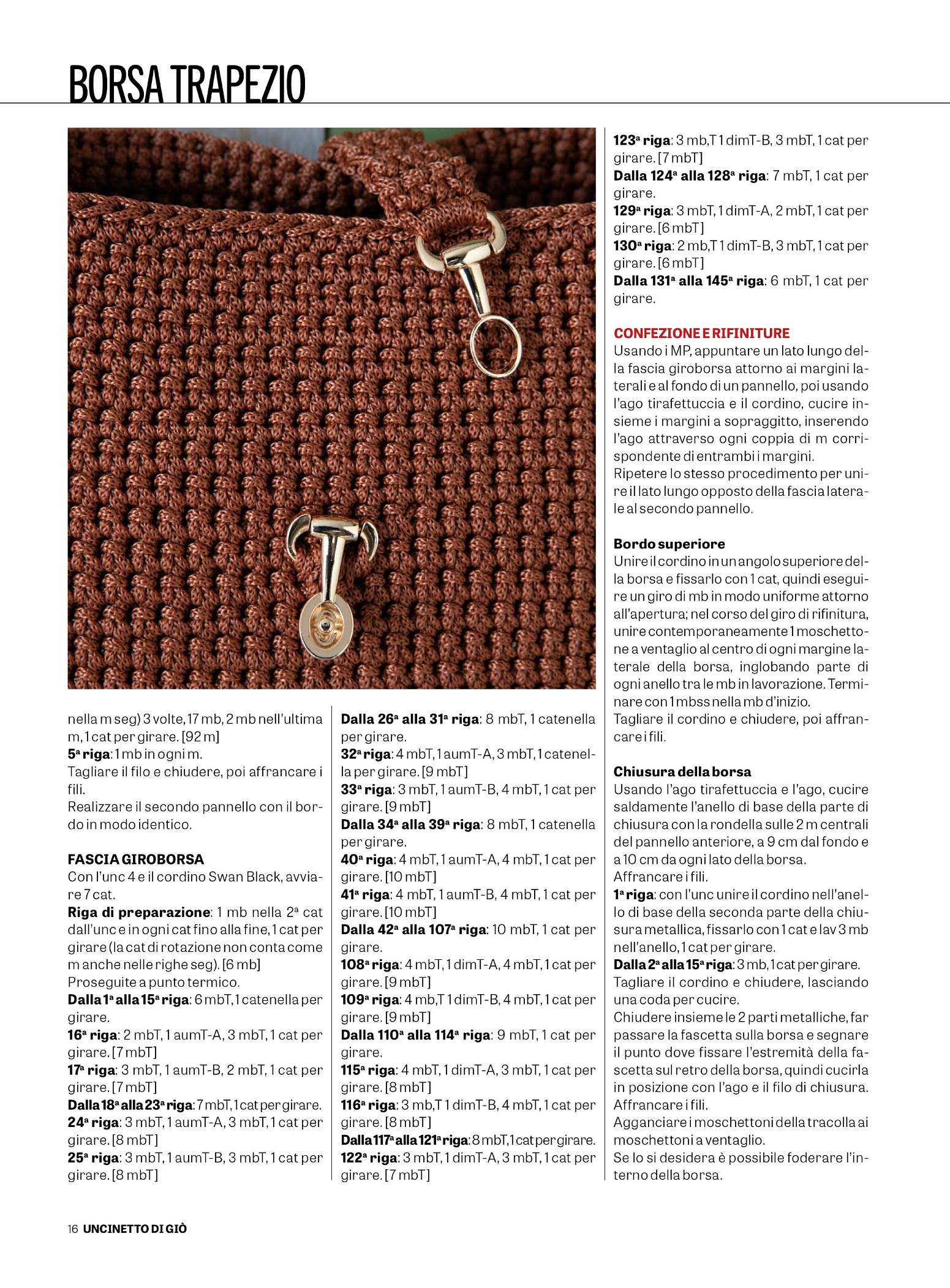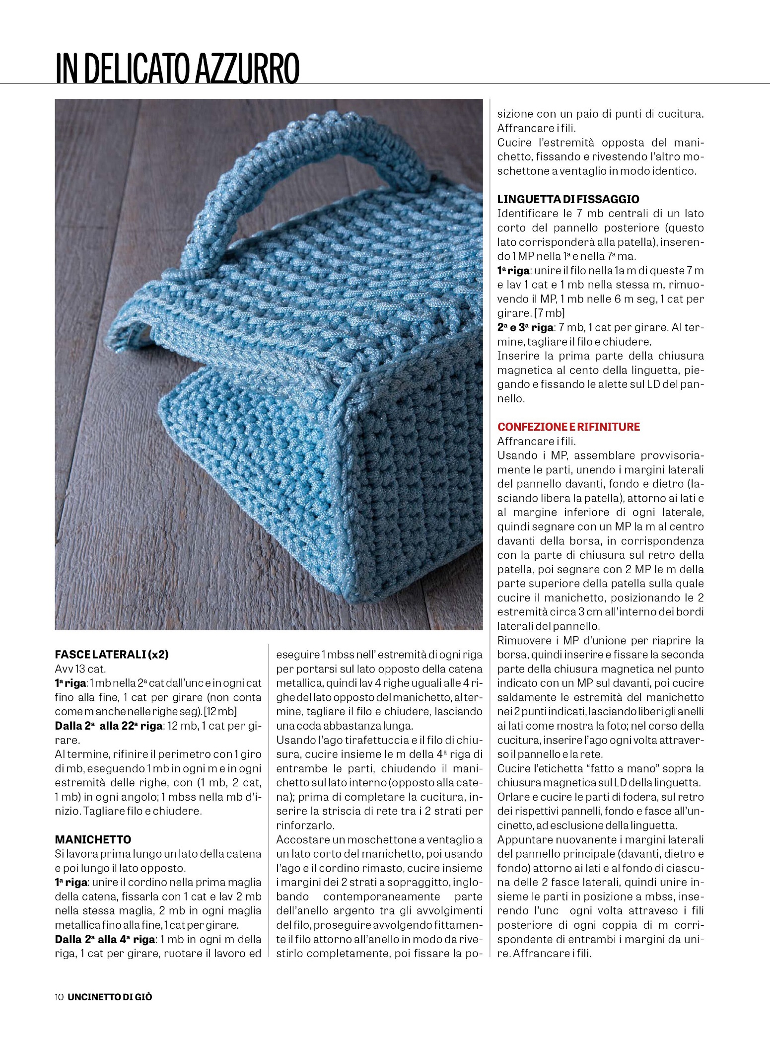Итальянский журнал по вязанию крючком. В этом выпуске представлена красочная подборка универсальных сумок, связанных крючком. Для любого образа и любого технического уровня найдется подходящая сумка с инструкциями
