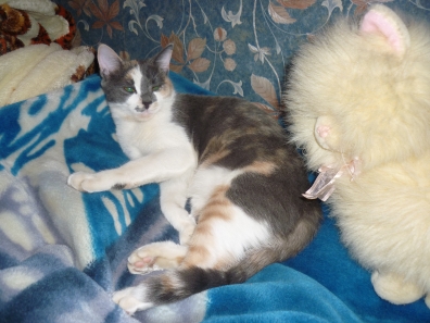 Я здесь новенькая, но тоже хочу показать свою кошечку Фросю, я ее с работы принесла, там кошка окатилась на улице, ничего хорошего я думаю ее не ждало, а сейчас эта наглая мордаха вьет веревки из меня и моего мужа.